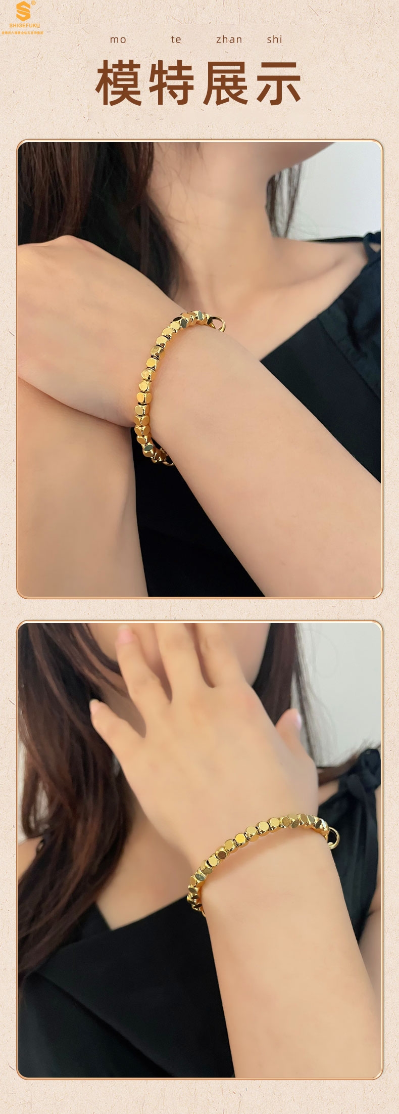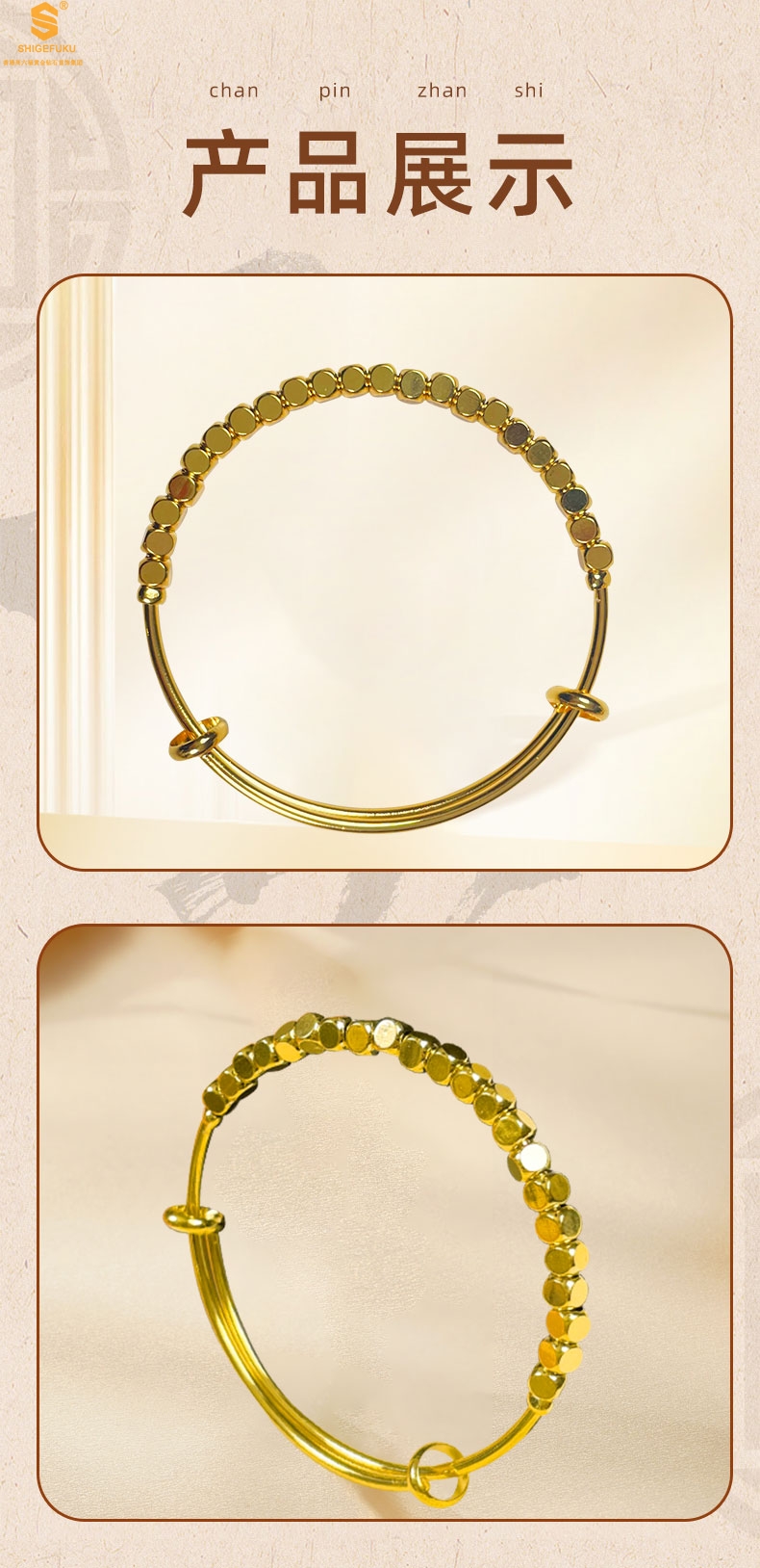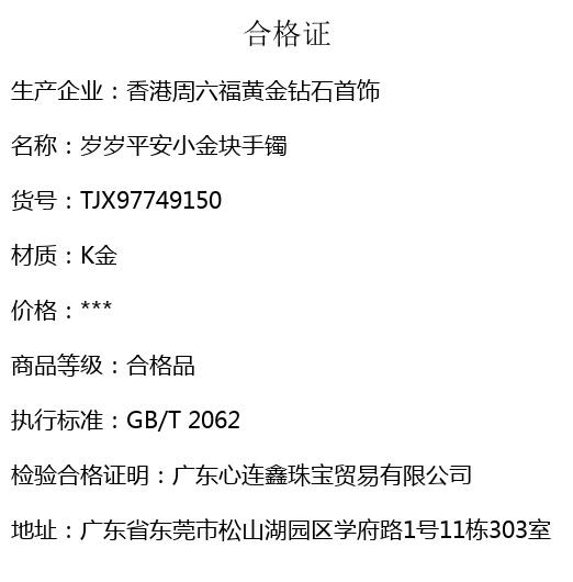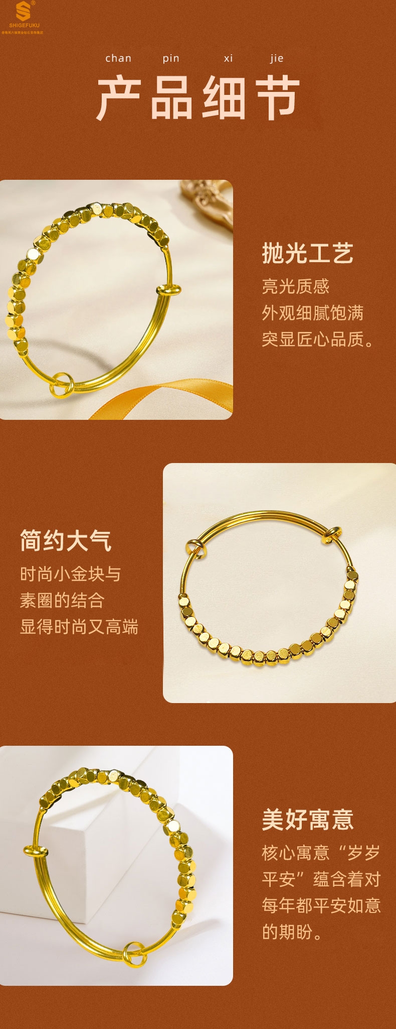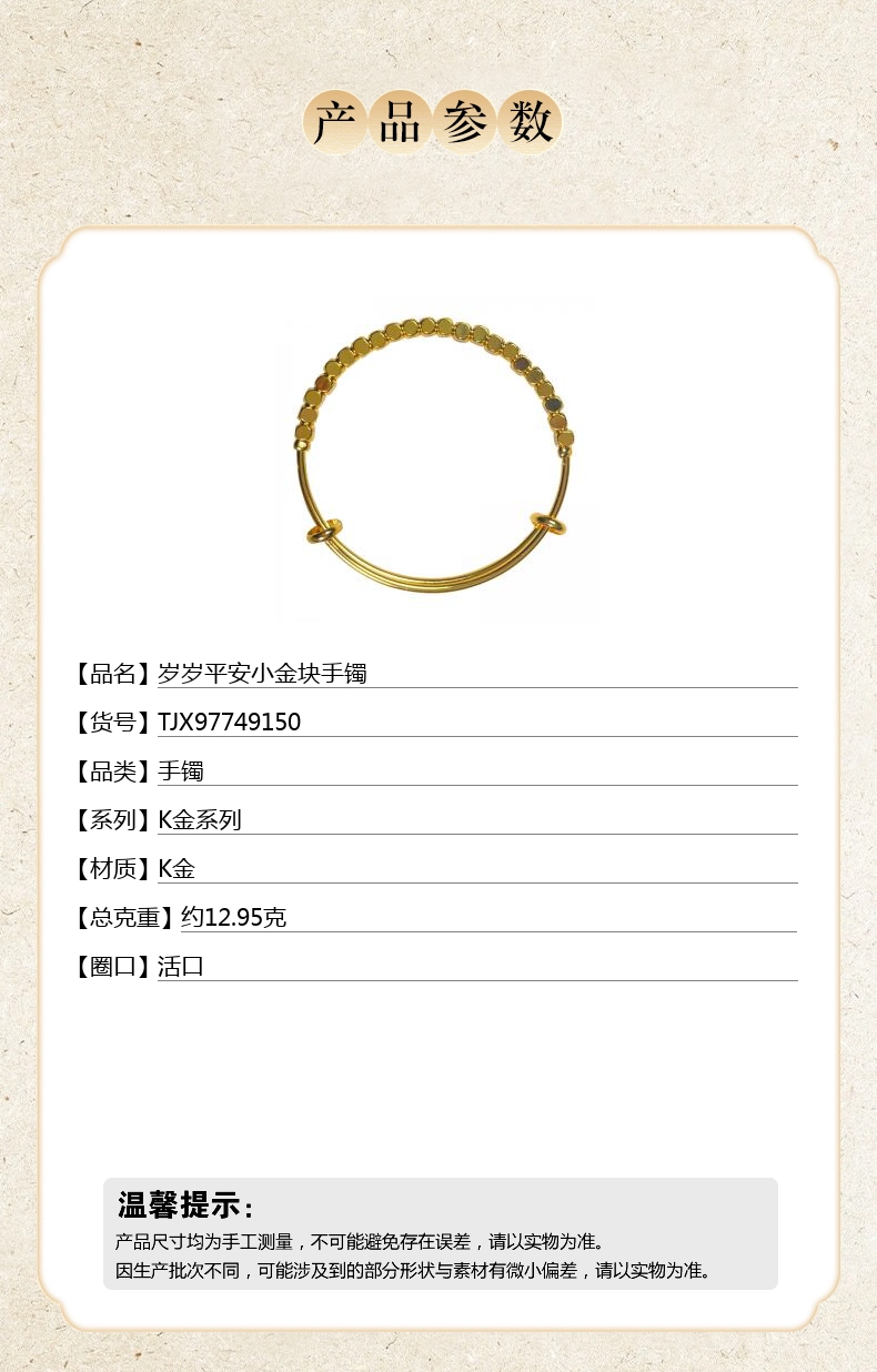 【品名】岁岁平安小金块手镯
