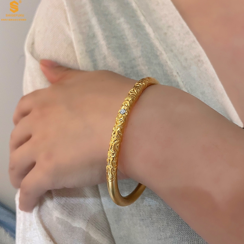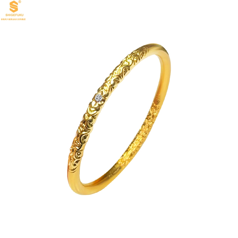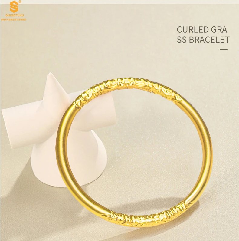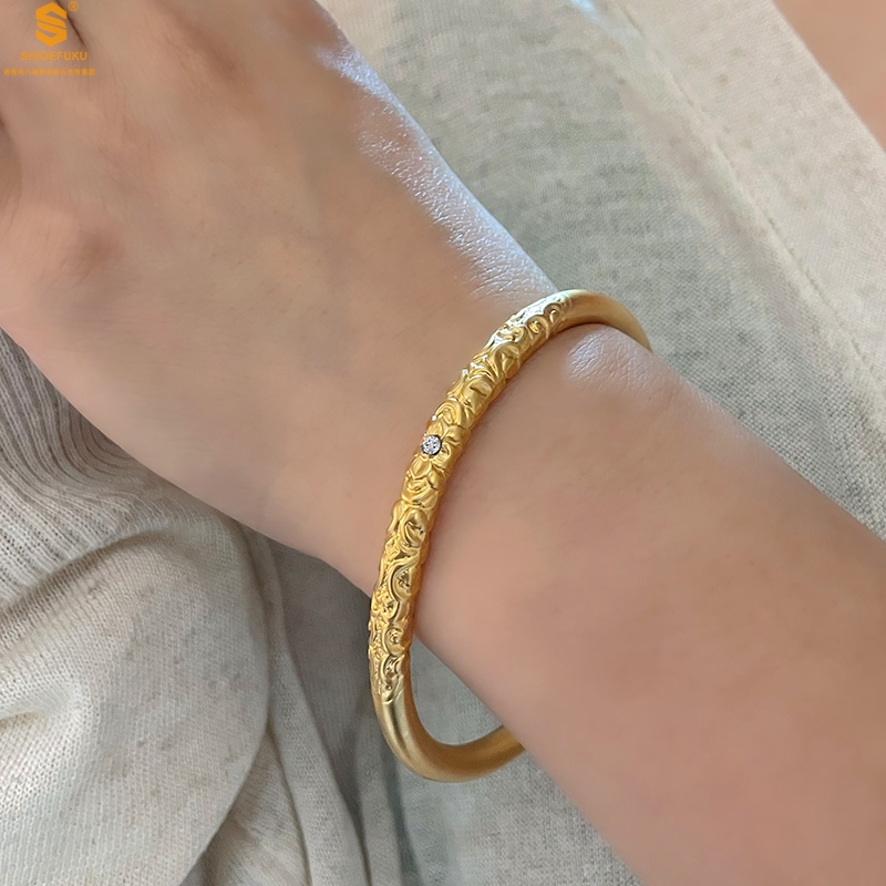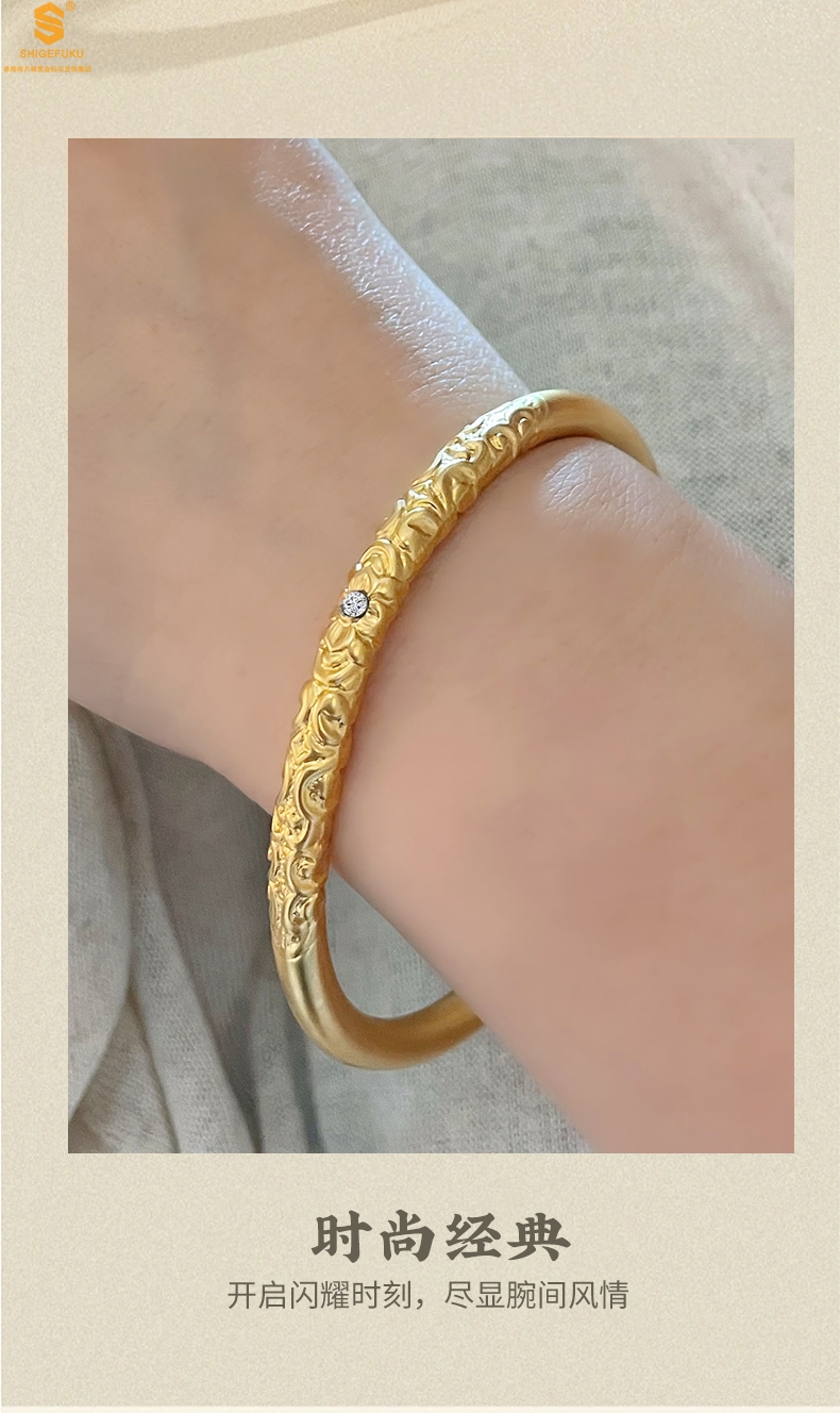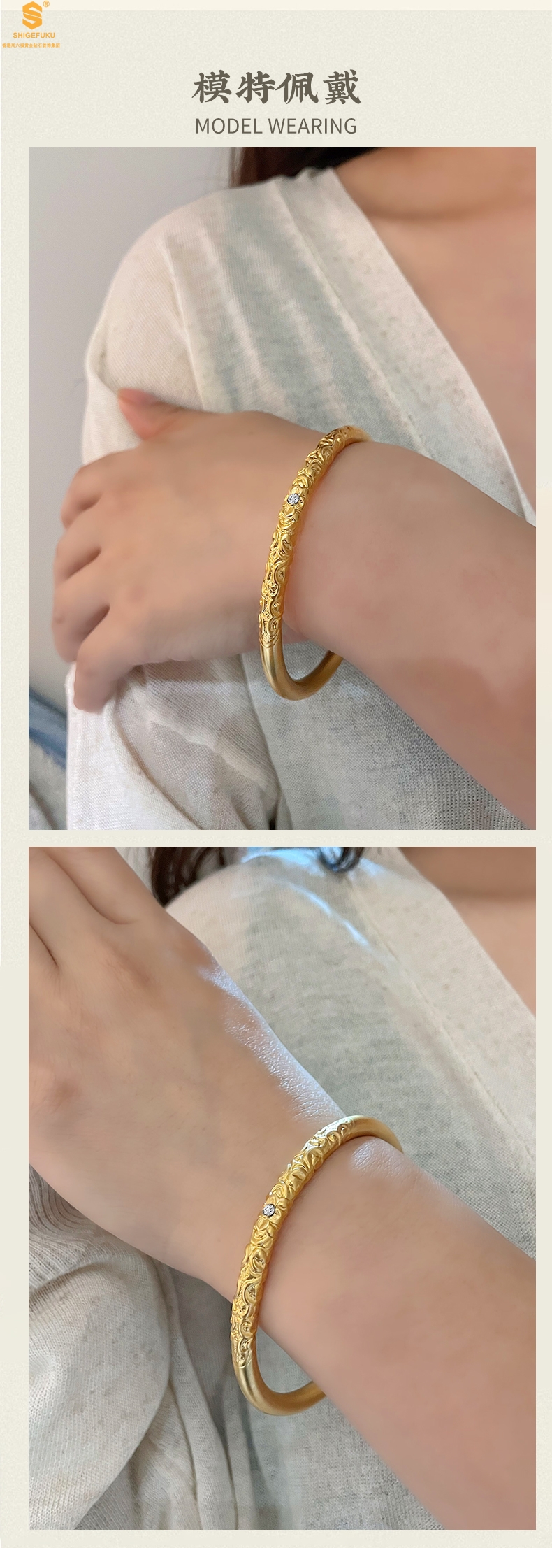【品名】K金天然南非真钻卷草纹紫荆花传承手镯