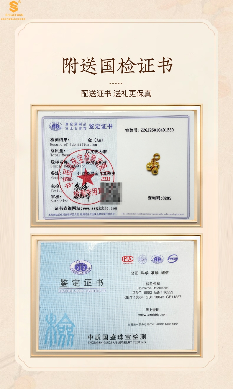 【套装包含】首饰+礼品盒+礼品袋+国检证书+质保单+价签