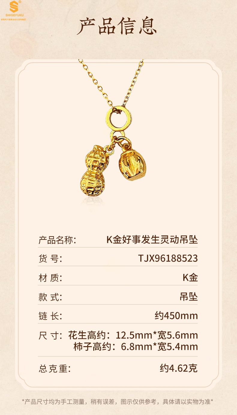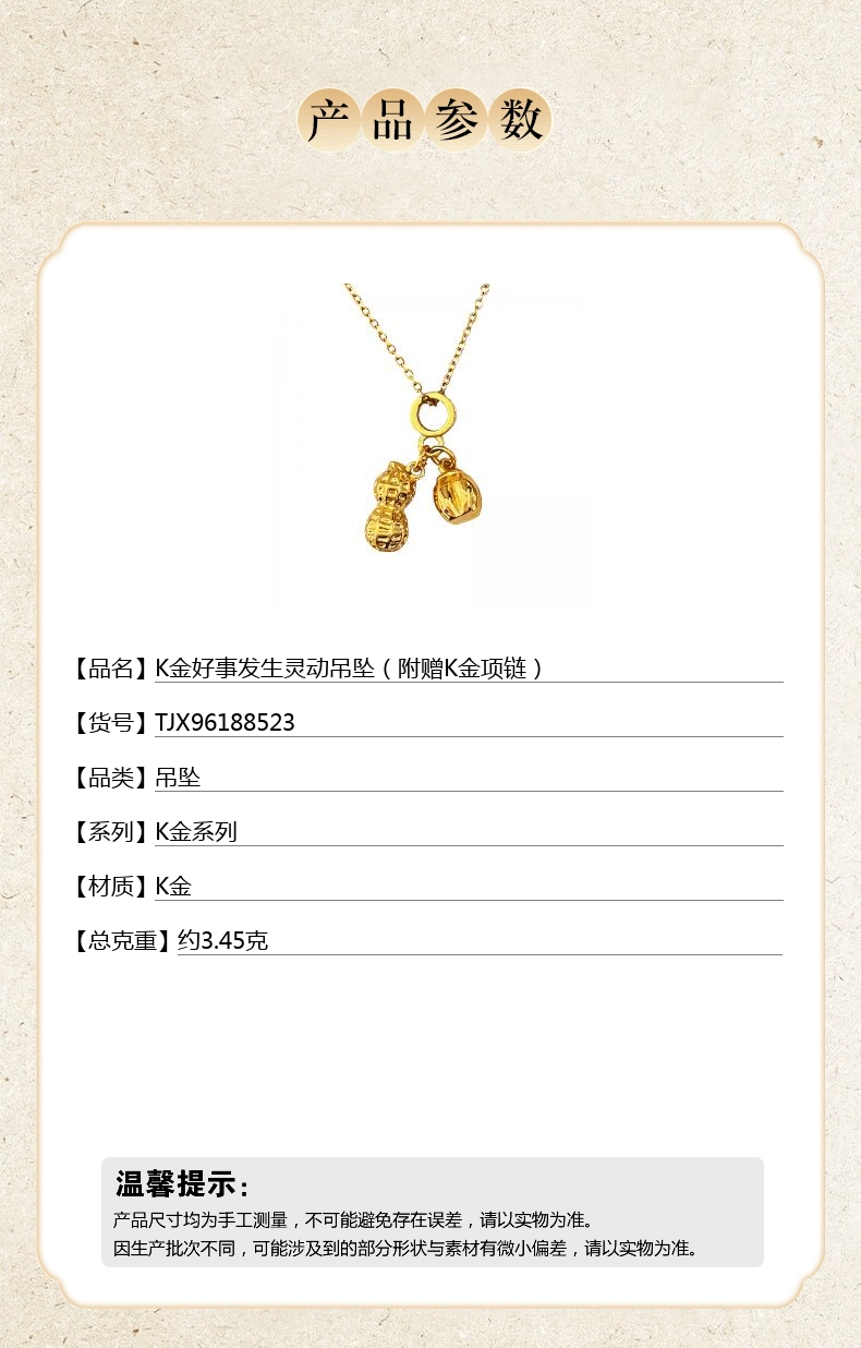 【品名】K金好事发生灵动吊坠(附赠K金项链)