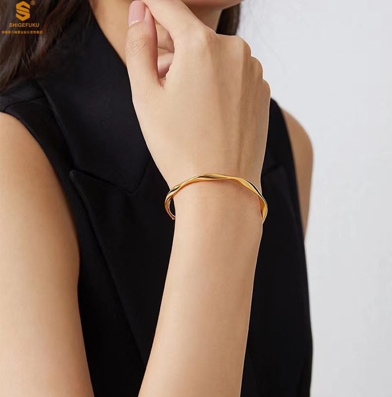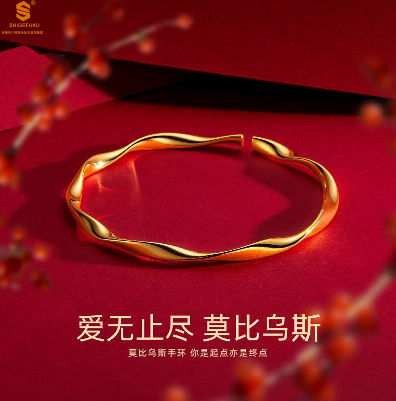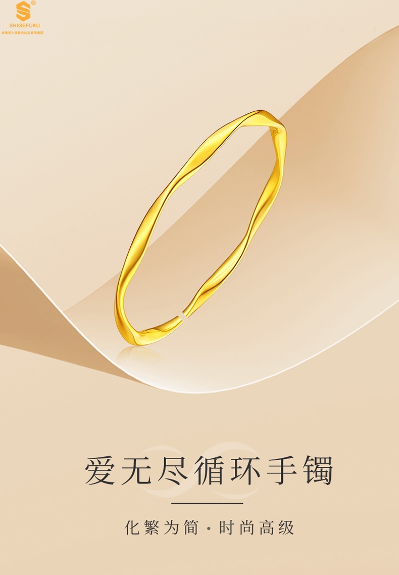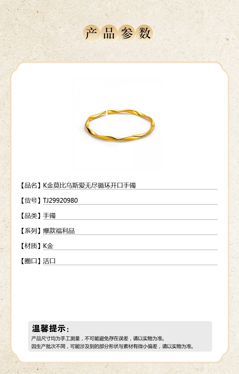 【品名】K金莫比乌斯爱无尽循环开口手镯