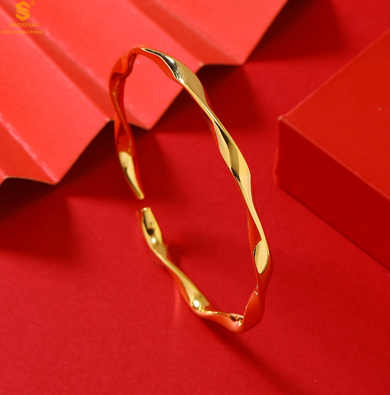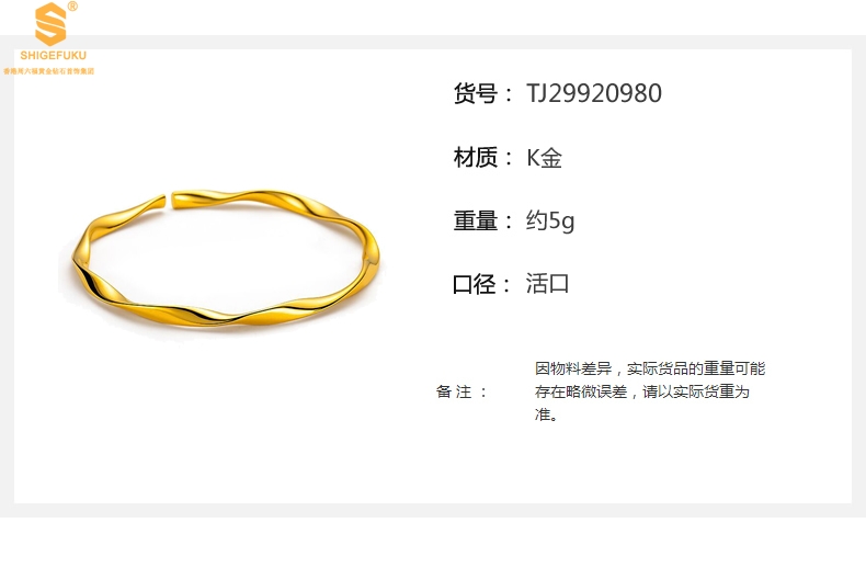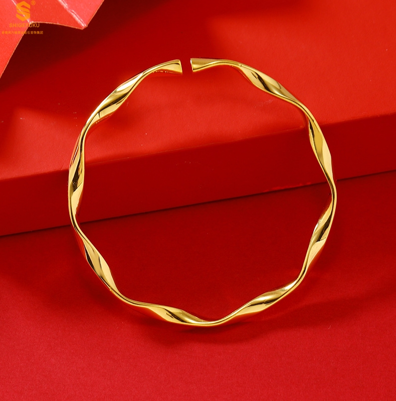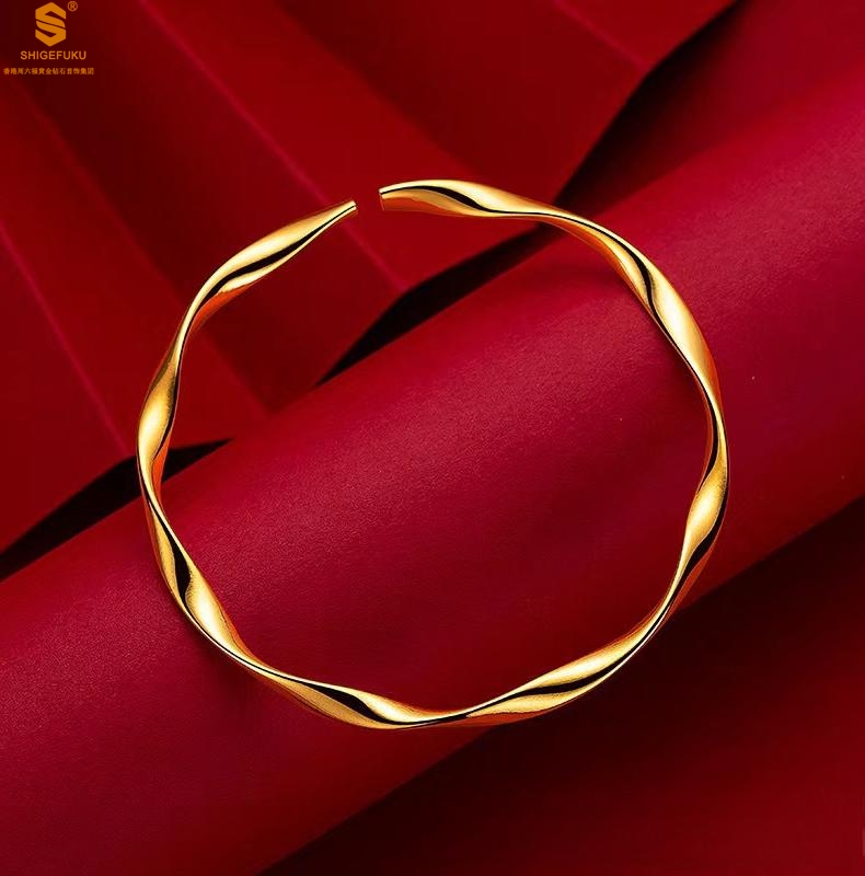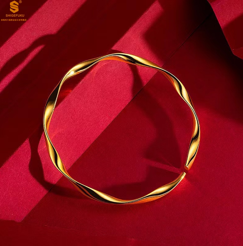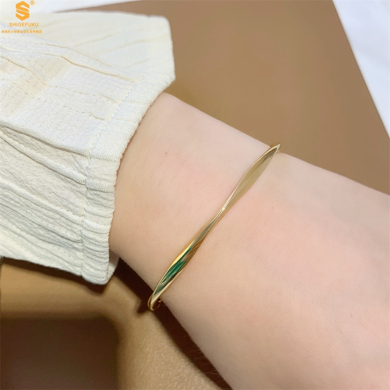 【品名】K金莫比乌斯爱无尽循环开口手镯