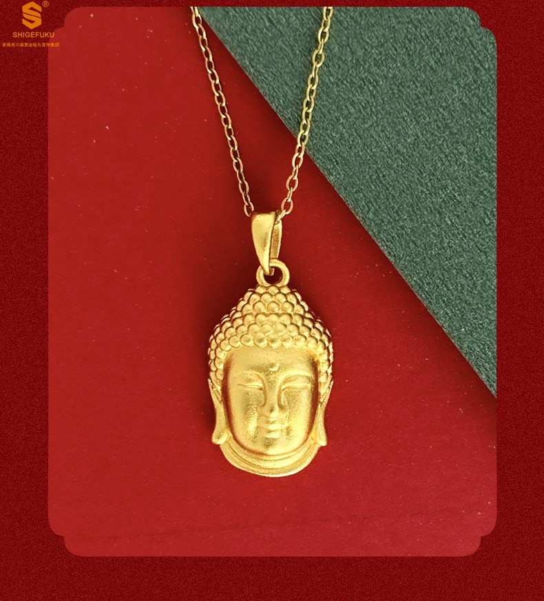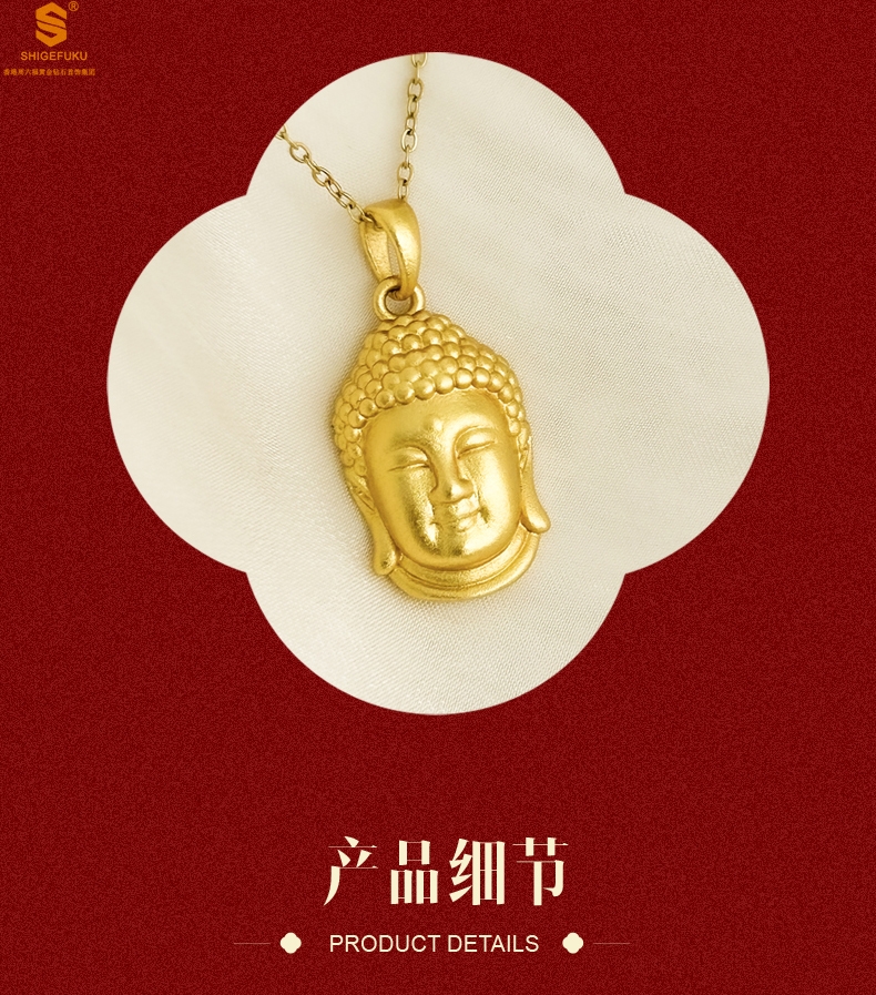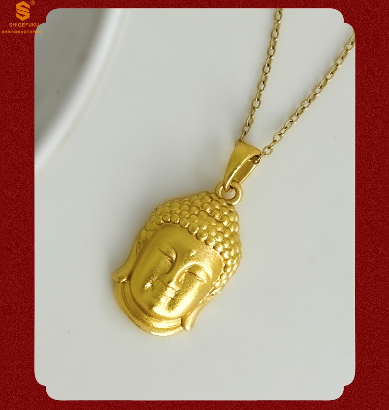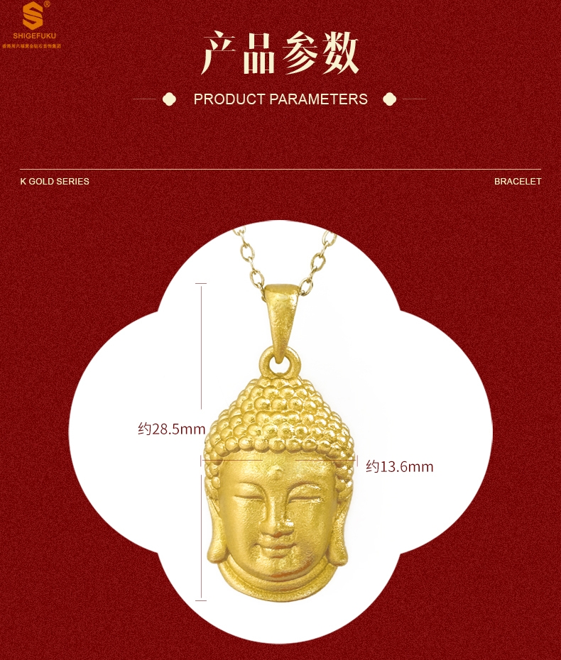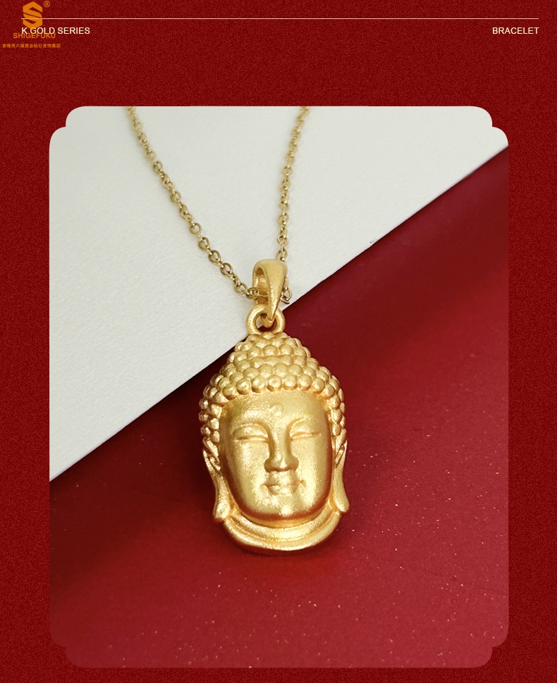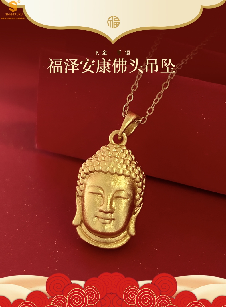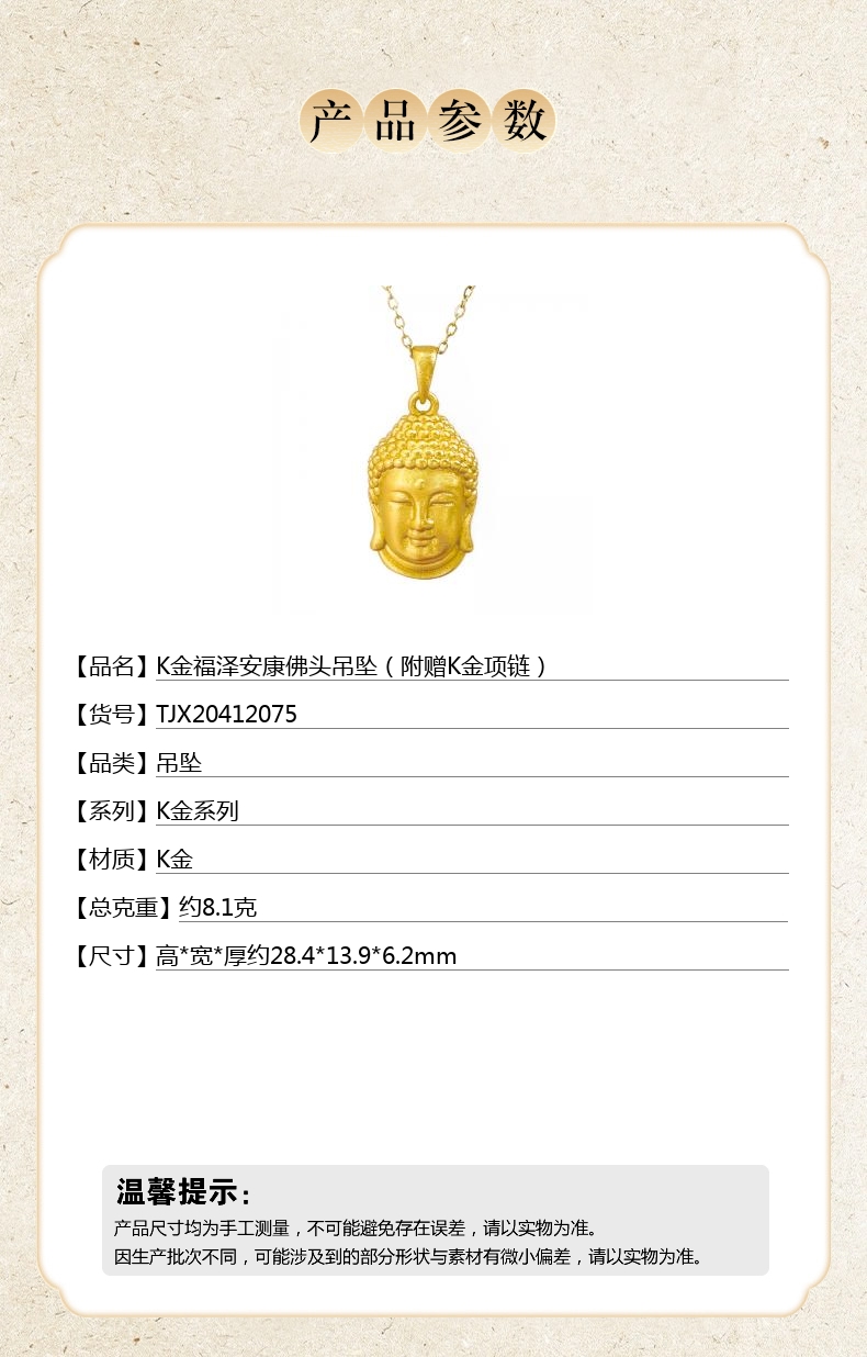 【品名】K金福泽安康佛头吊坠(附赠K金项链)