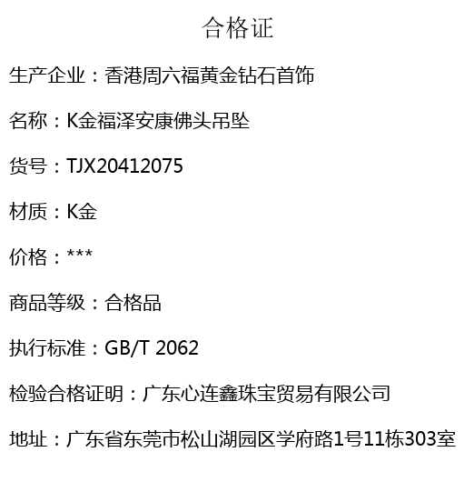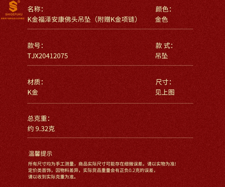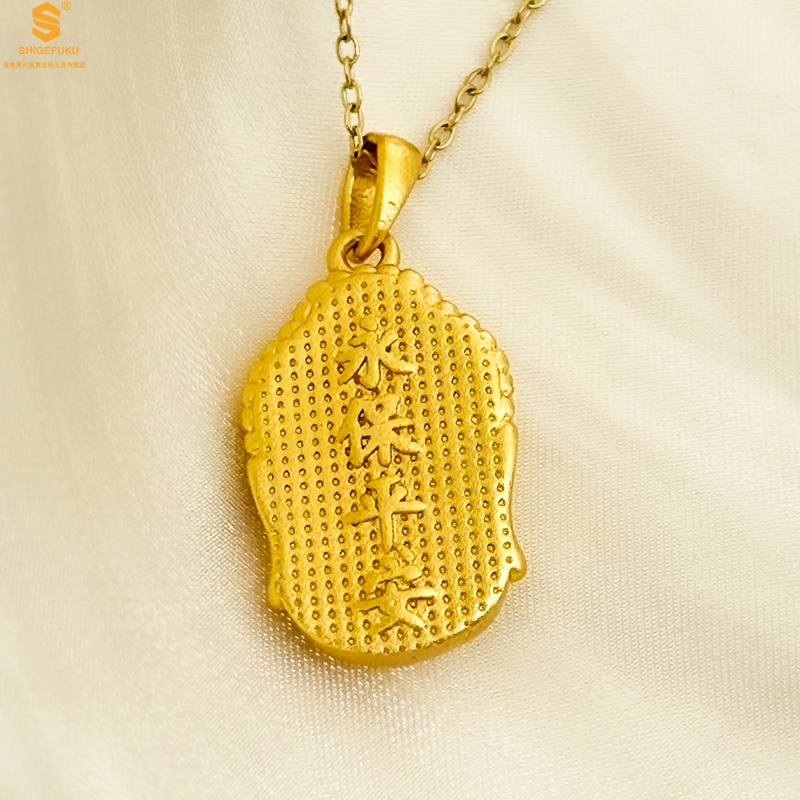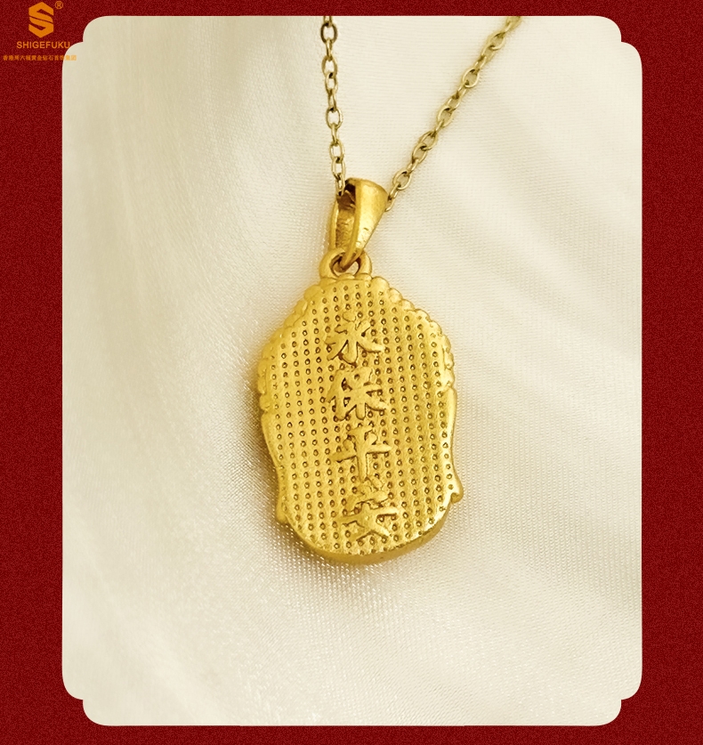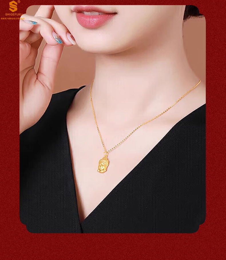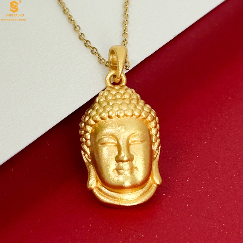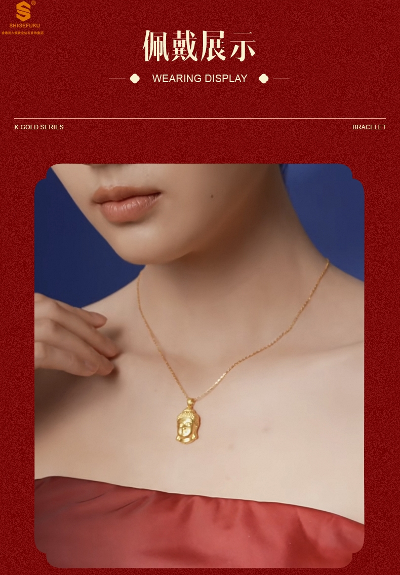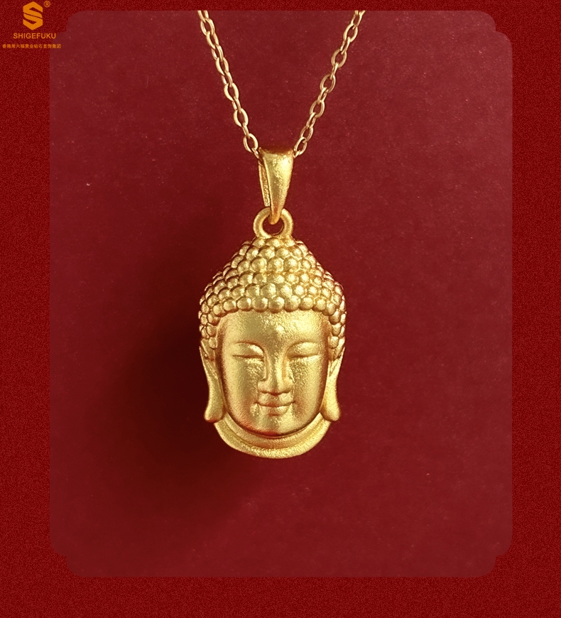 【品名】K金福泽安康佛头吊坠(附赠K金项链)