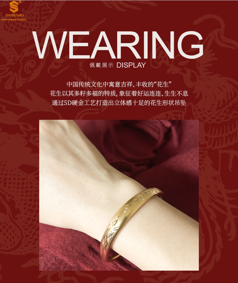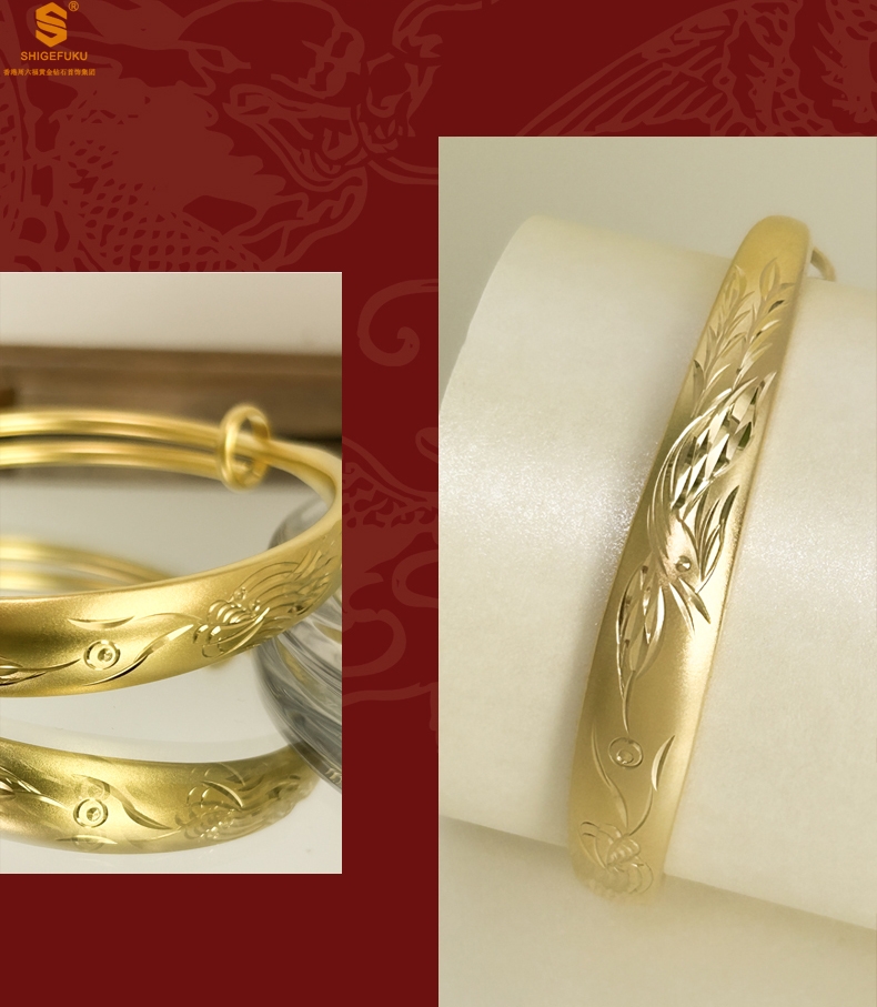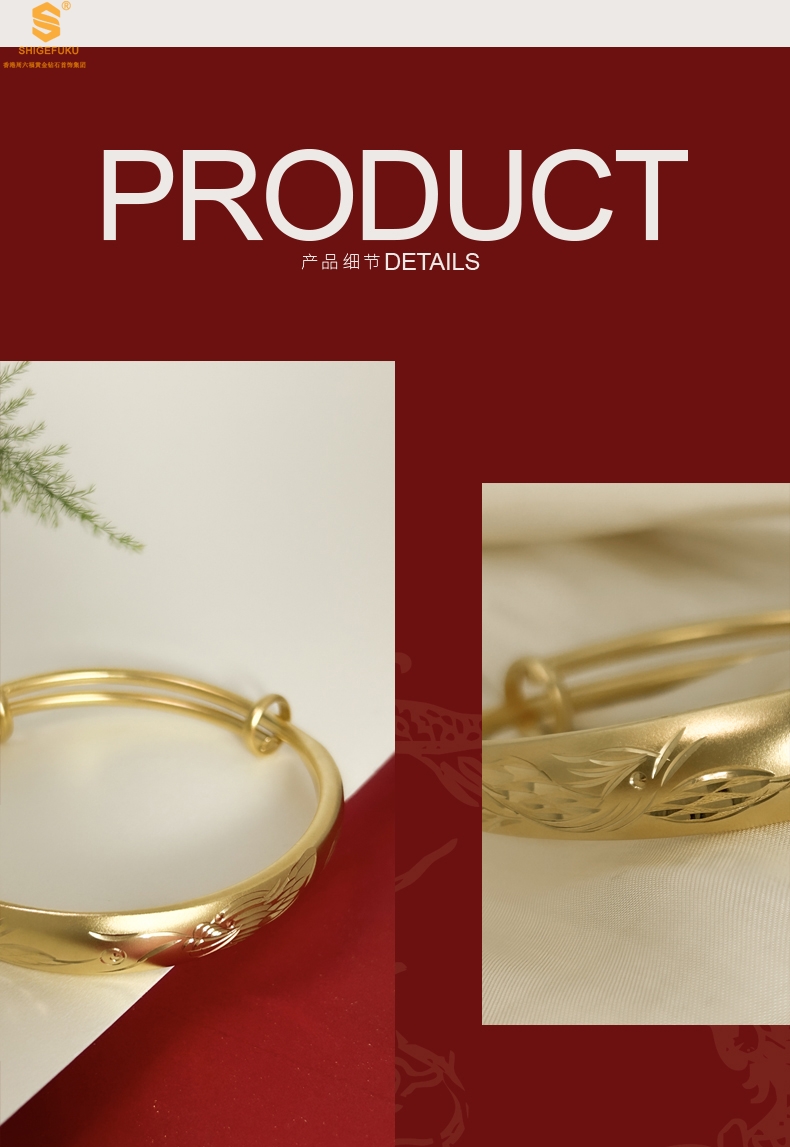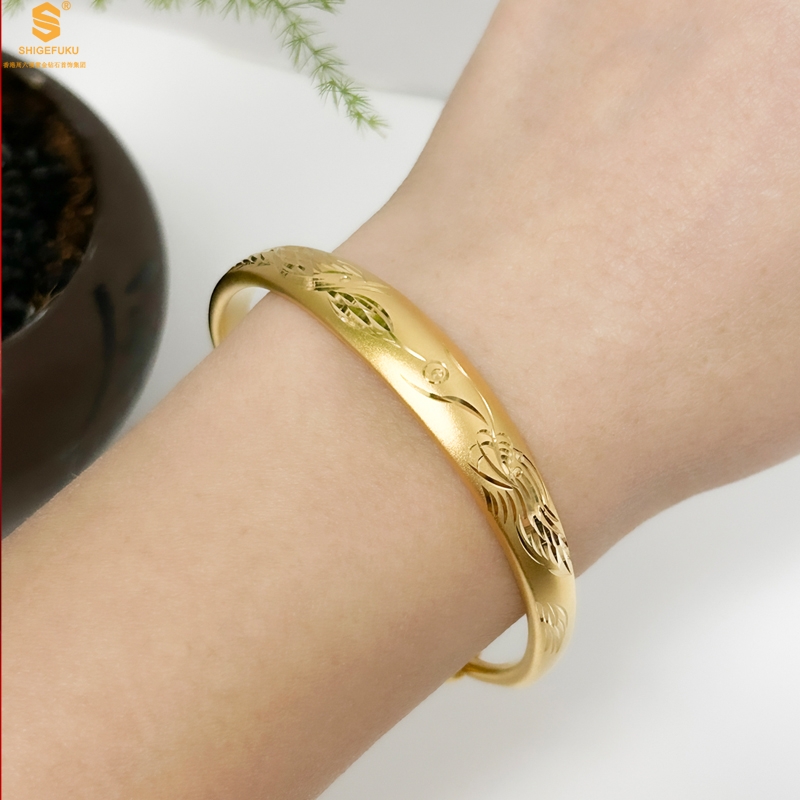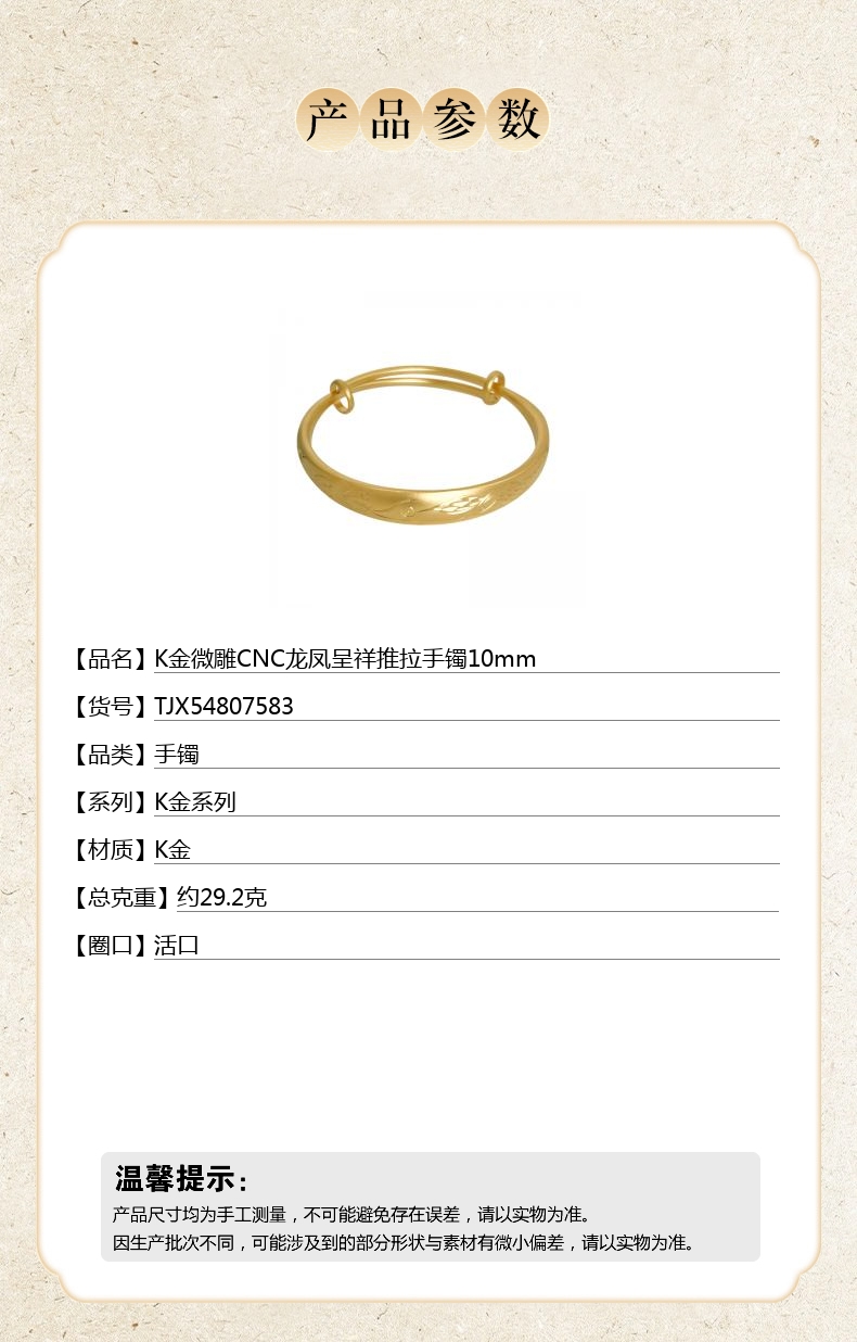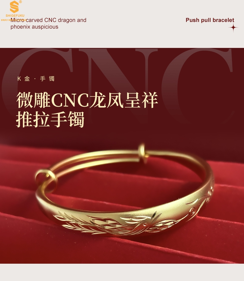 【品名】K金微雕CNC龙凤呈祥推拉手镯10mm