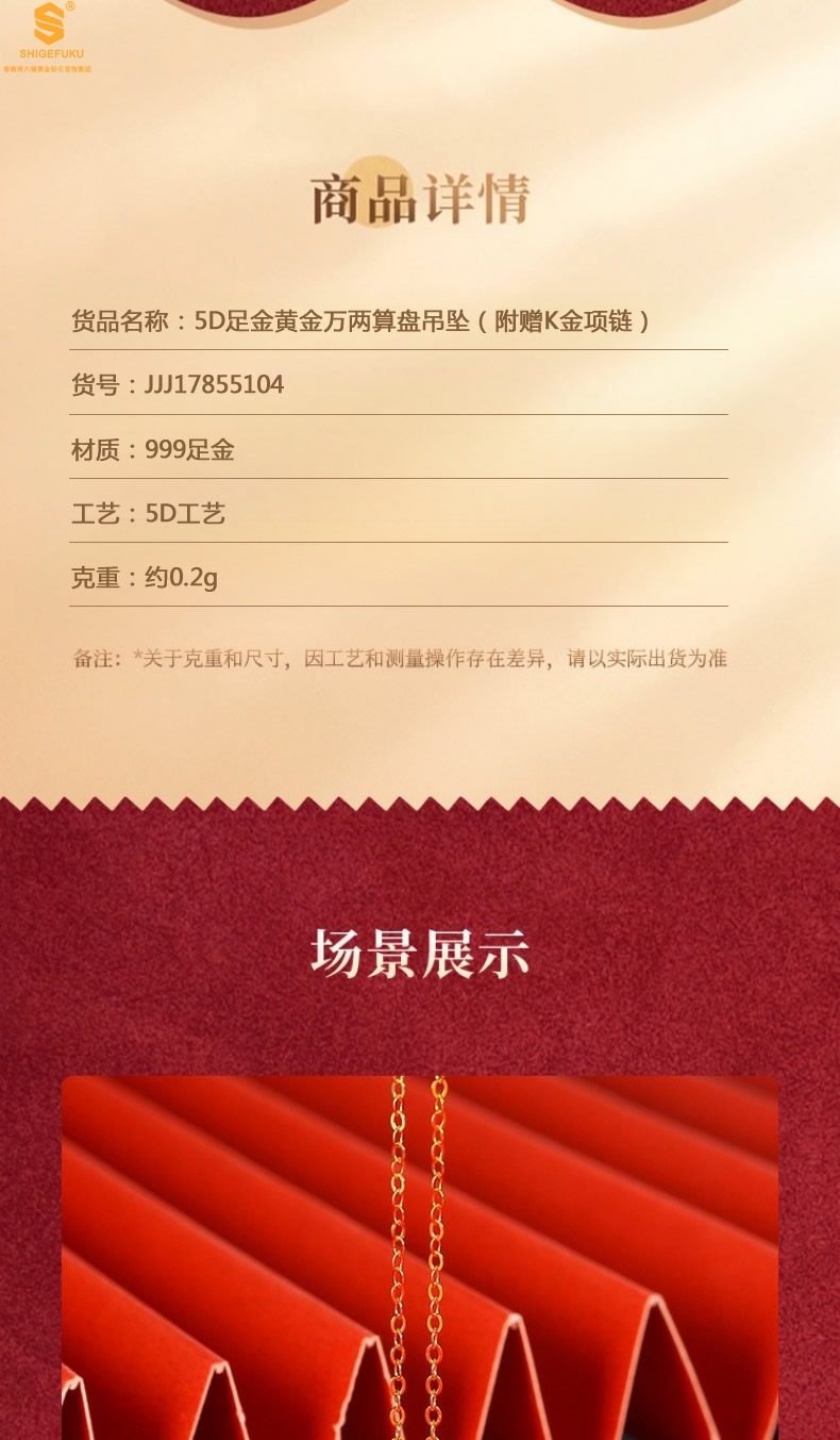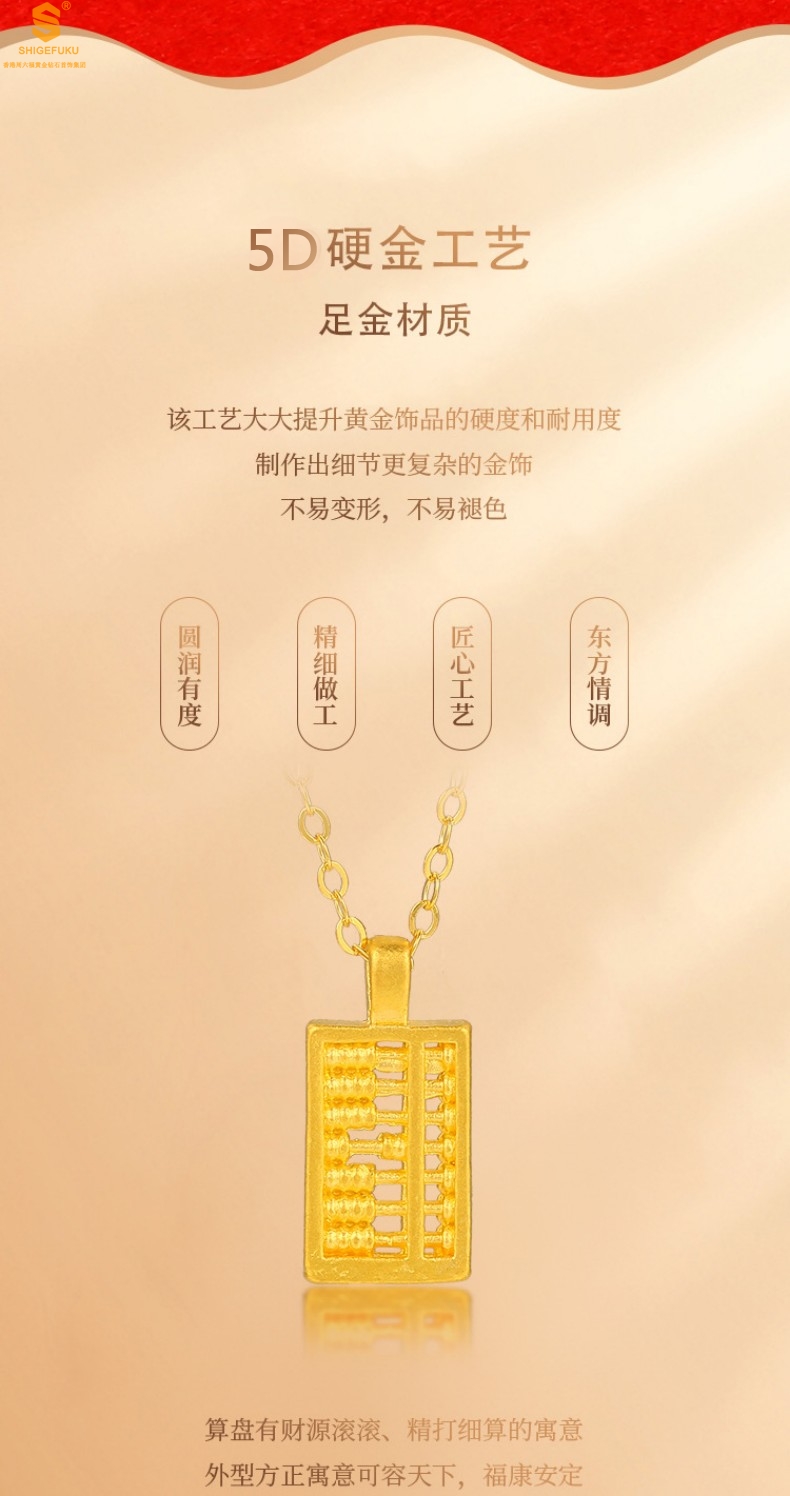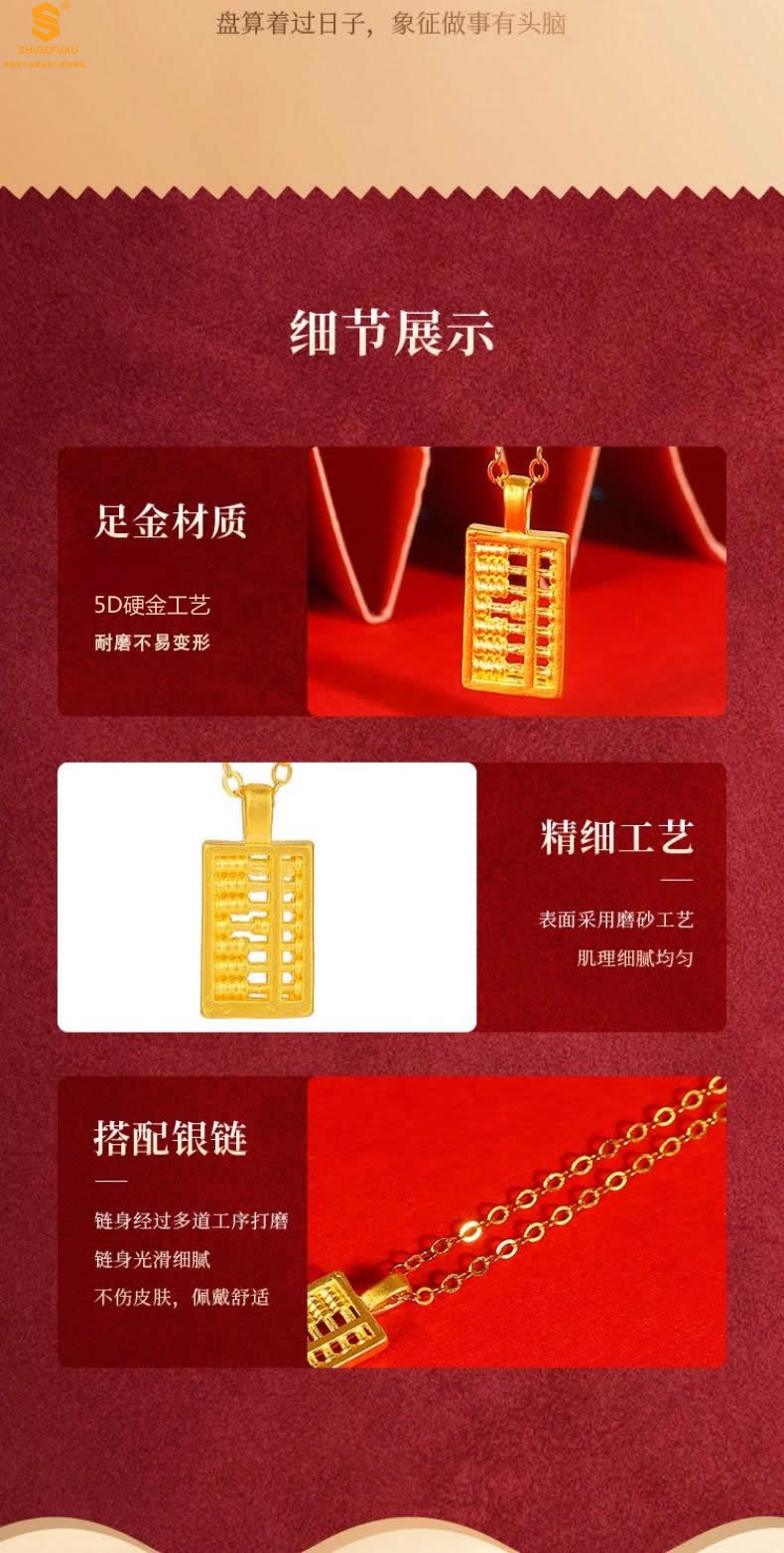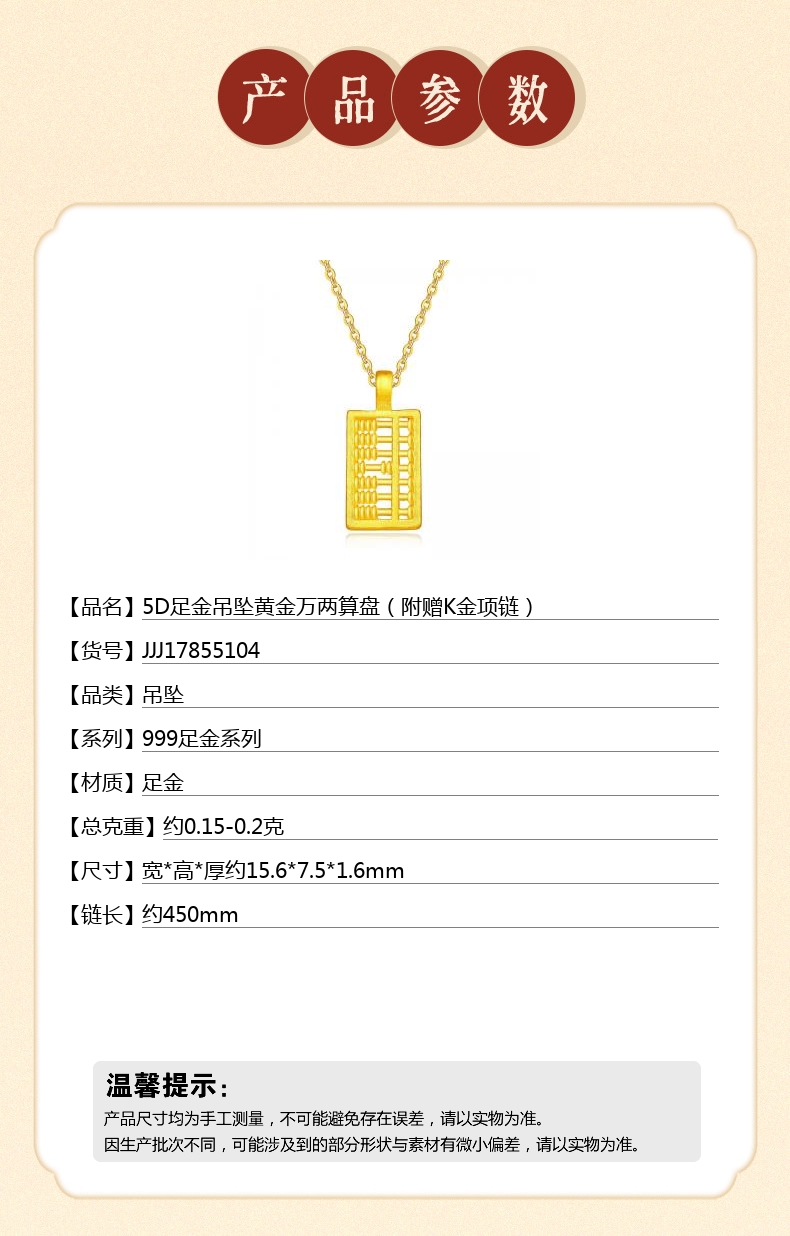 【品名】5D足金吊坠黄金万两算盘(附赠K金项链)