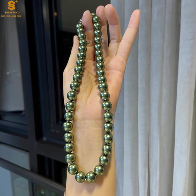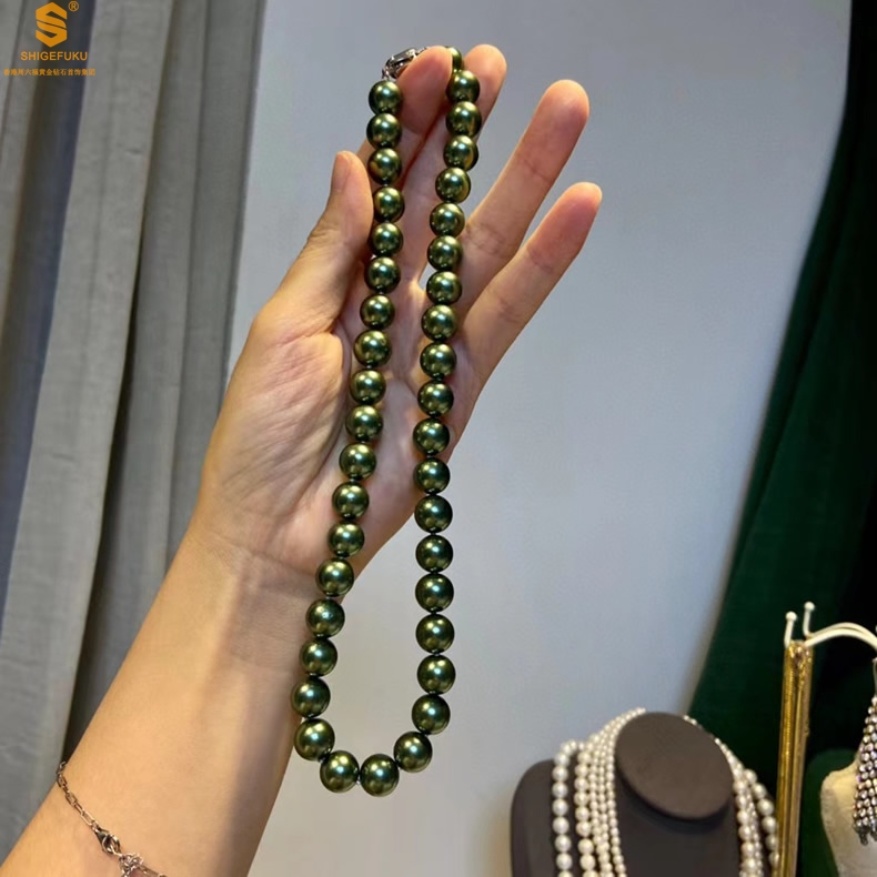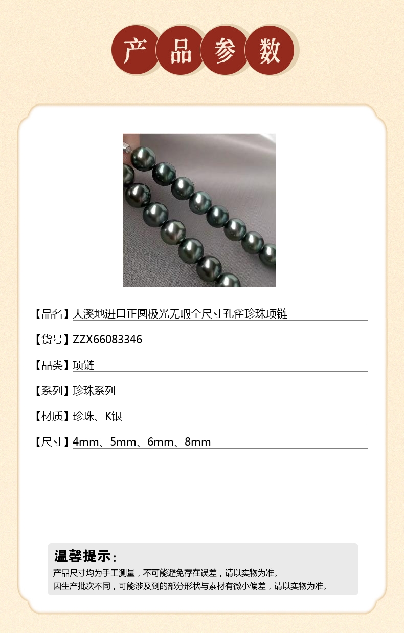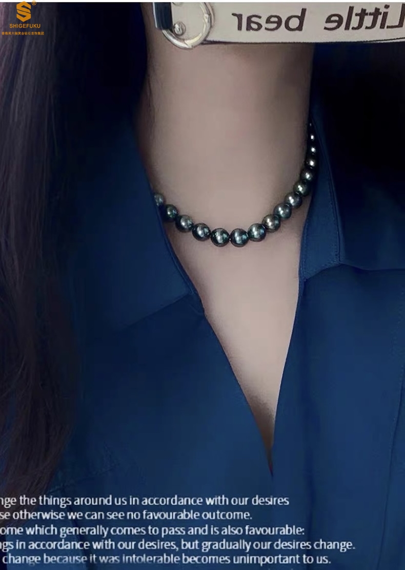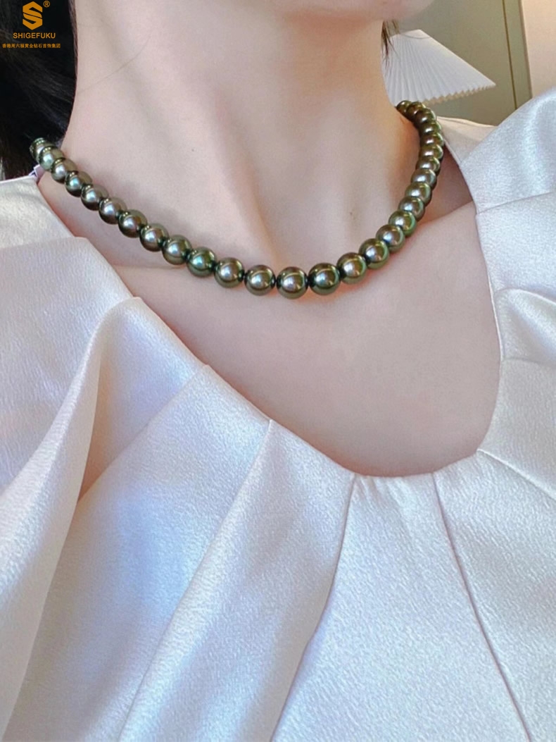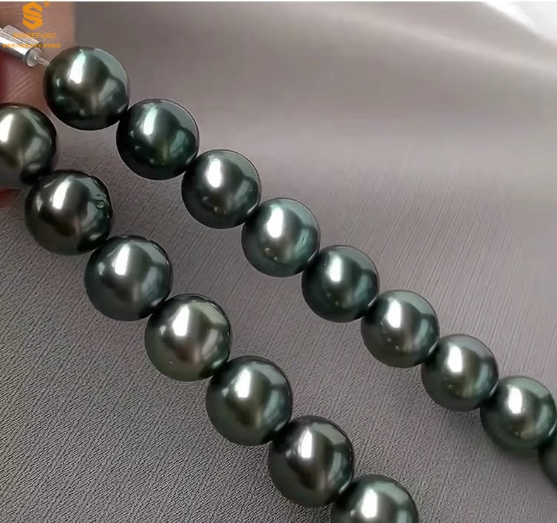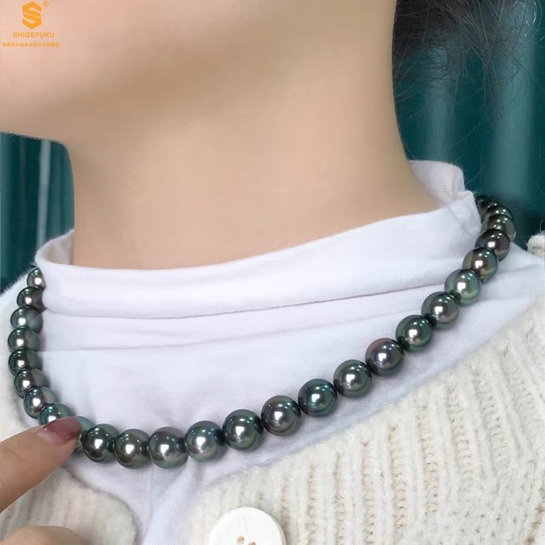 【品名】大溪地进口正圆极光无暇全尺寸孔雀珍珠项链