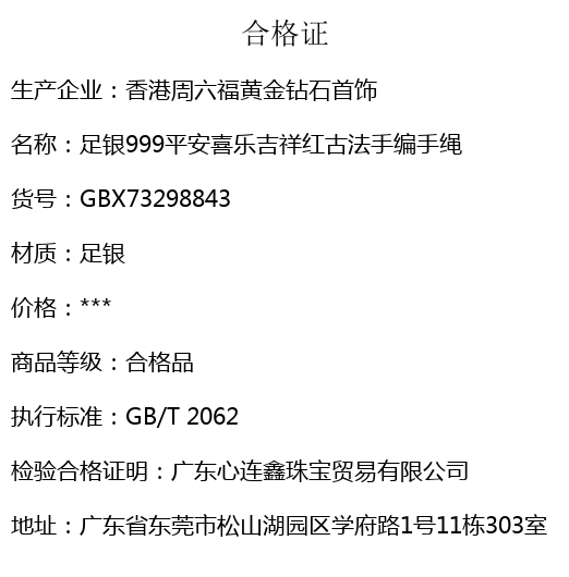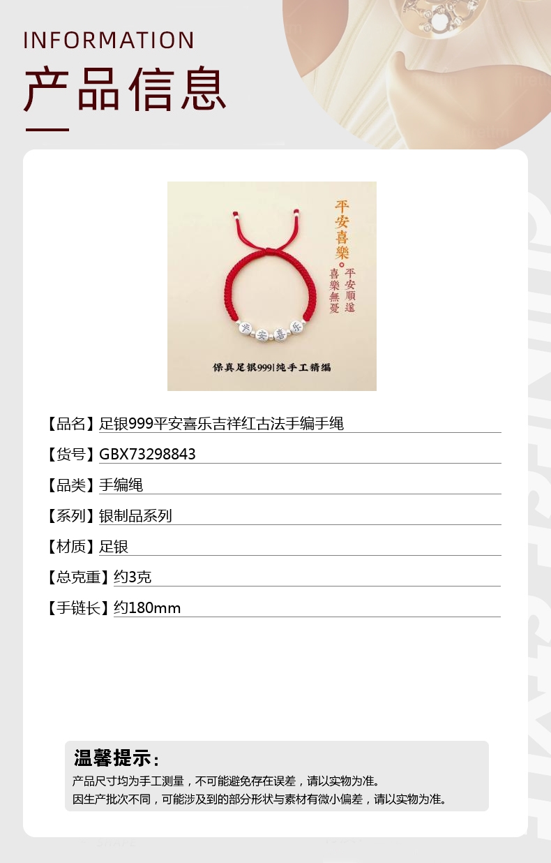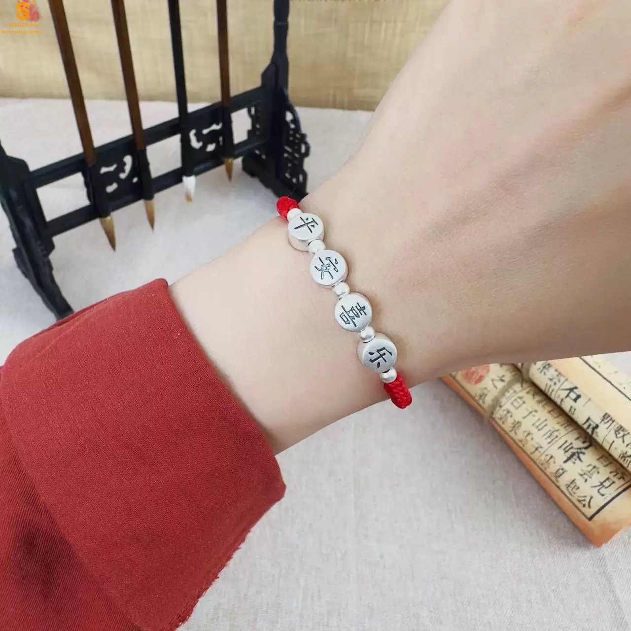 【品名】足银999平安喜乐吉祥红古法手编手绳