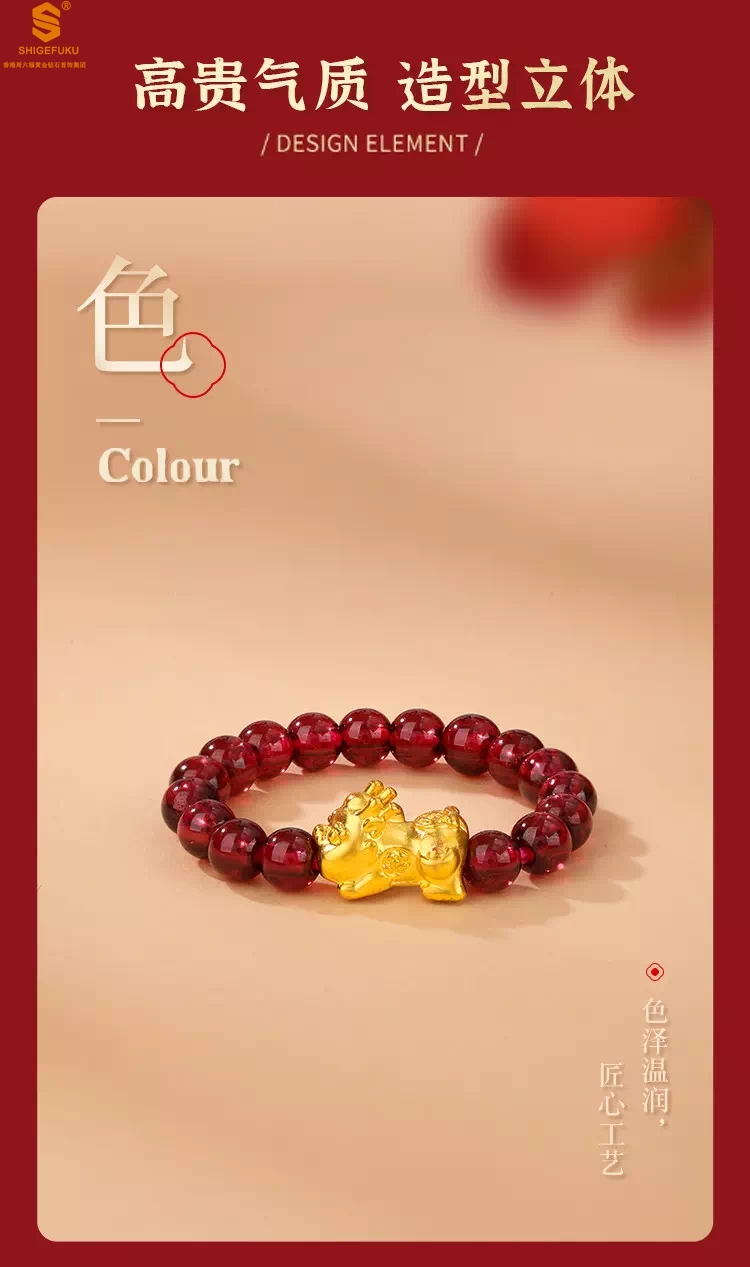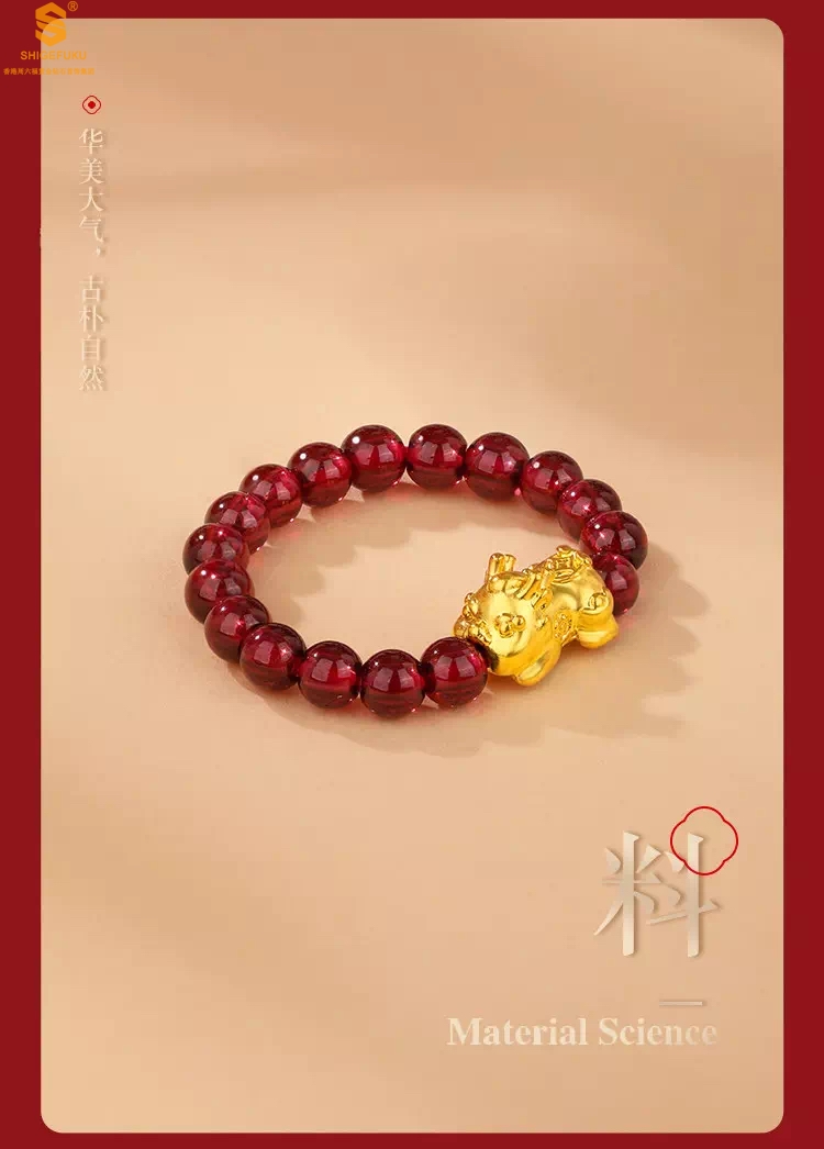 尺寸:貔貅高*宽*厚约4*7*4mm,石榴石约4mm
