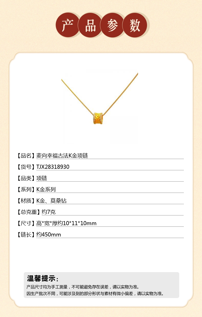 【品名】麦向幸福古法K金项链