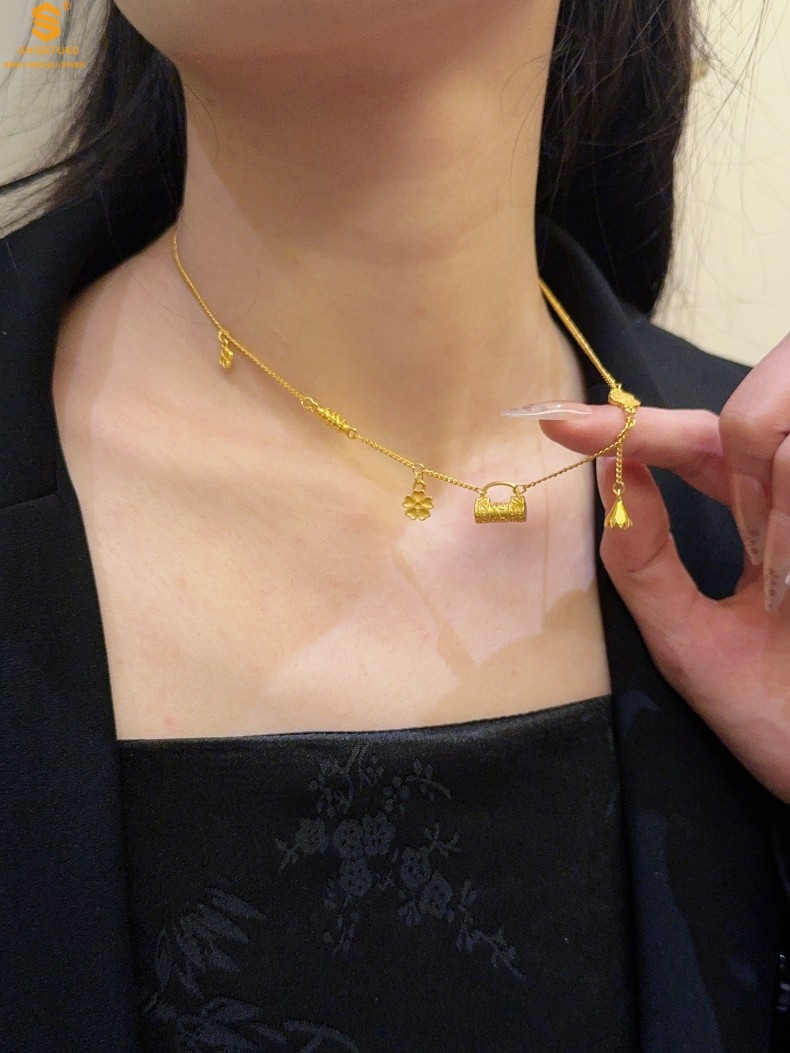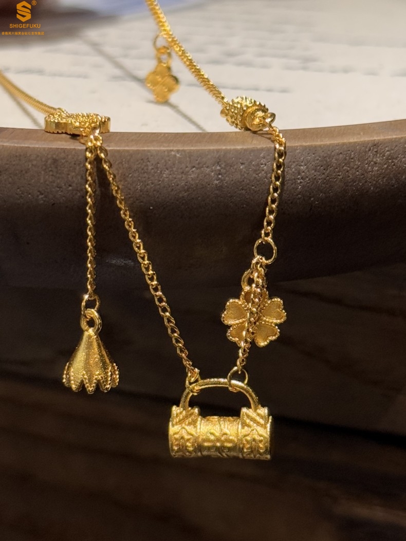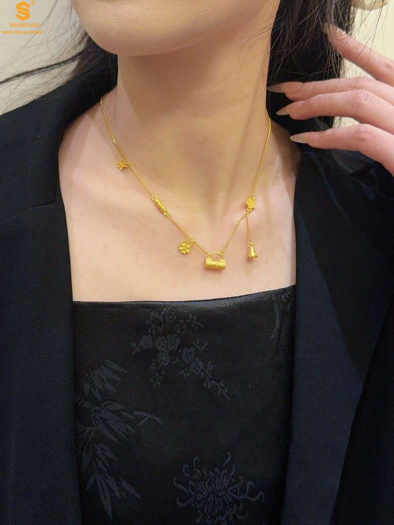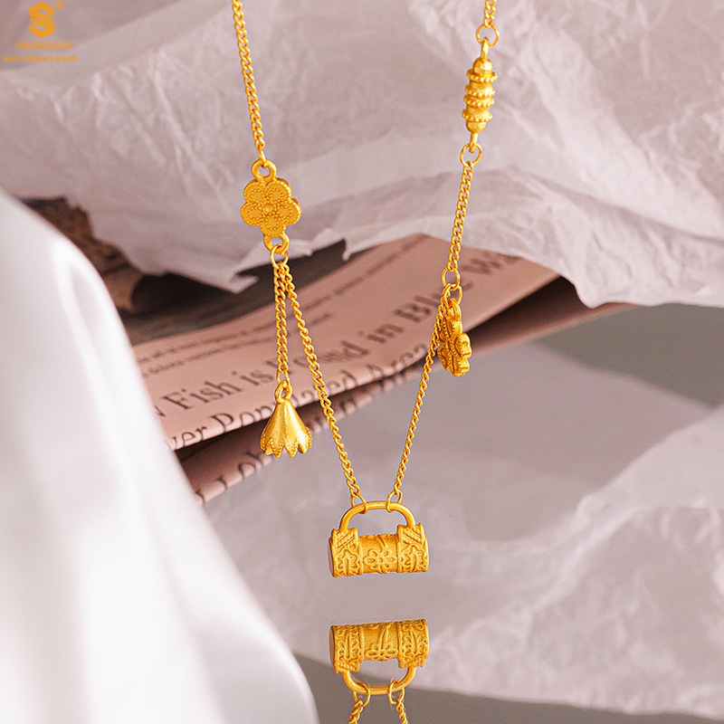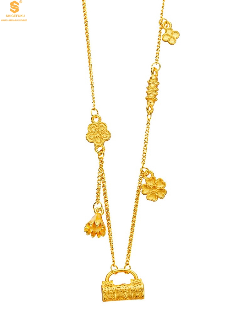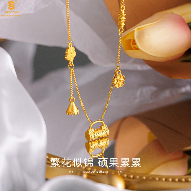 【品名】硕果累累繁花锁包古法K金项链