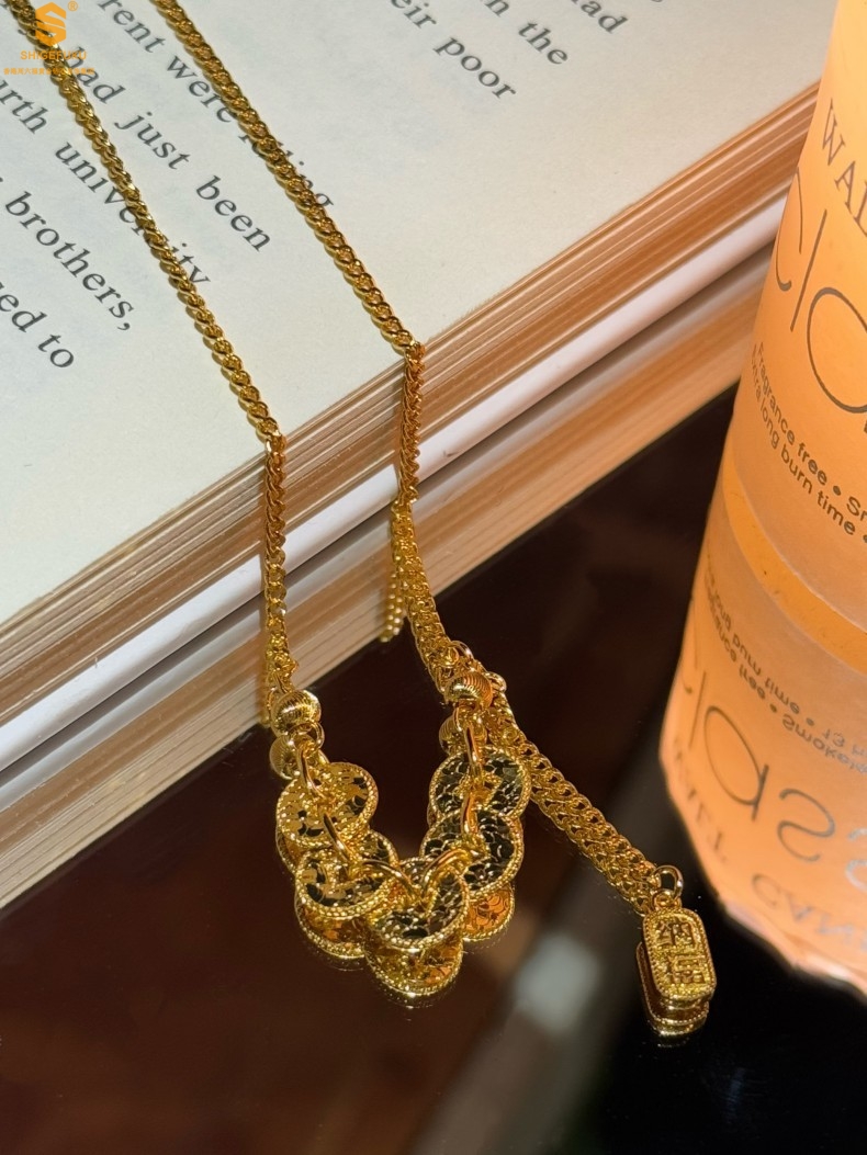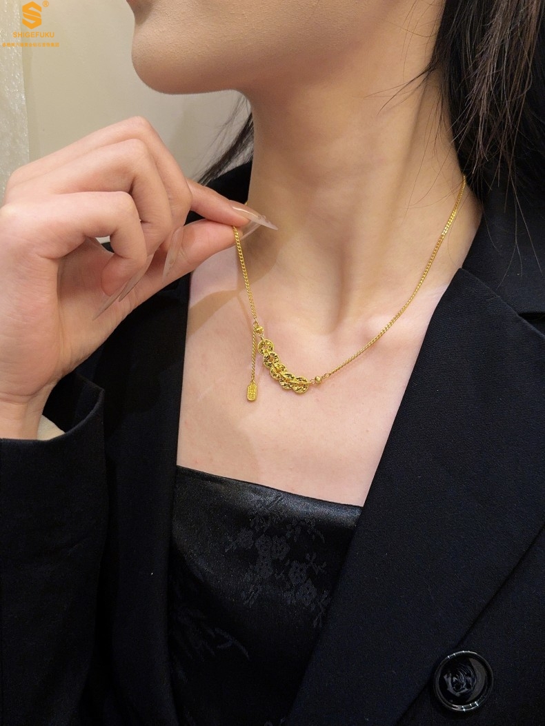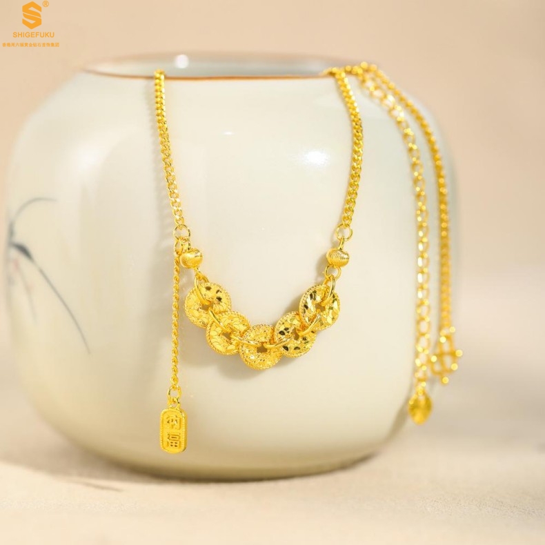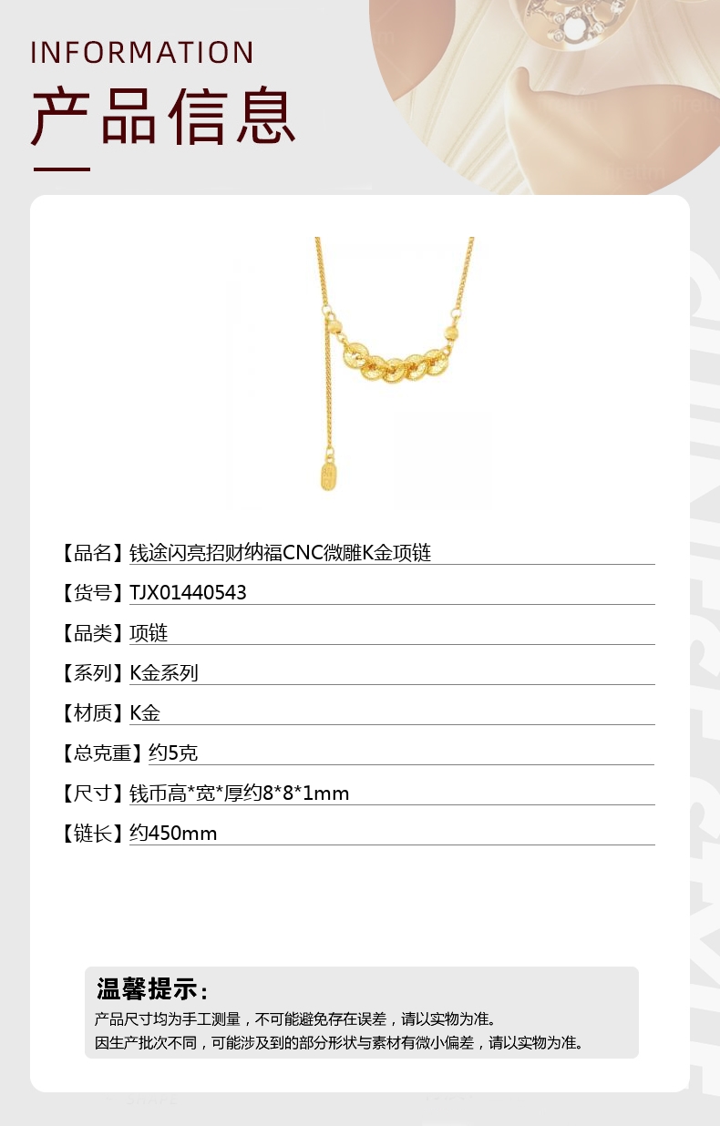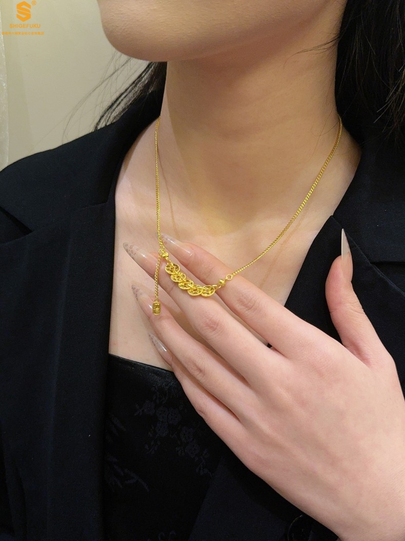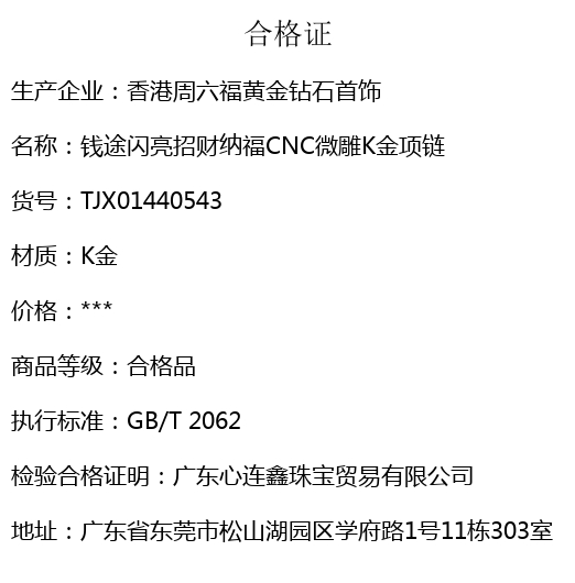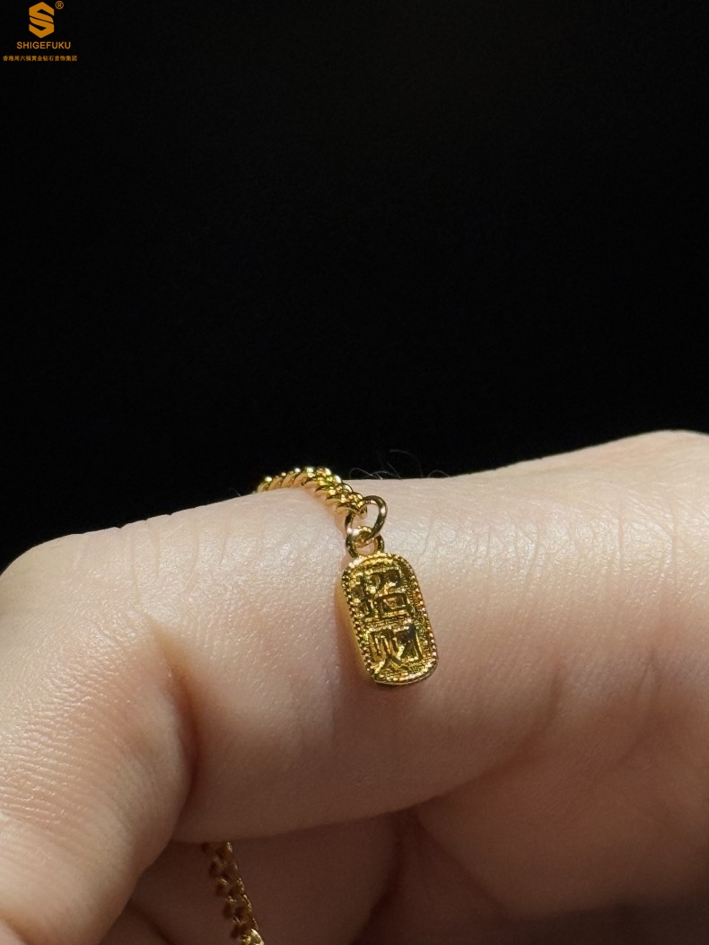 【品名】钱途闪亮招财纳福CNC微雕K金项链
