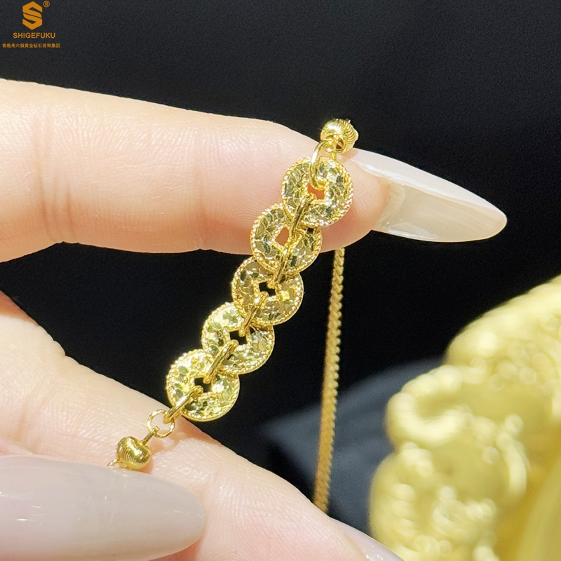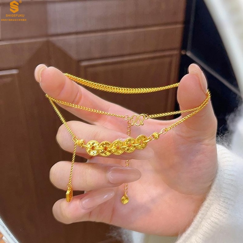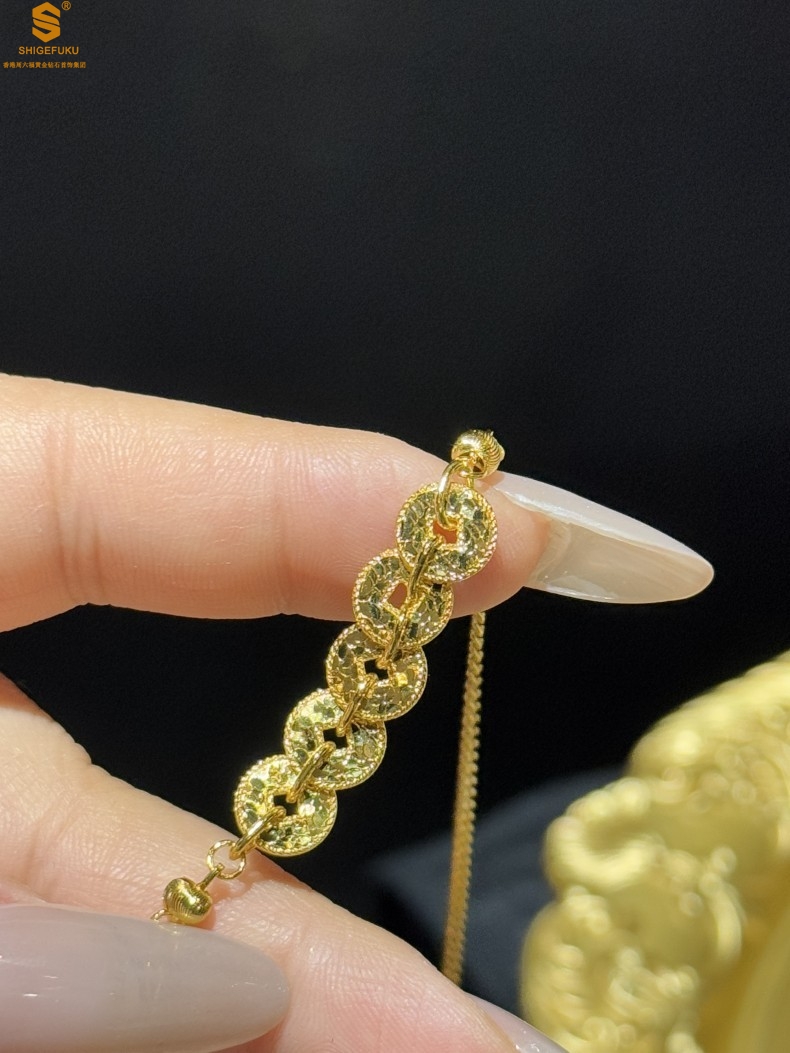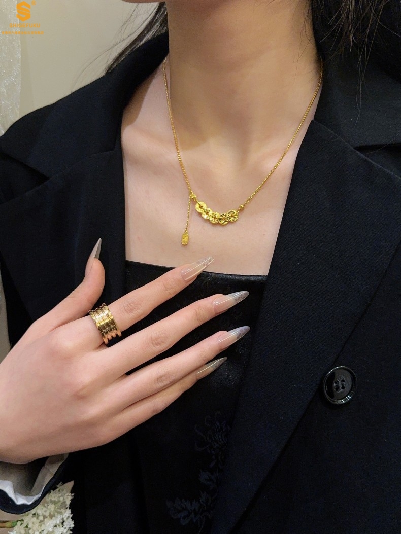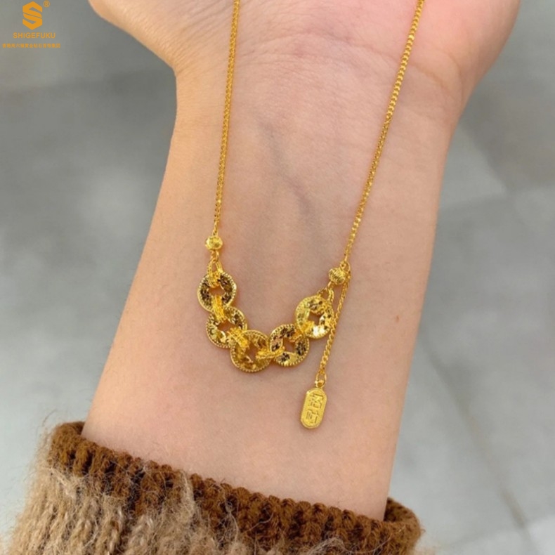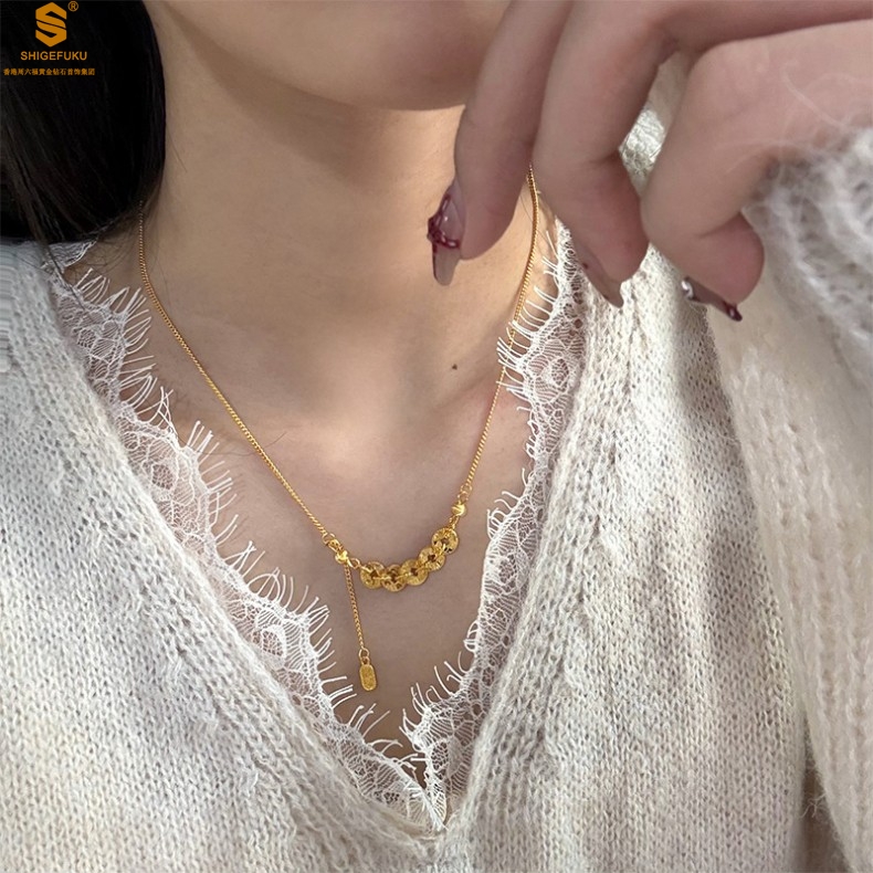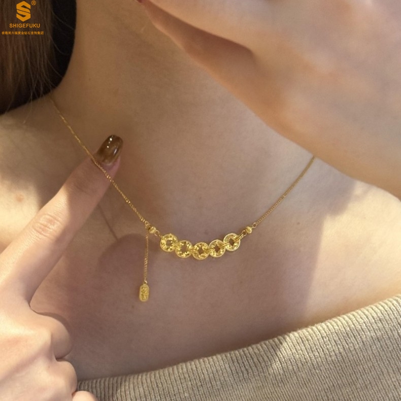 【品名】钱途闪亮招财纳福CNC微雕K金项链