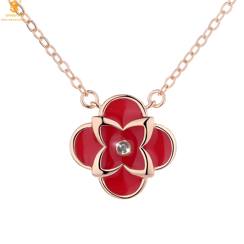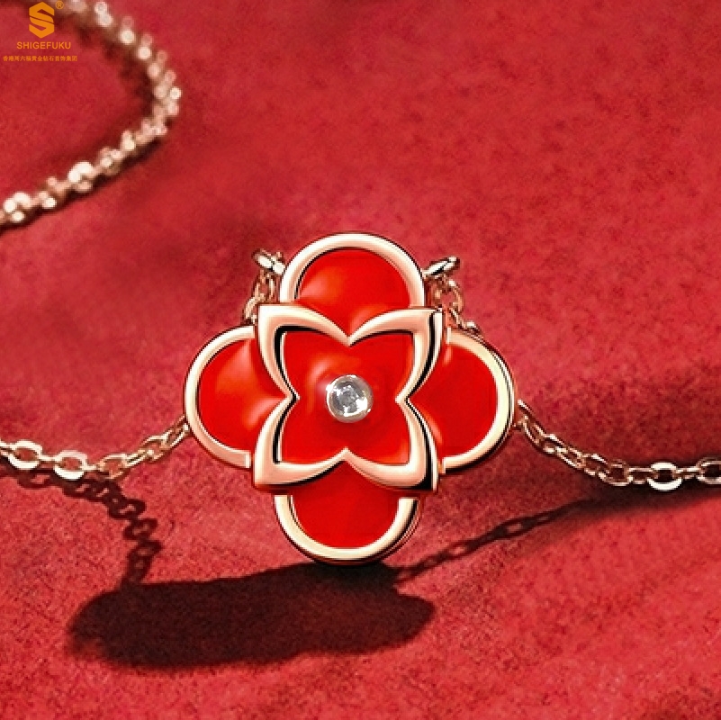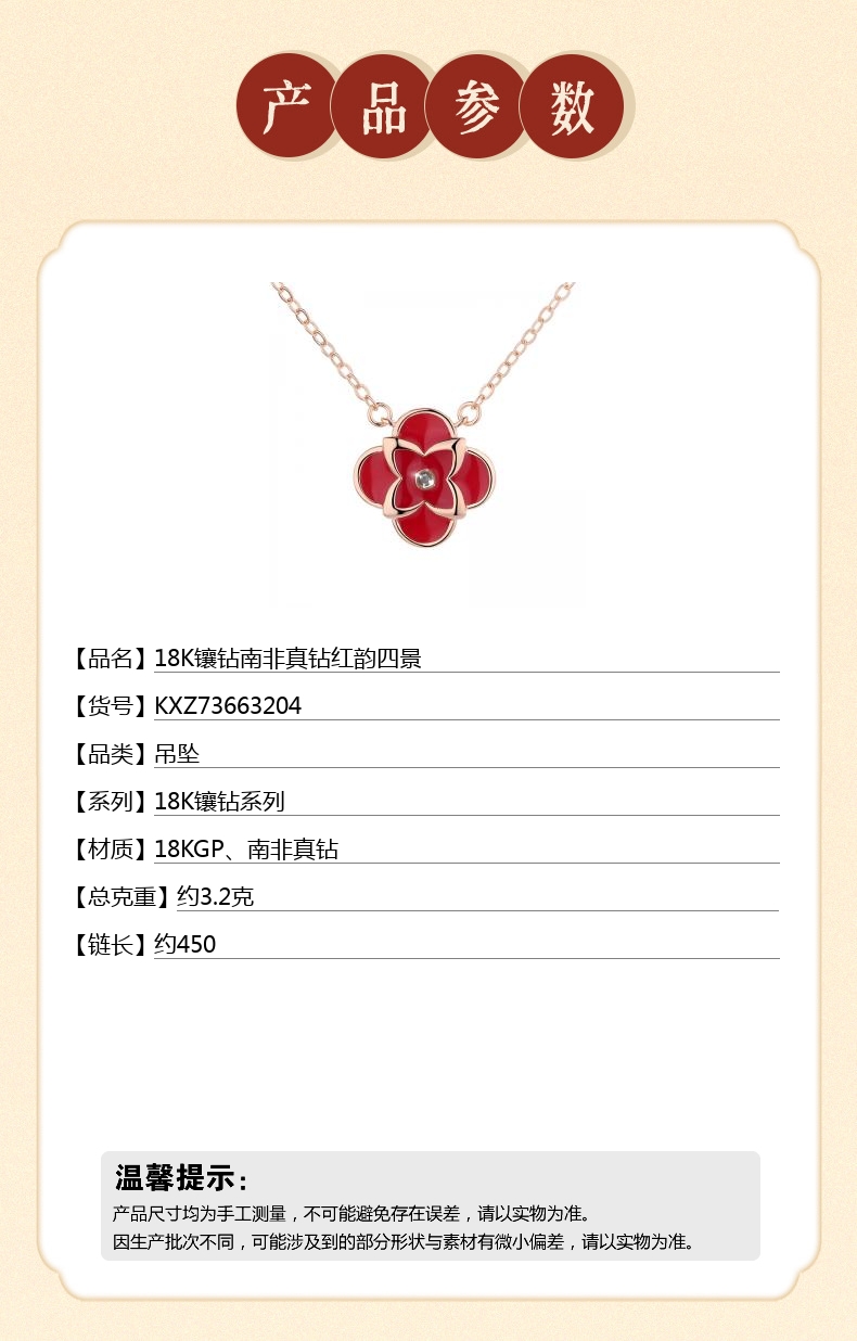 【品名】18K镶钻南非真钻红韵四景