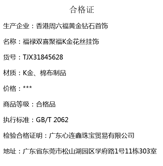 【套装包含】首饰+传承礼盒+礼品袋+国检证书+质保单+价签