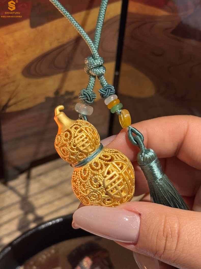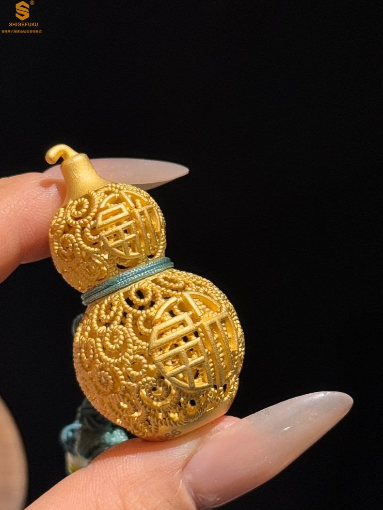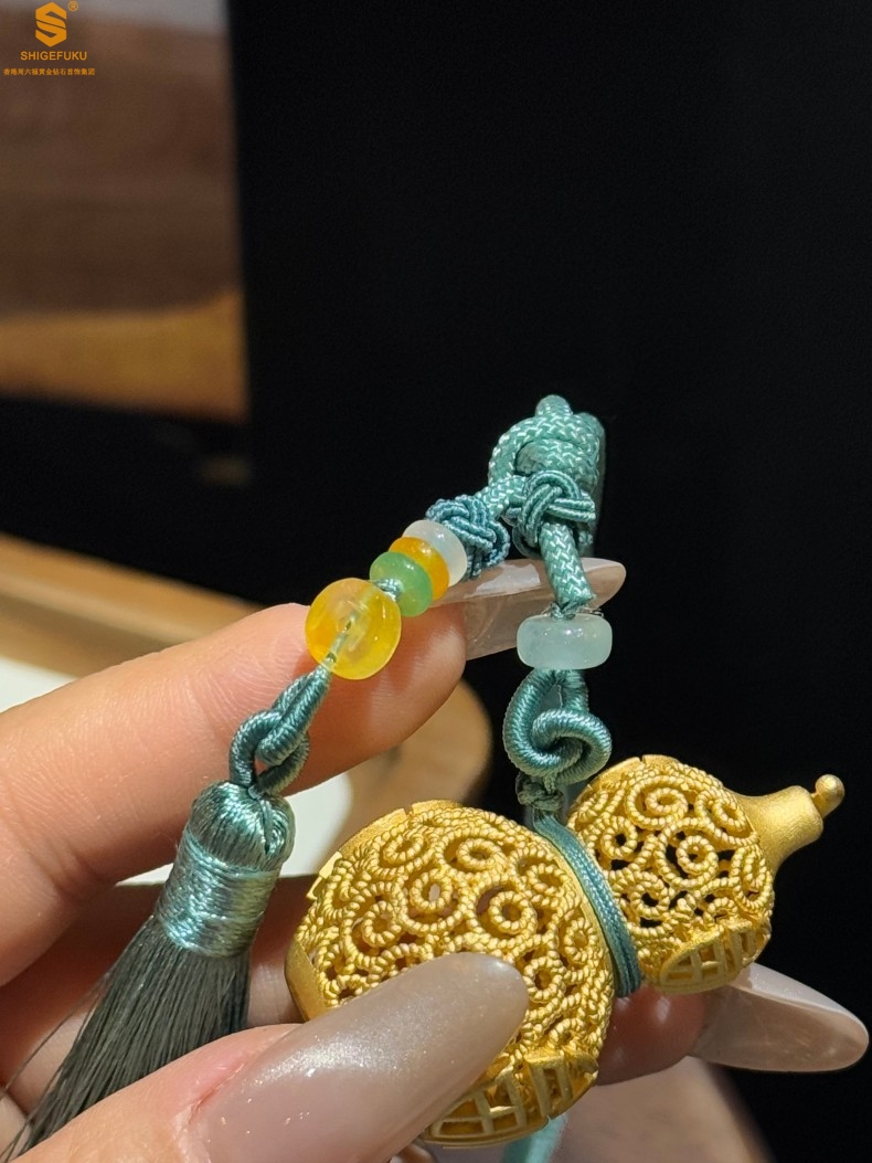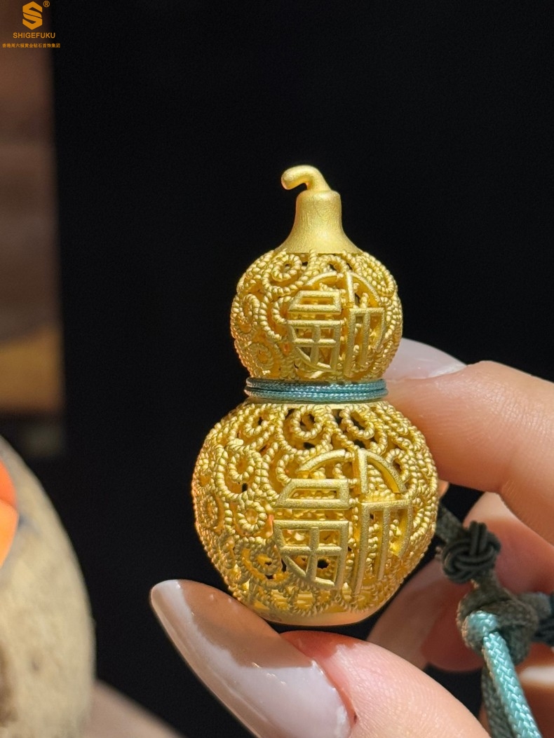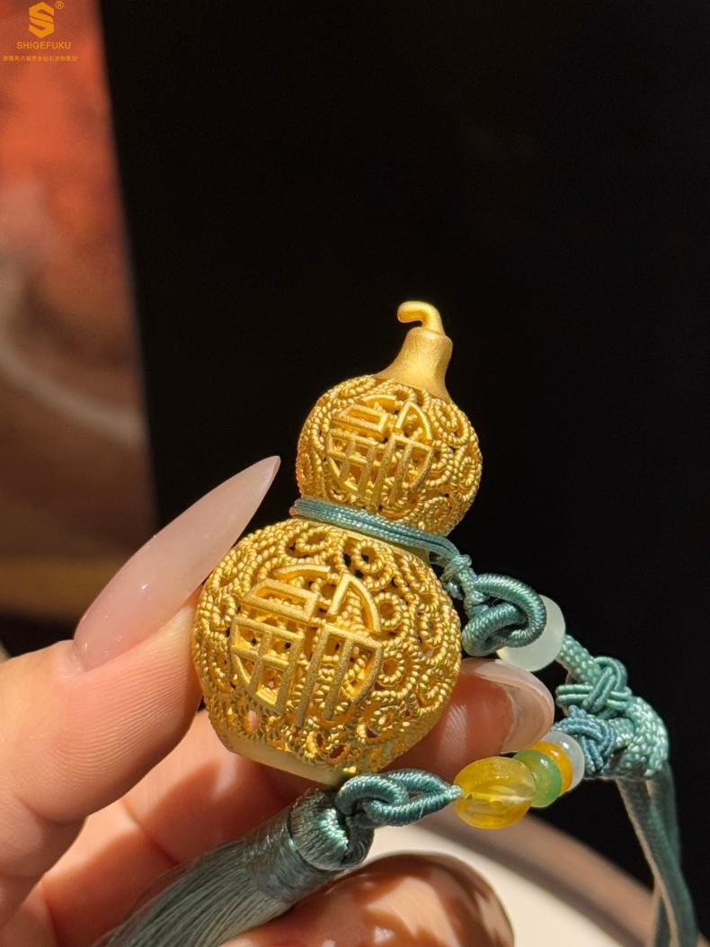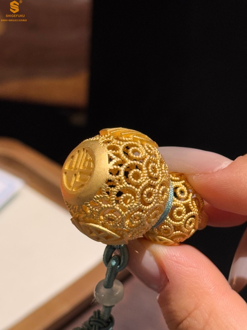 【品名】福禄双喜聚福K金花丝挂饰