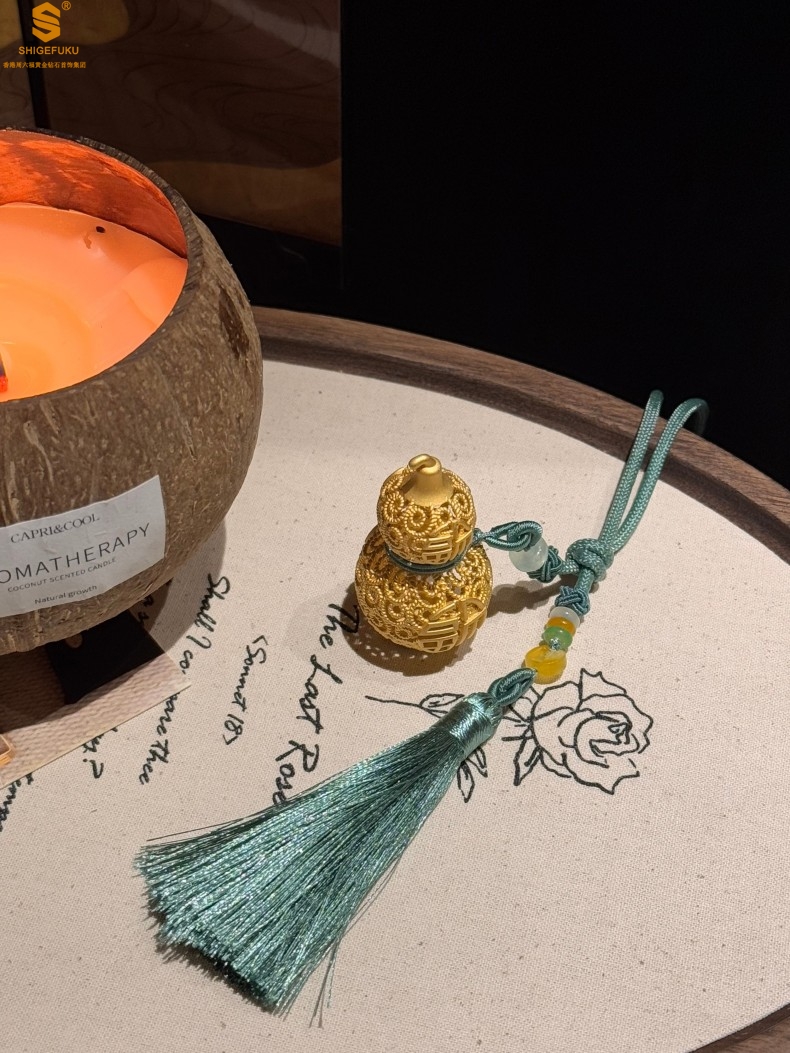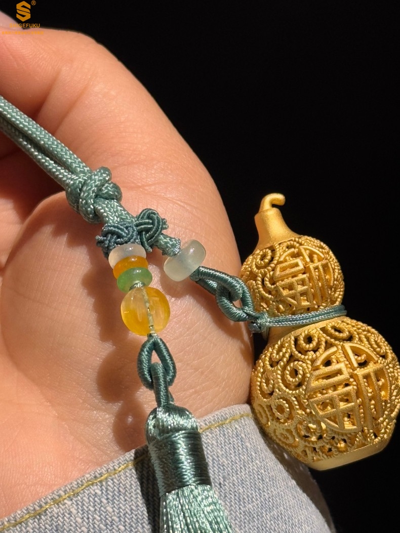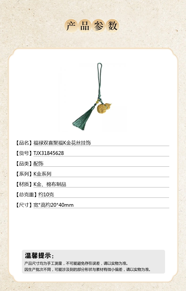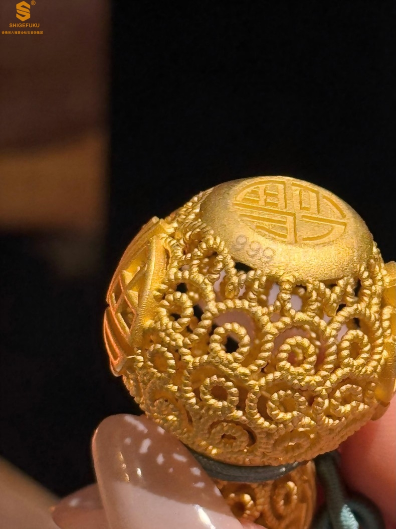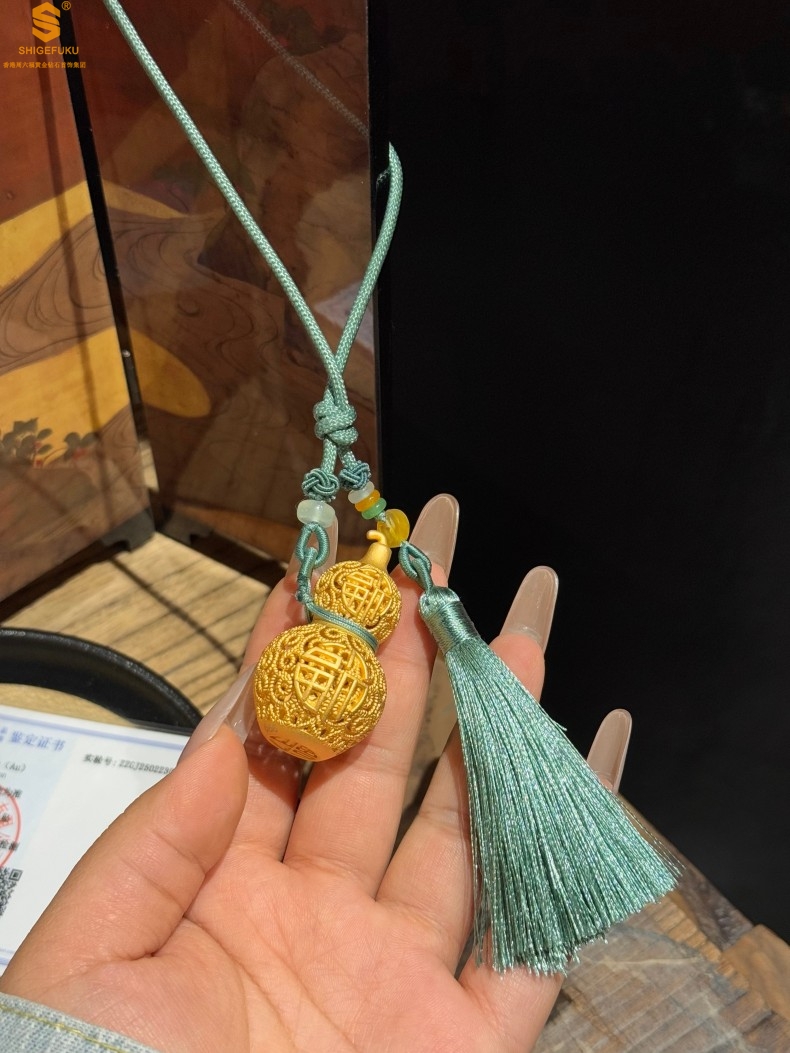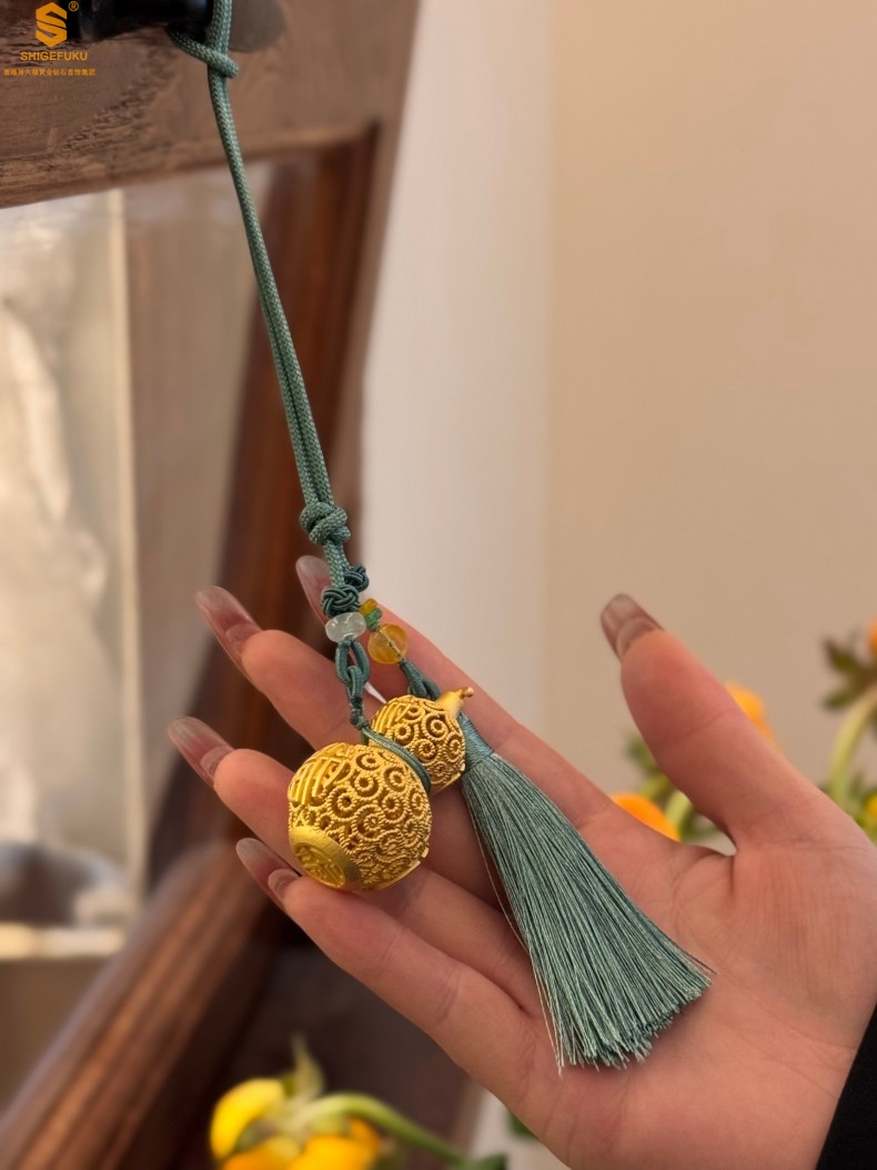 【品名】福禄双喜聚福K金花丝挂饰