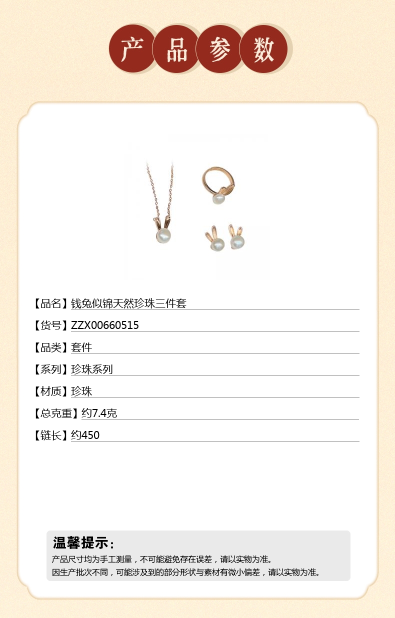 【品名】钱兔似锦天然珍珠三件套