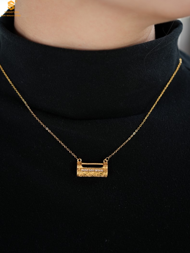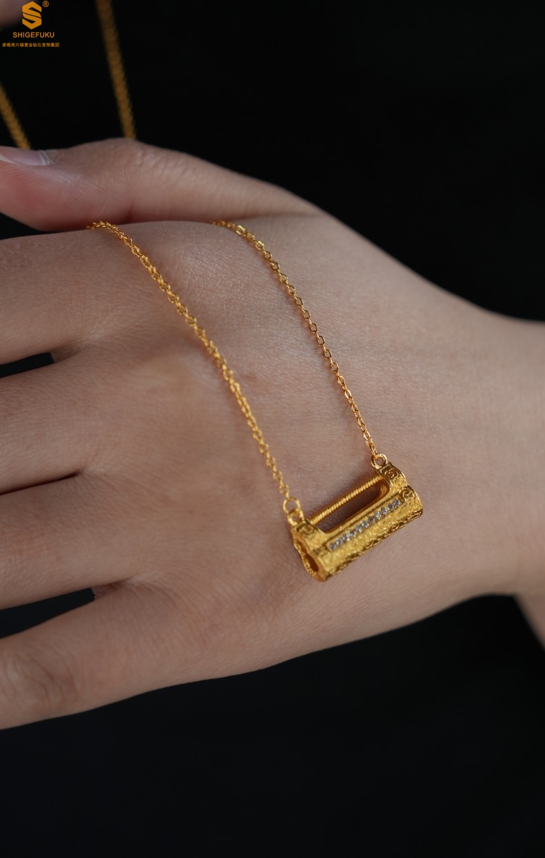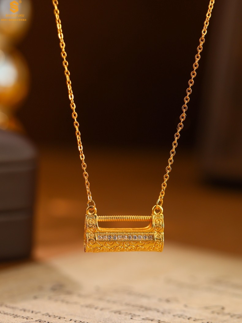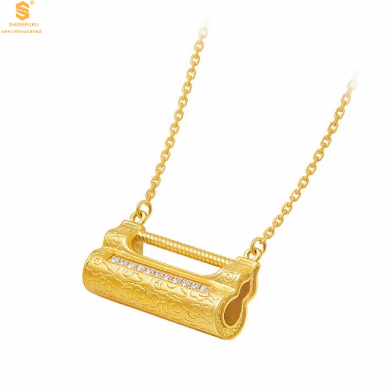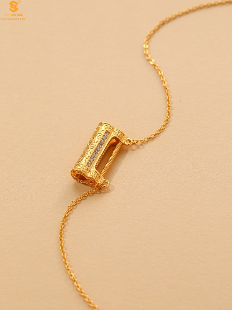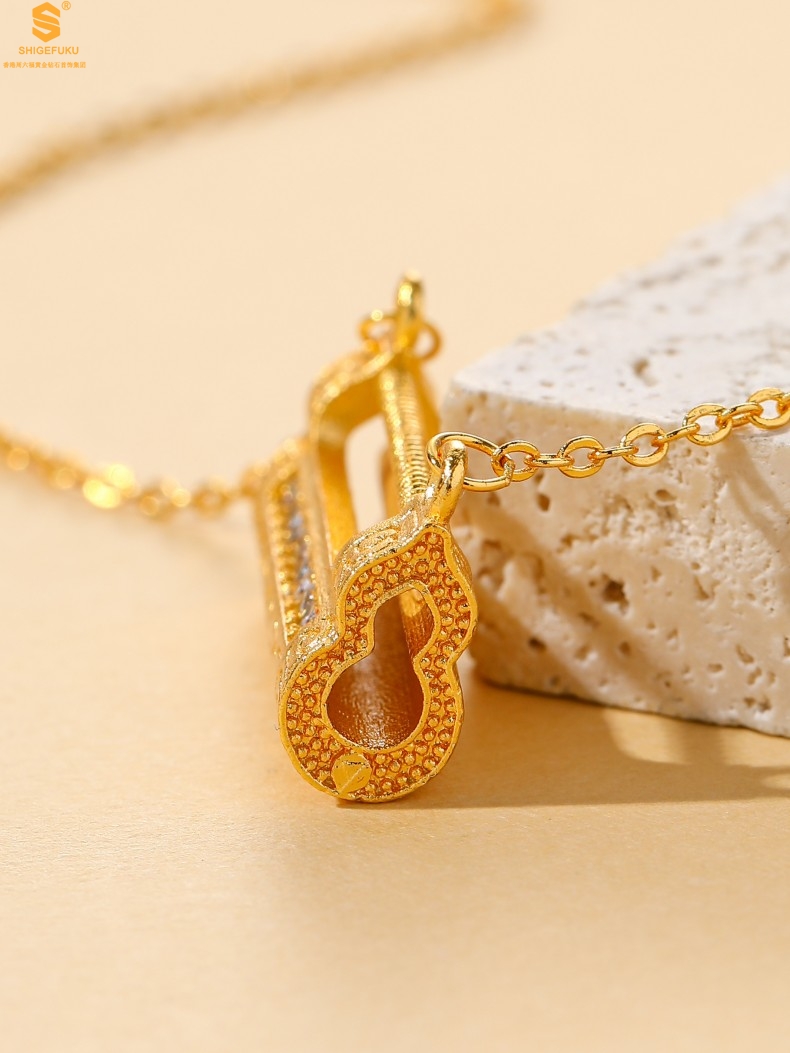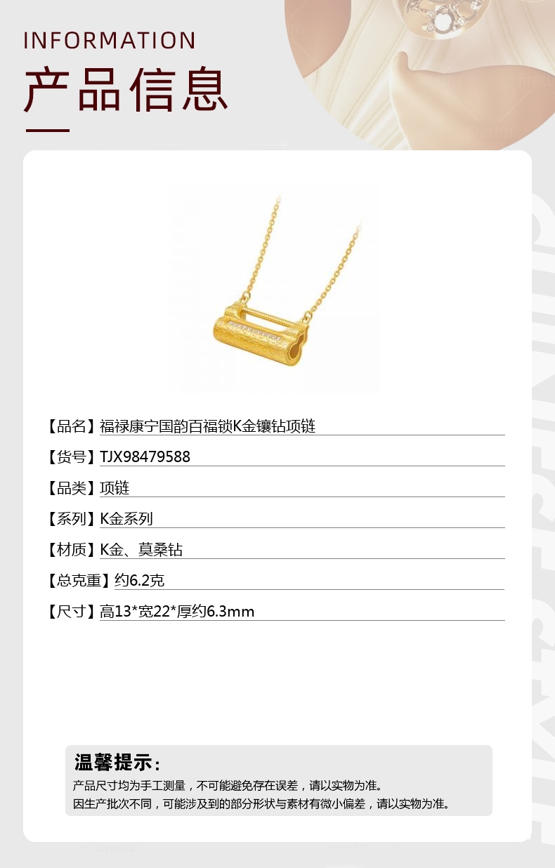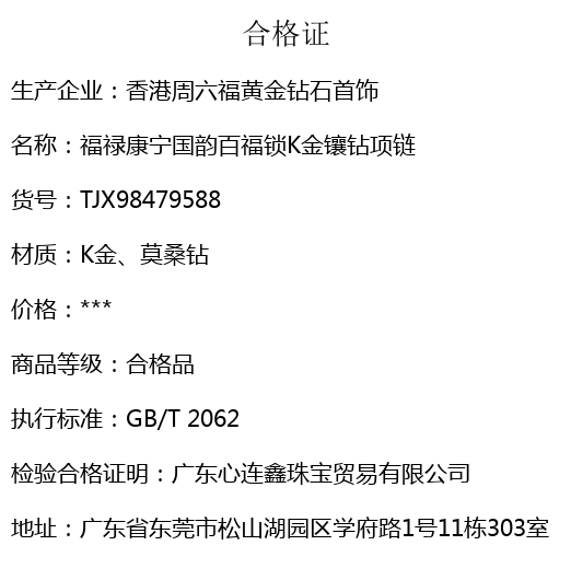 【品名】福禄康宁国韵百福锁K金镶钻项链