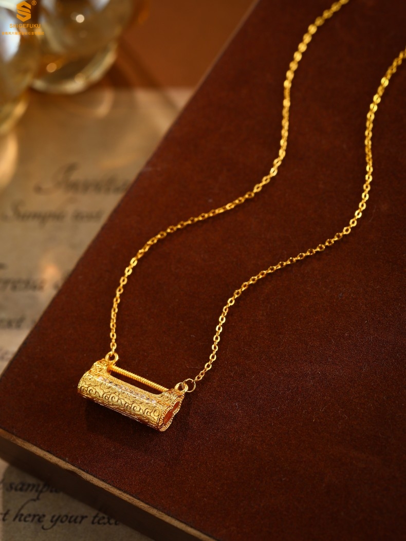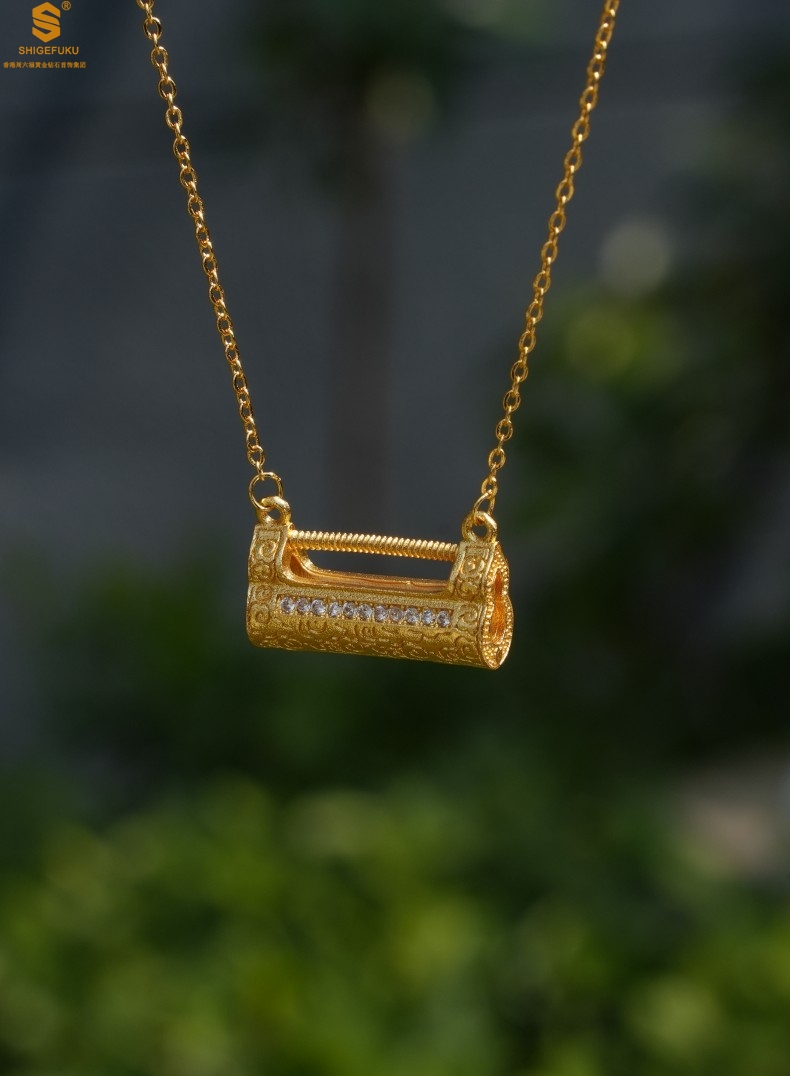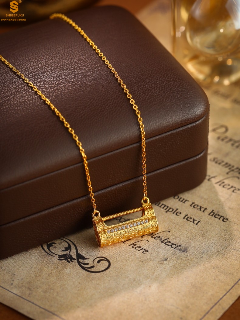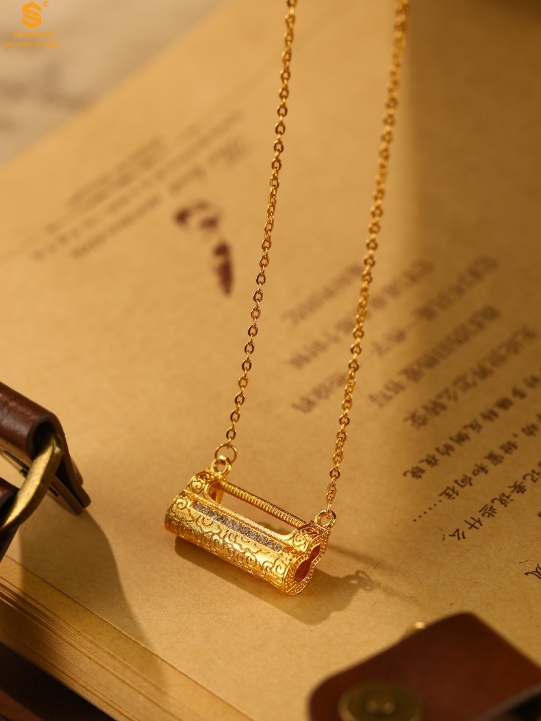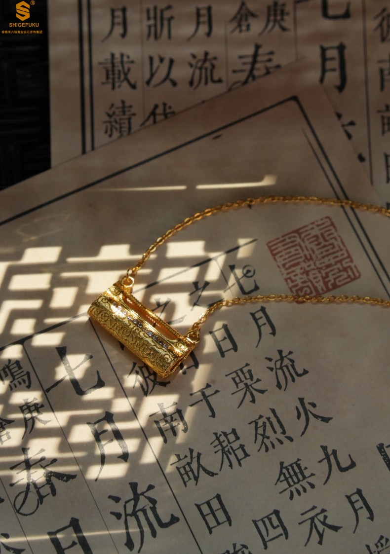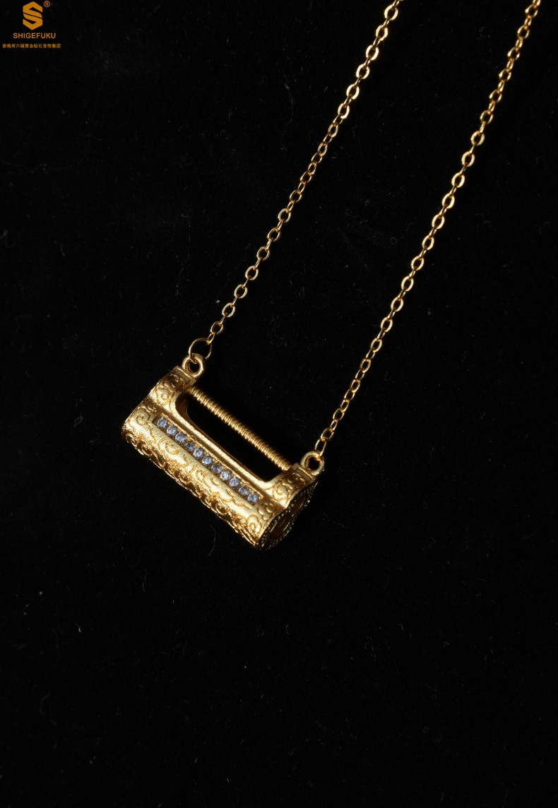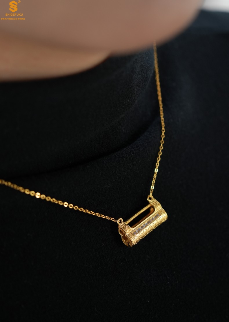 【品名】福禄康宁国韵百福锁K金镶钻项链