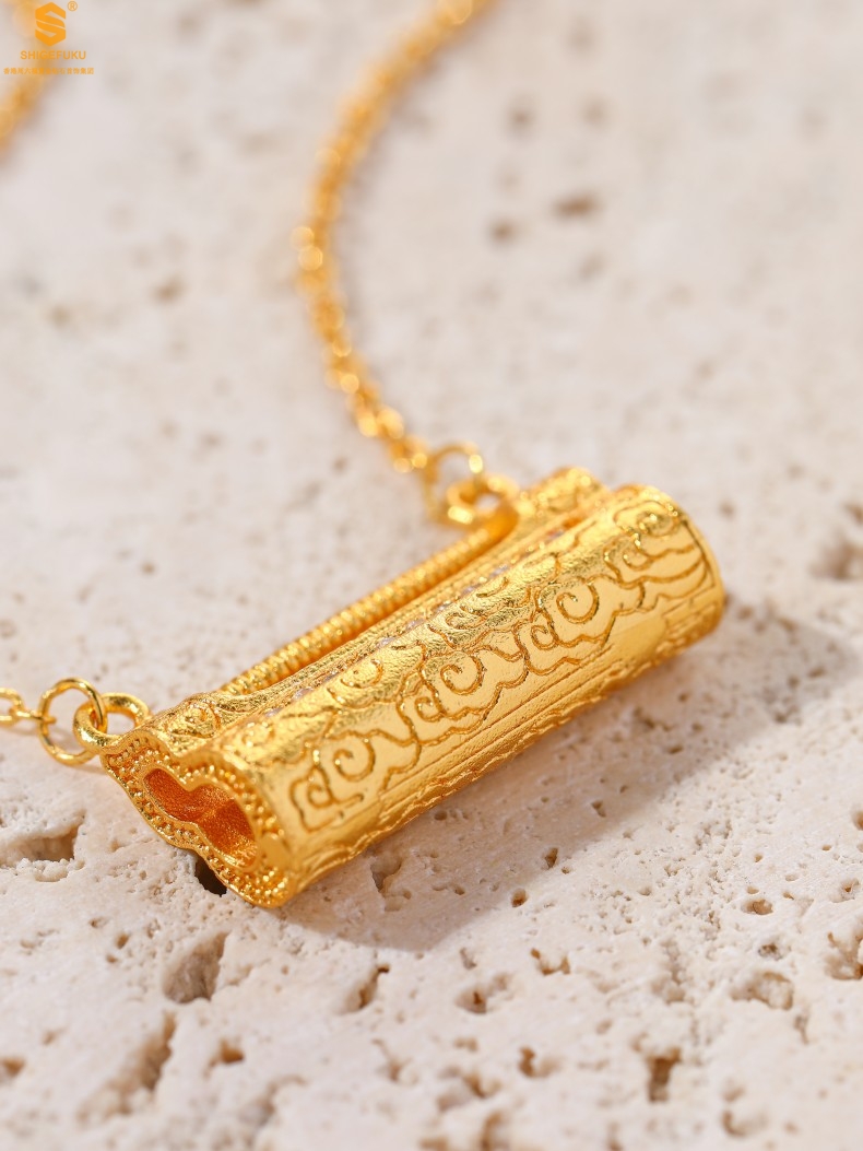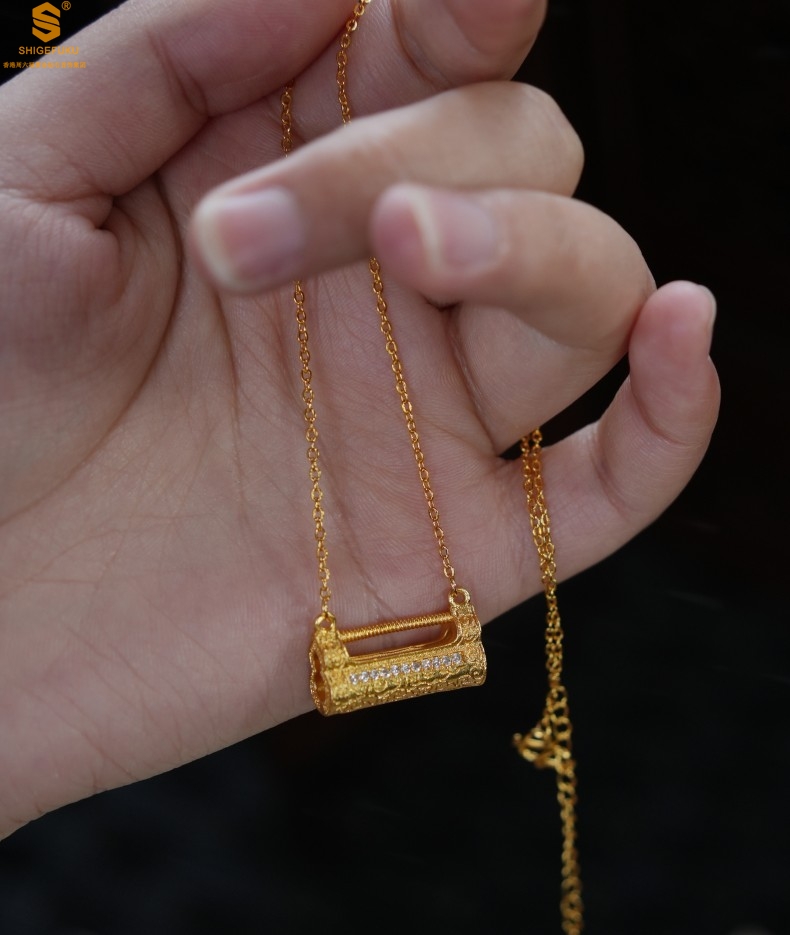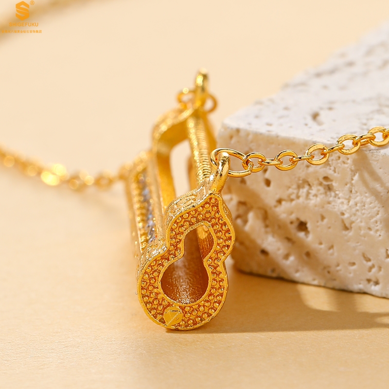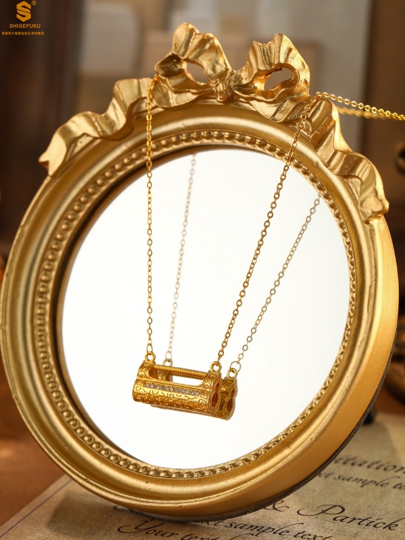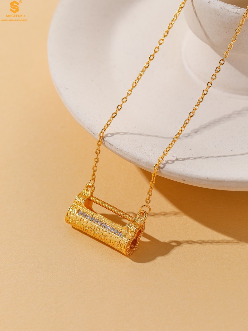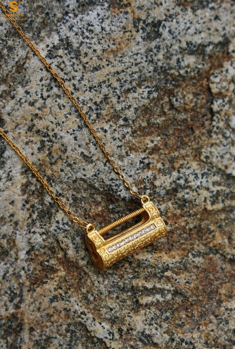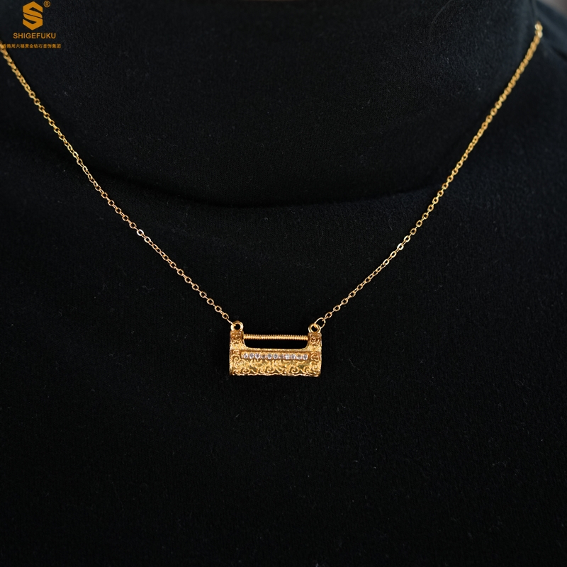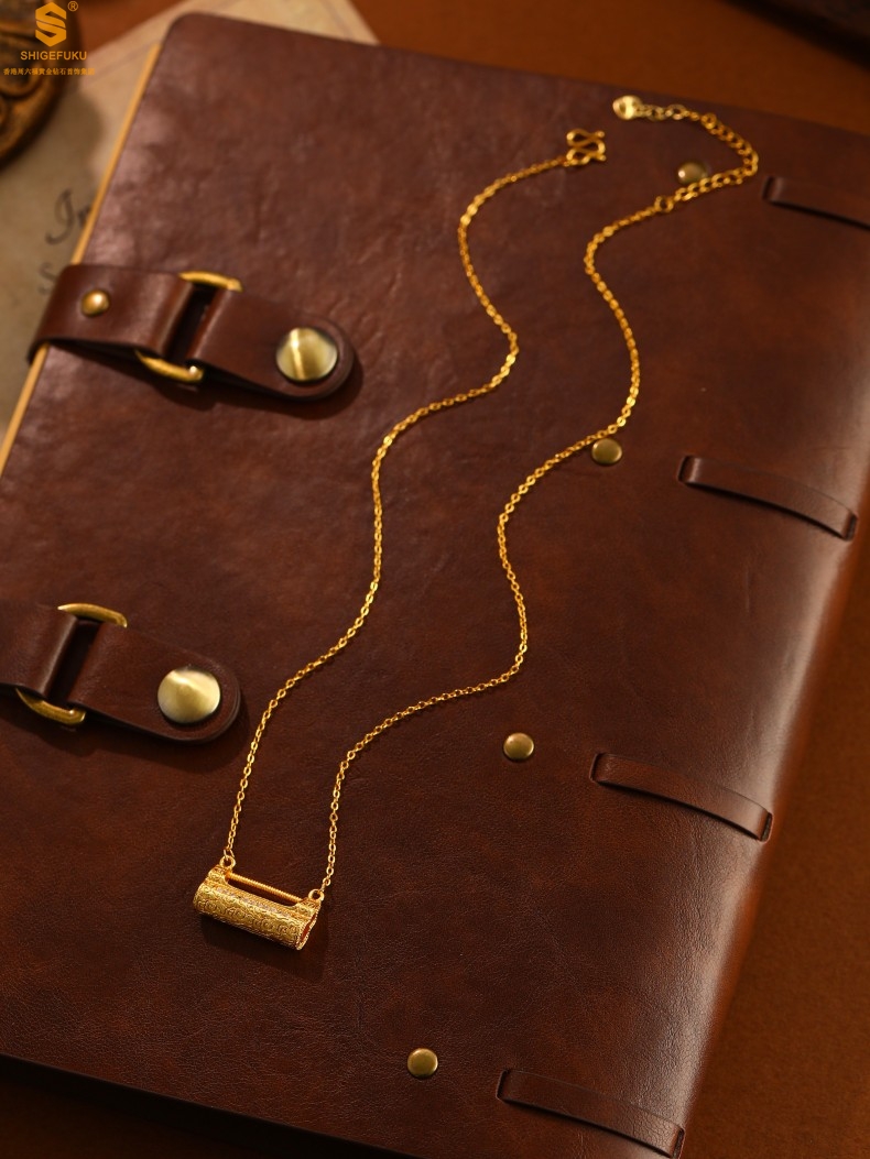 【品名】福禄康宁国韵百福锁K金镶钻项链