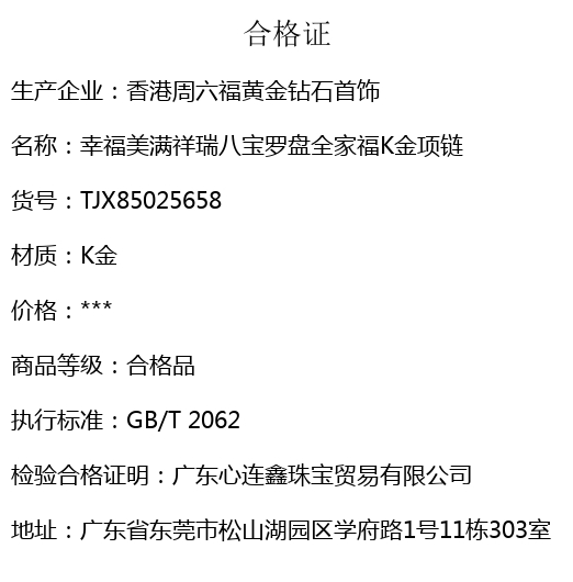【套装包含】首饰+礼品盒+礼品袋+国检证书+质保单+价签