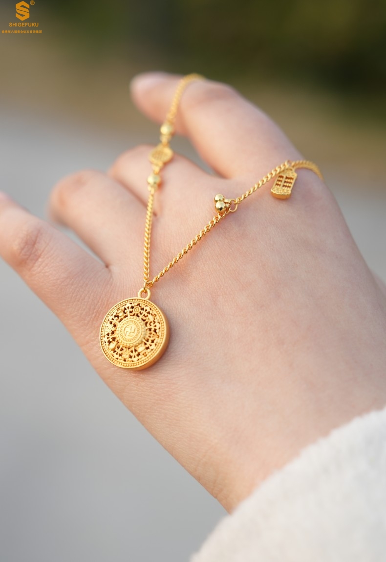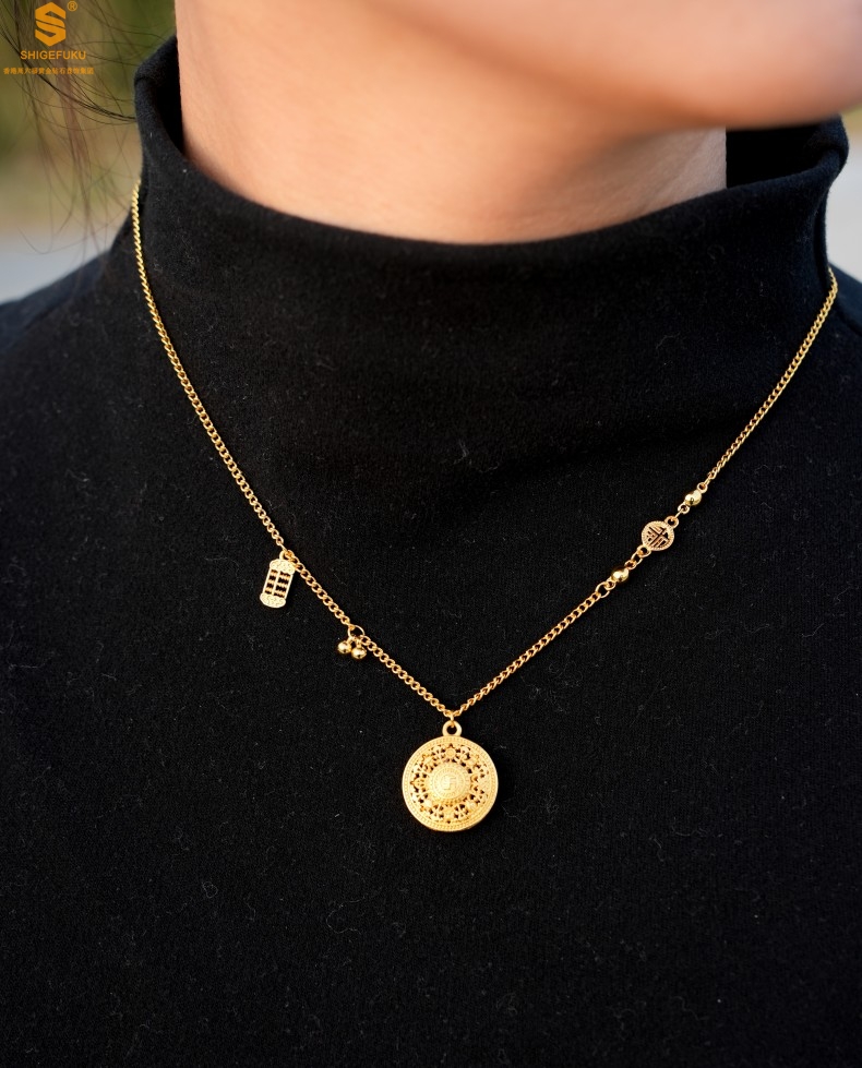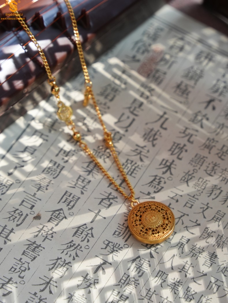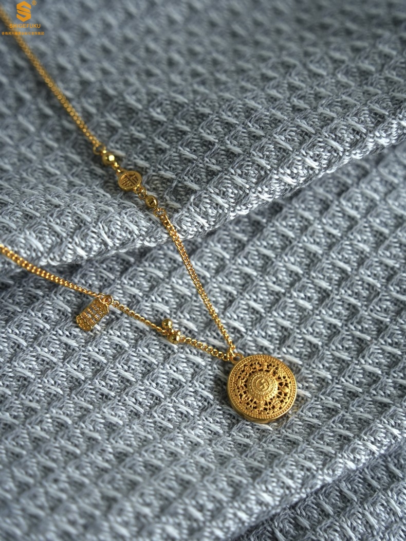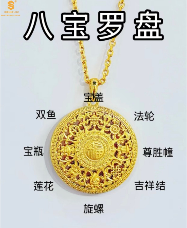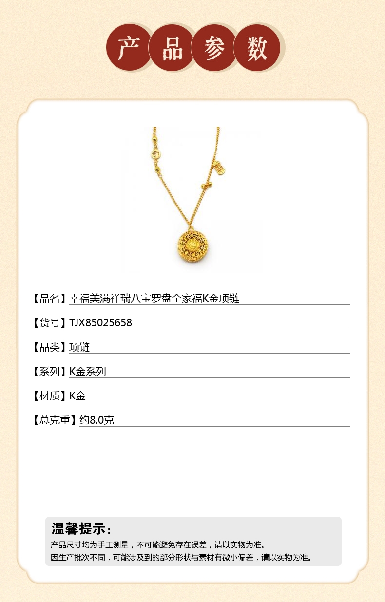 【品名】幸福美满祥瑞八宝罗盘全家福K金项链