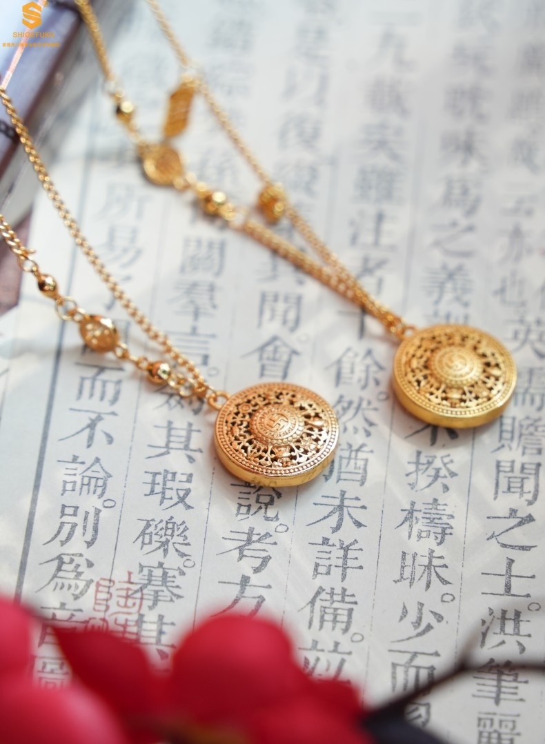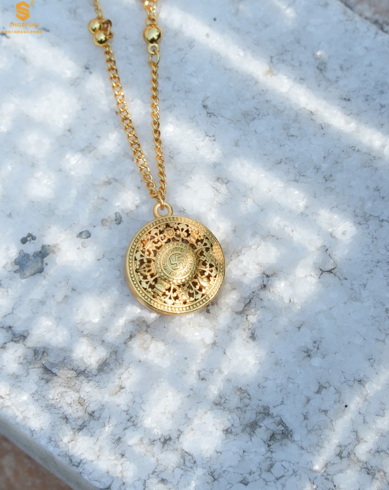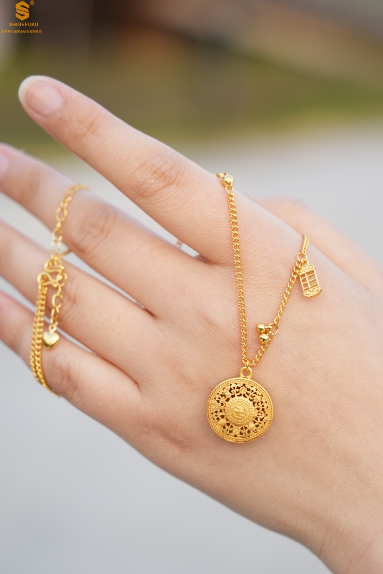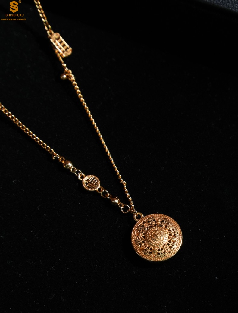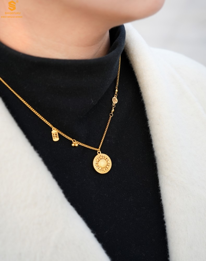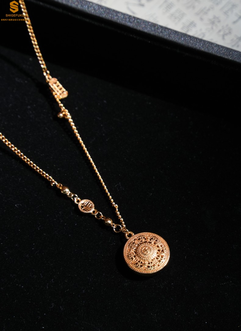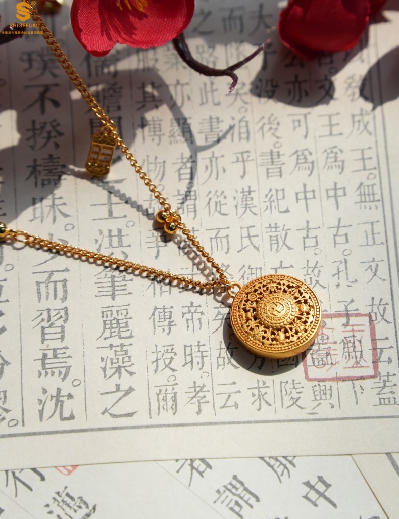 【品名】幸福美满祥瑞八宝罗盘全家福K金项链