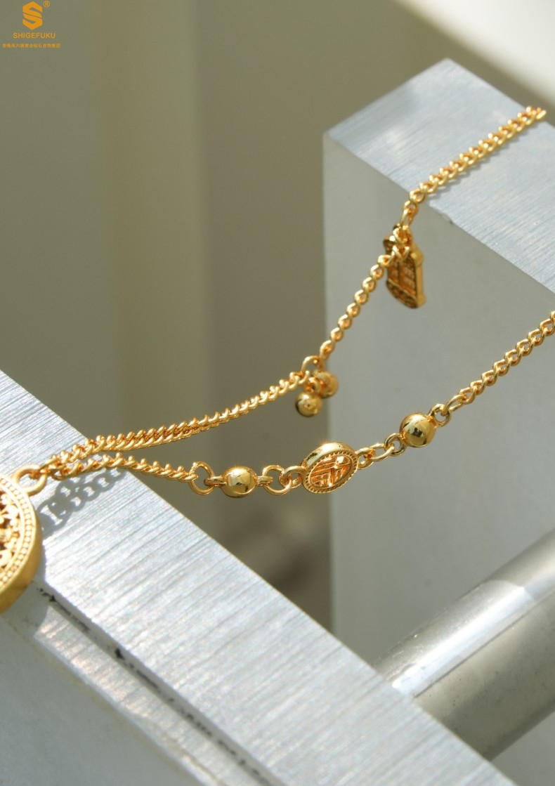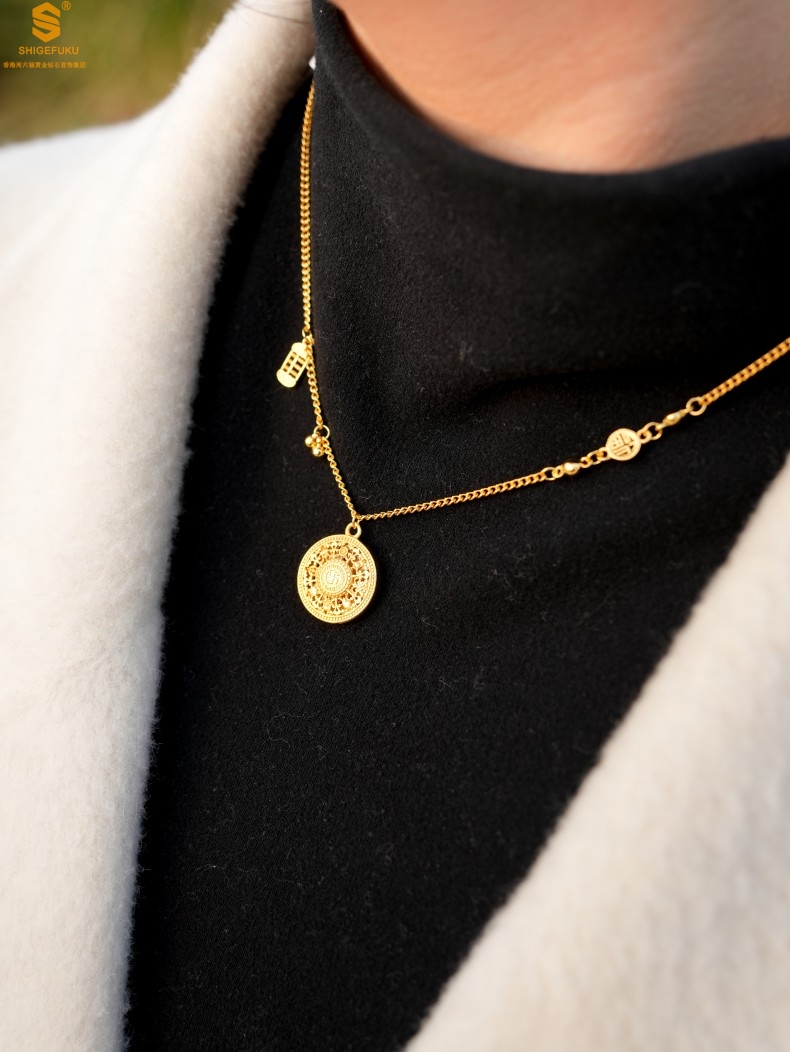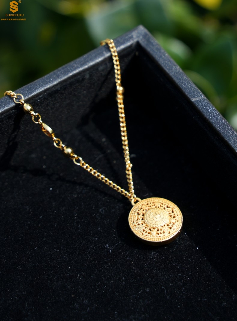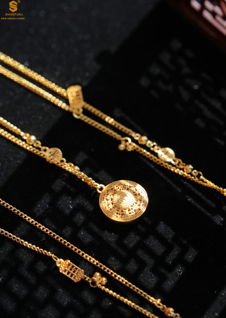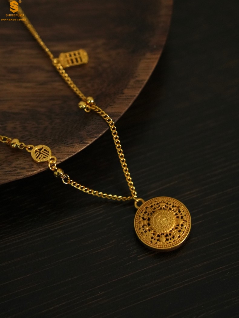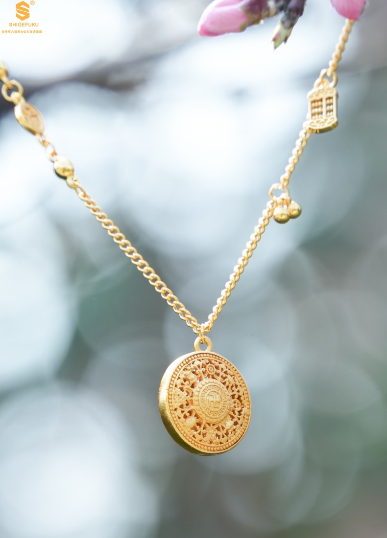 【品名】幸福美满祥瑞八宝罗盘全家福K金项链