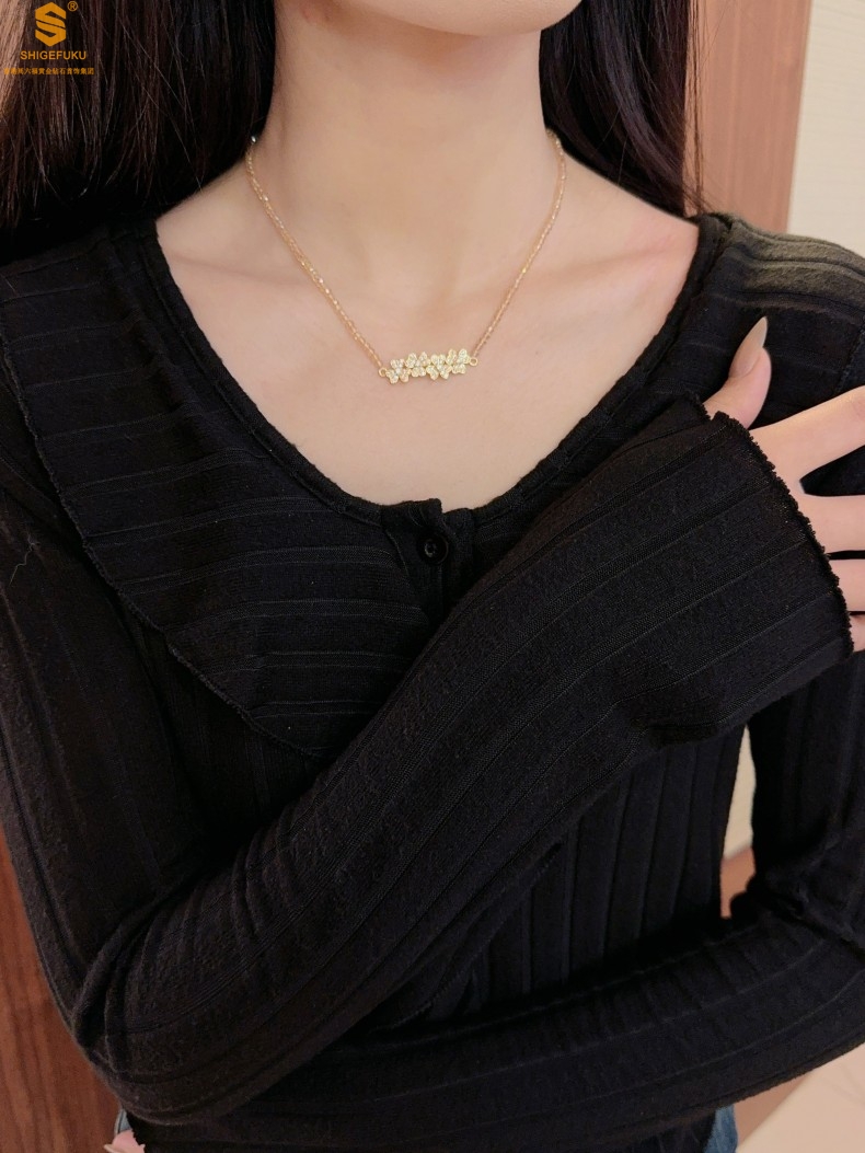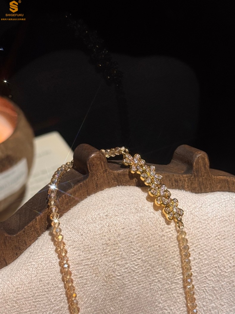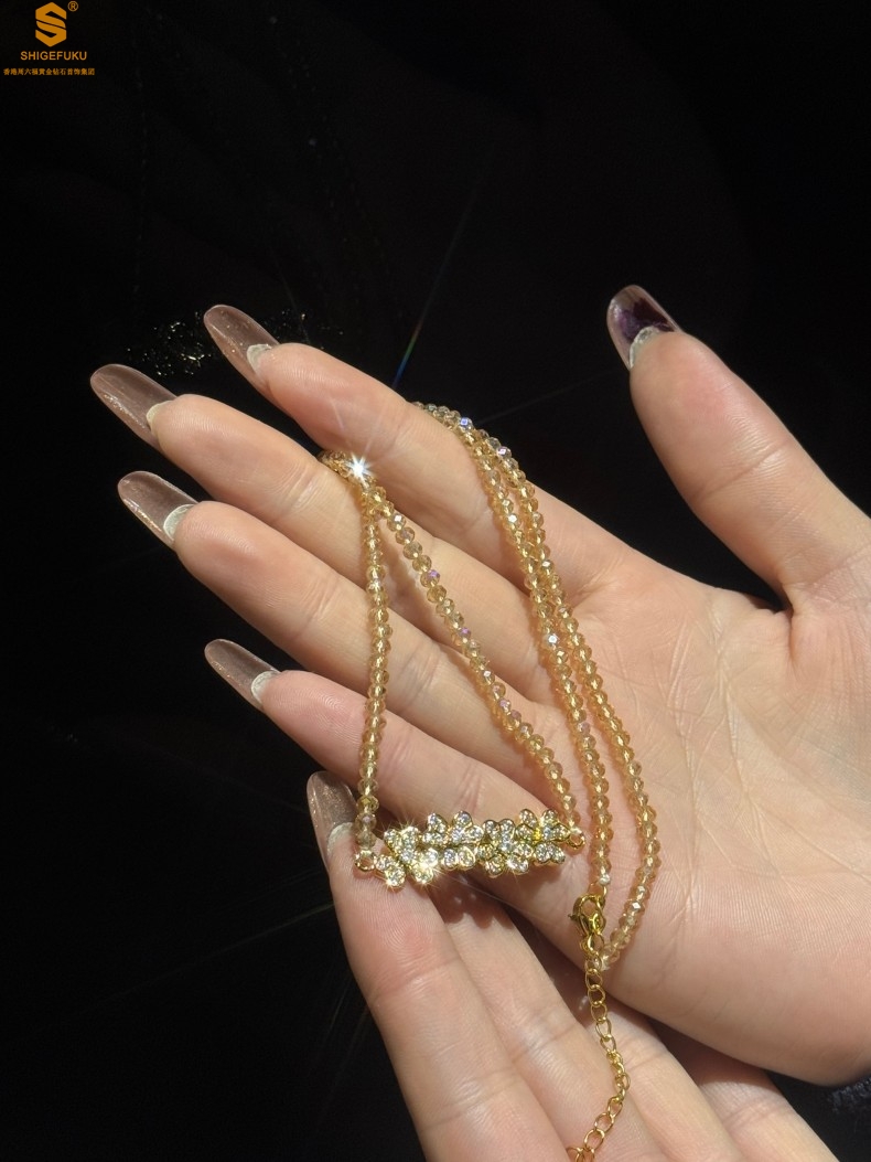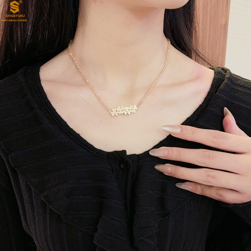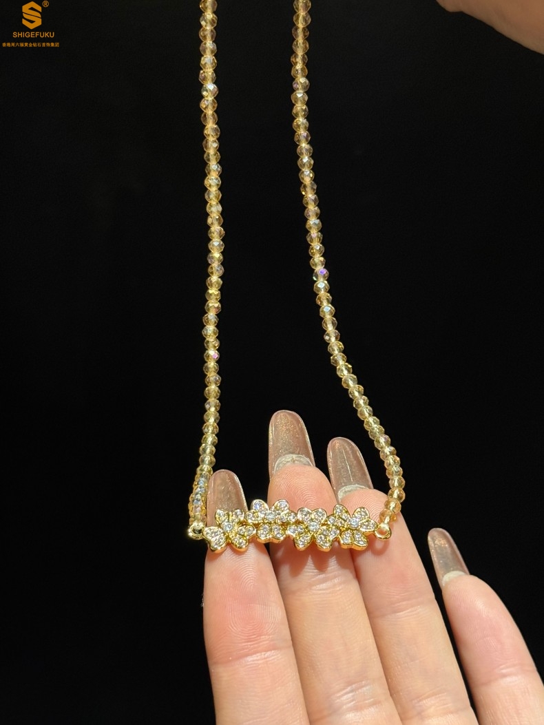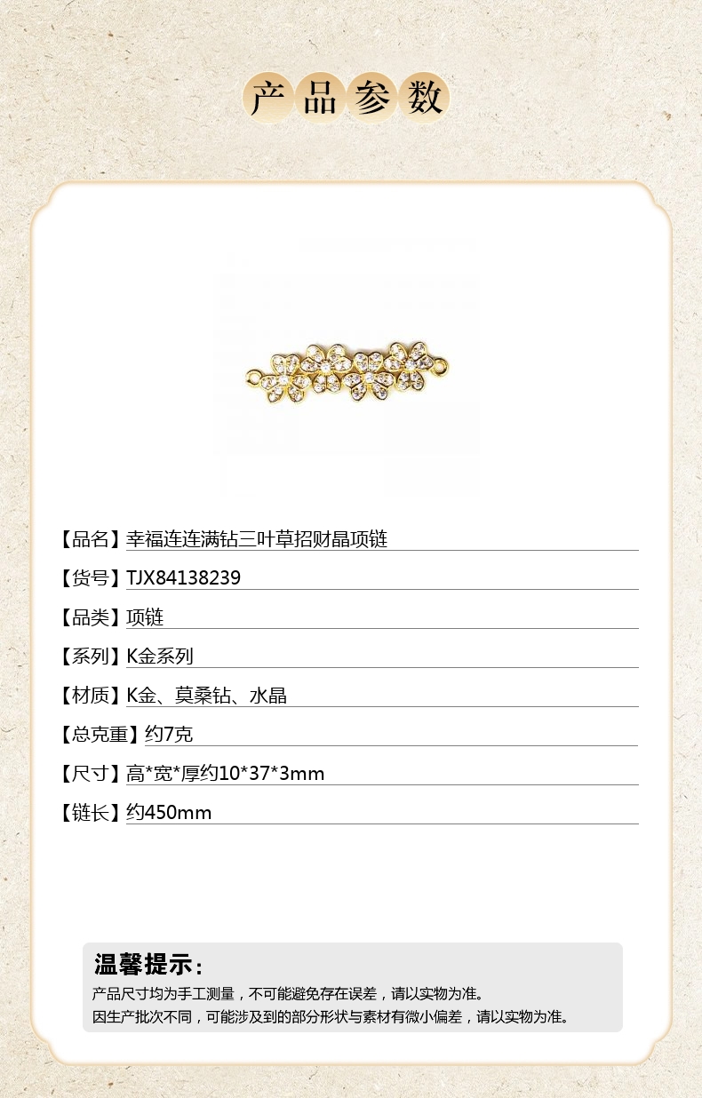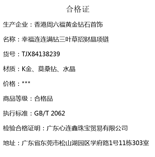 【品名】幸福连连满钻三叶草招财晶项链