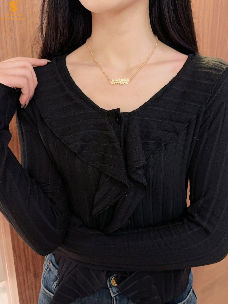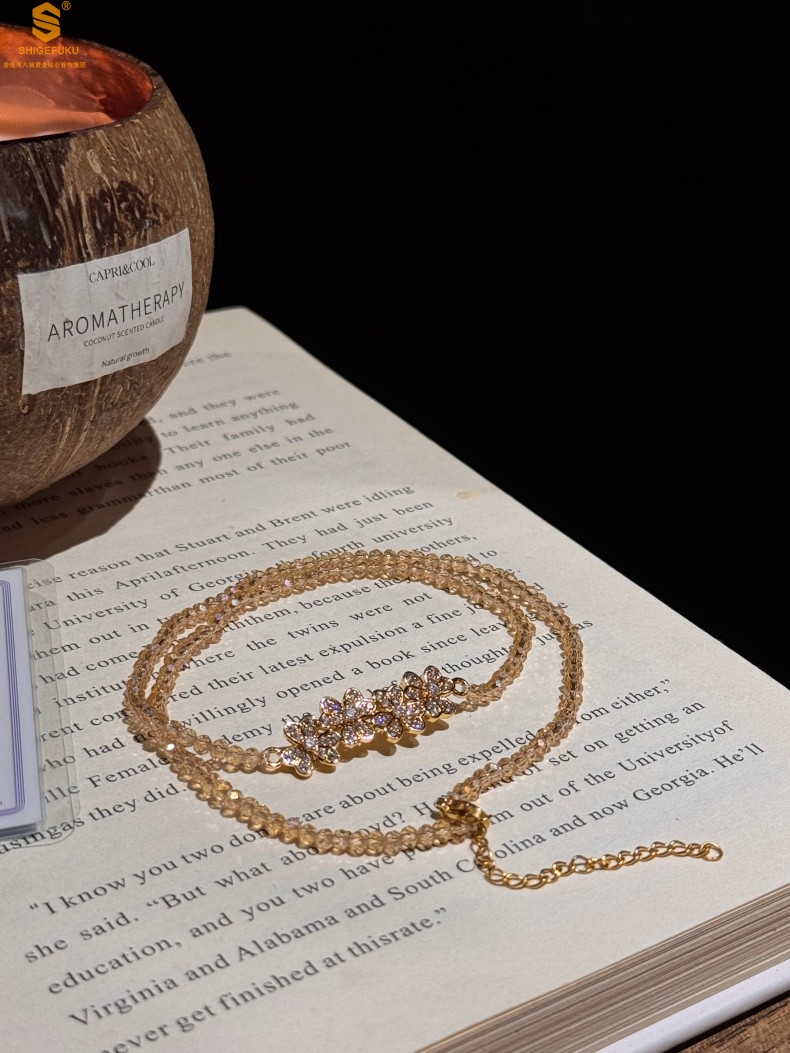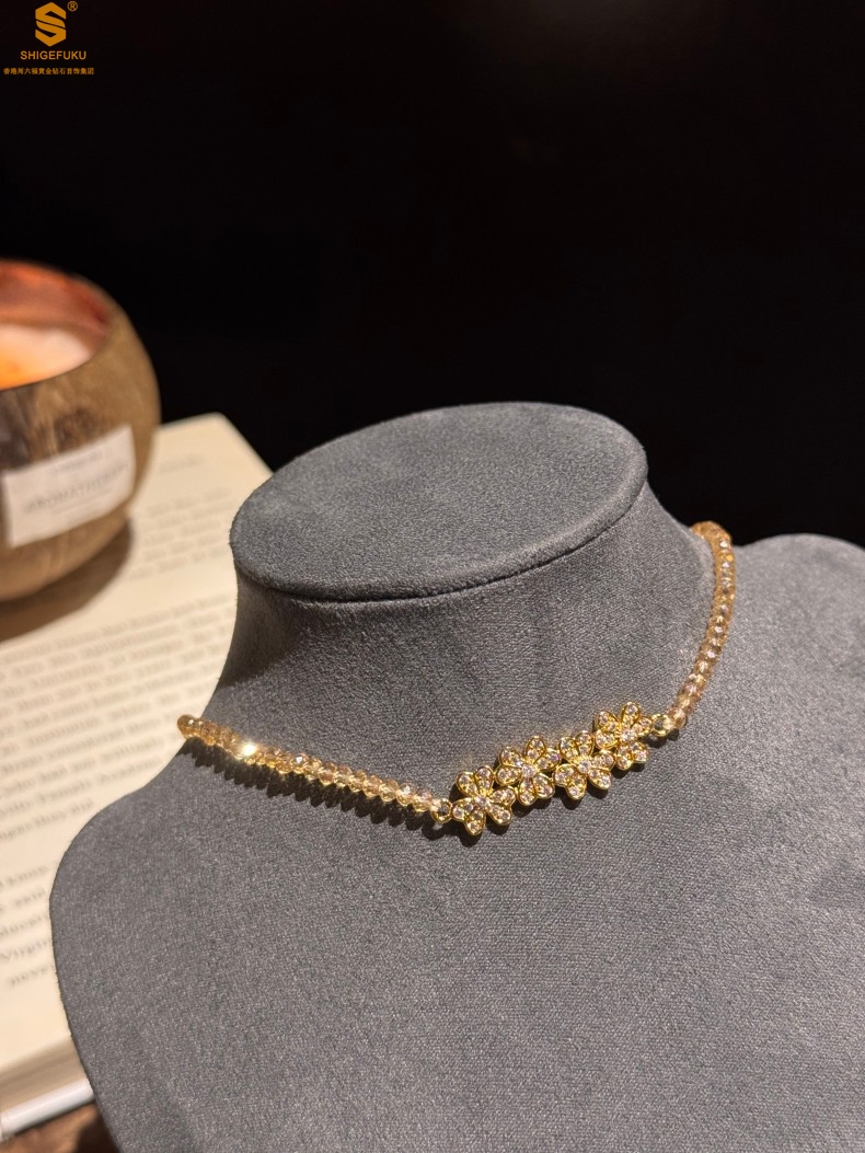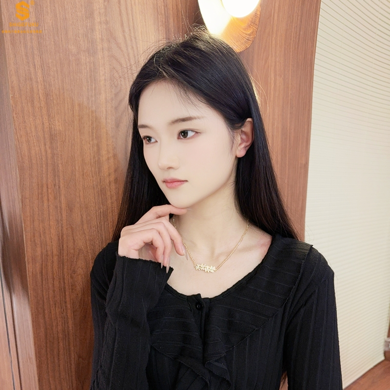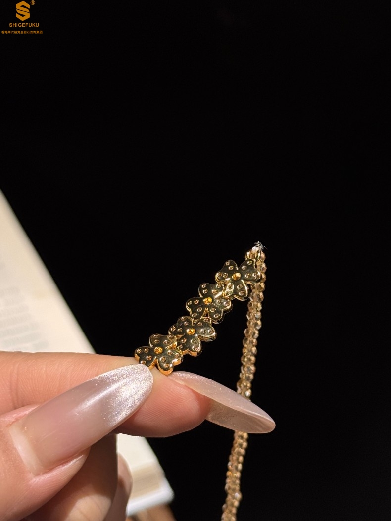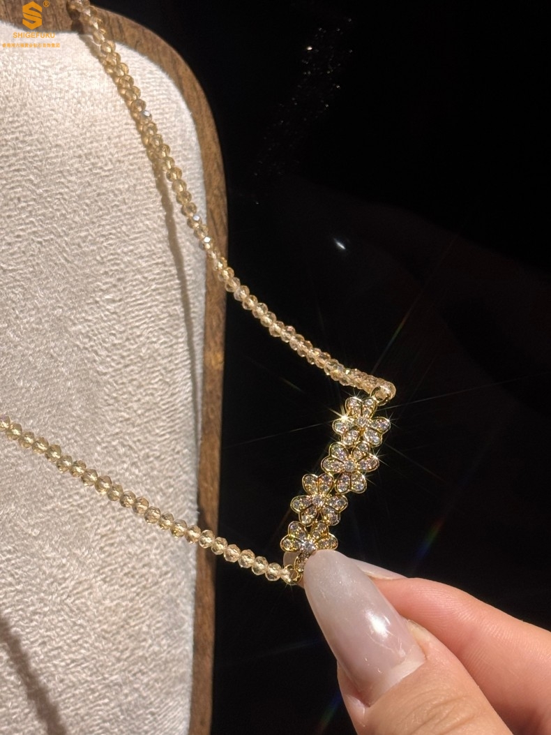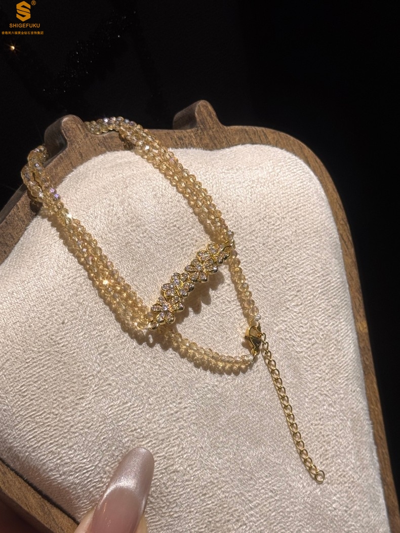 【品名】幸福连连满钻三叶草招财晶项链