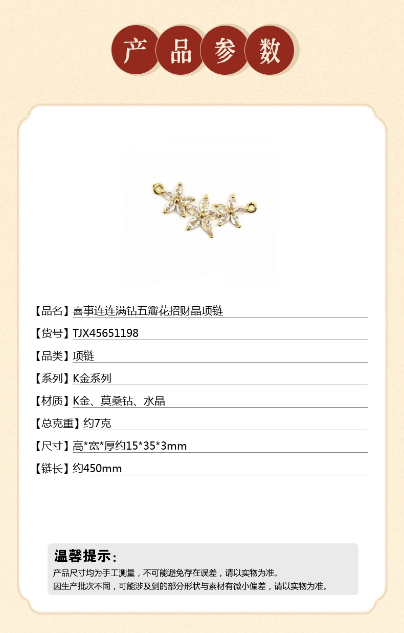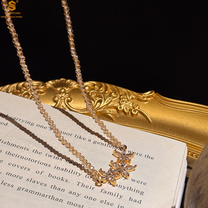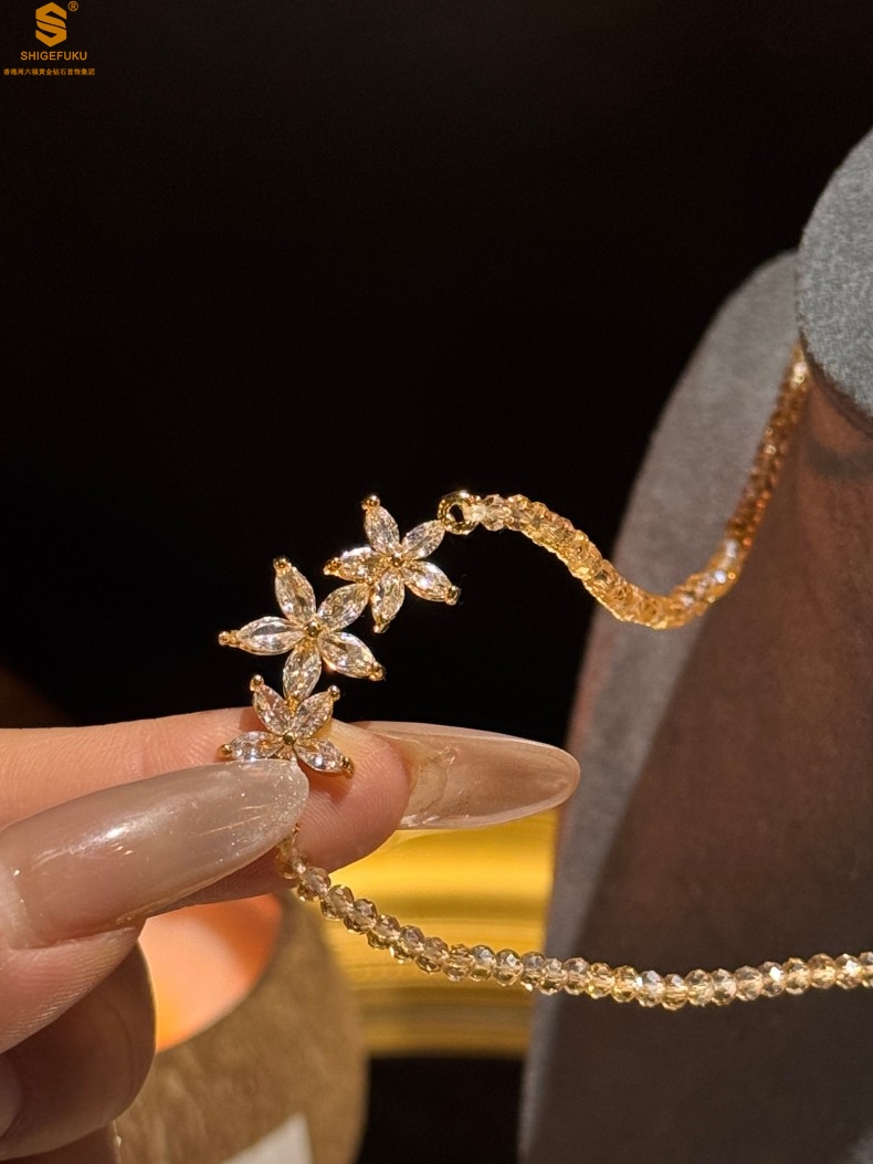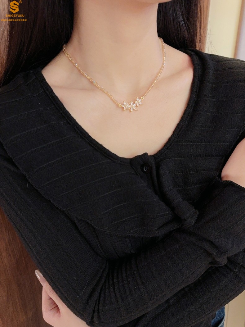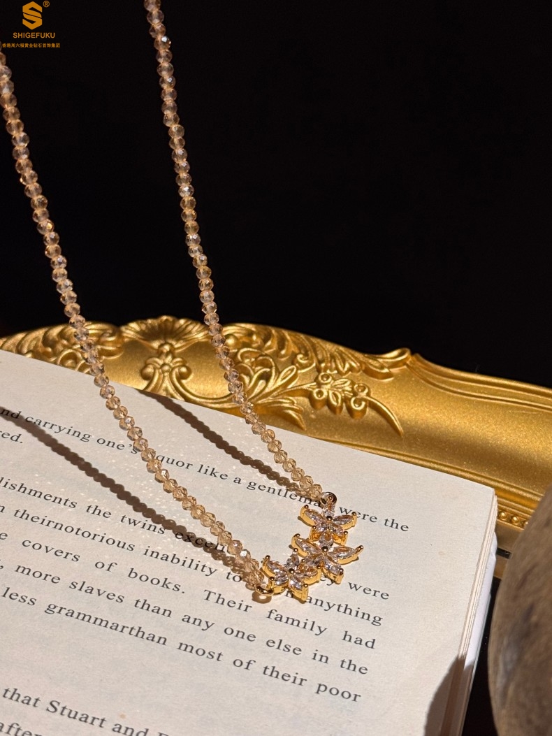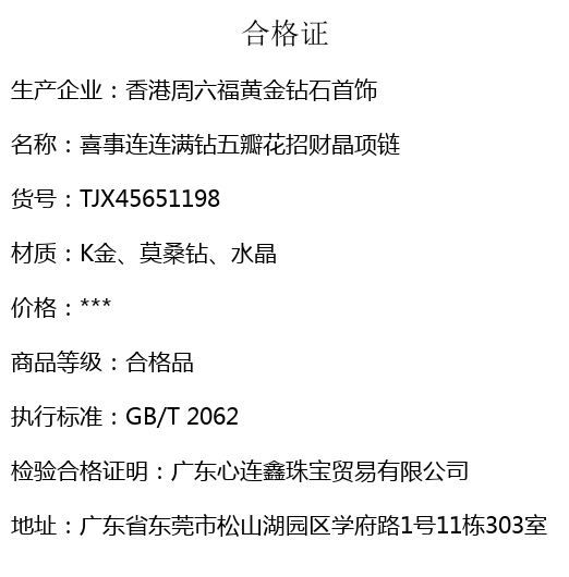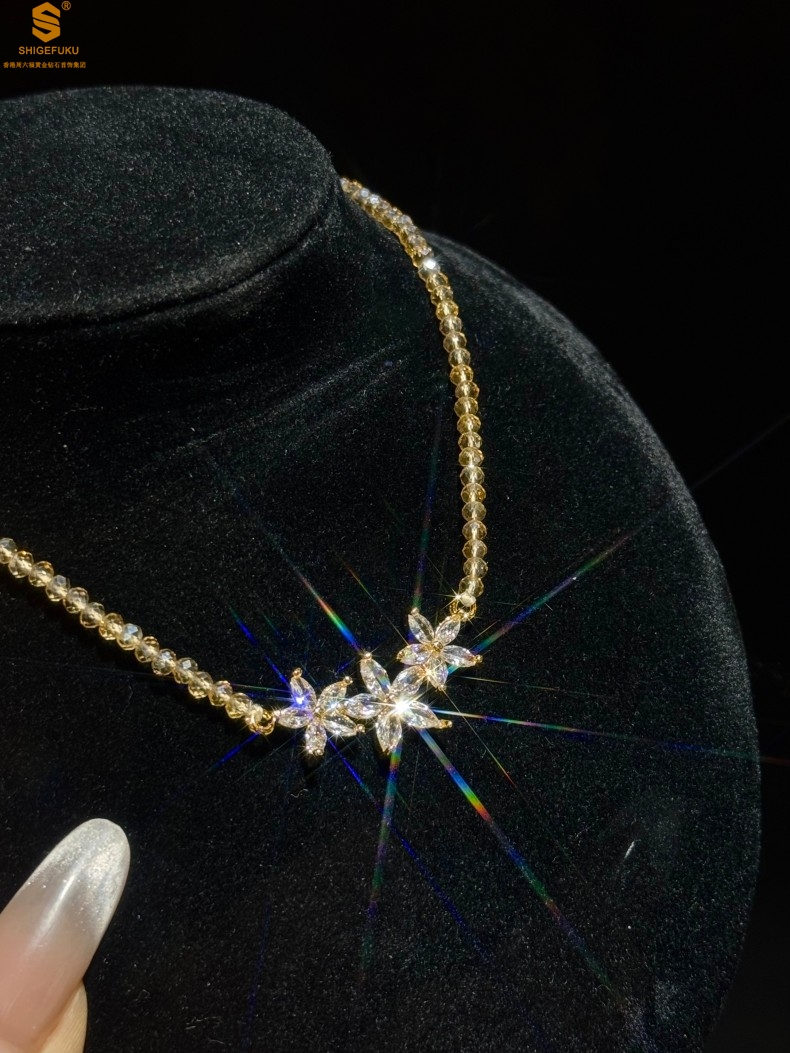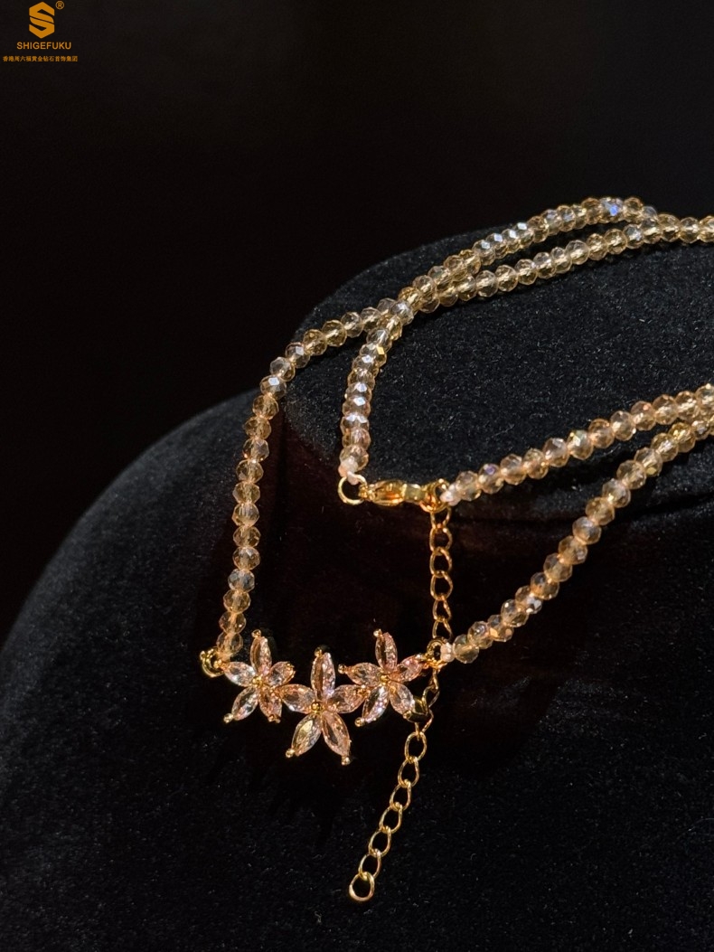 【品名】喜事连连满钻五瓣花招财晶项链