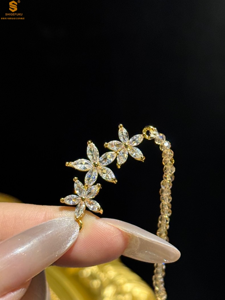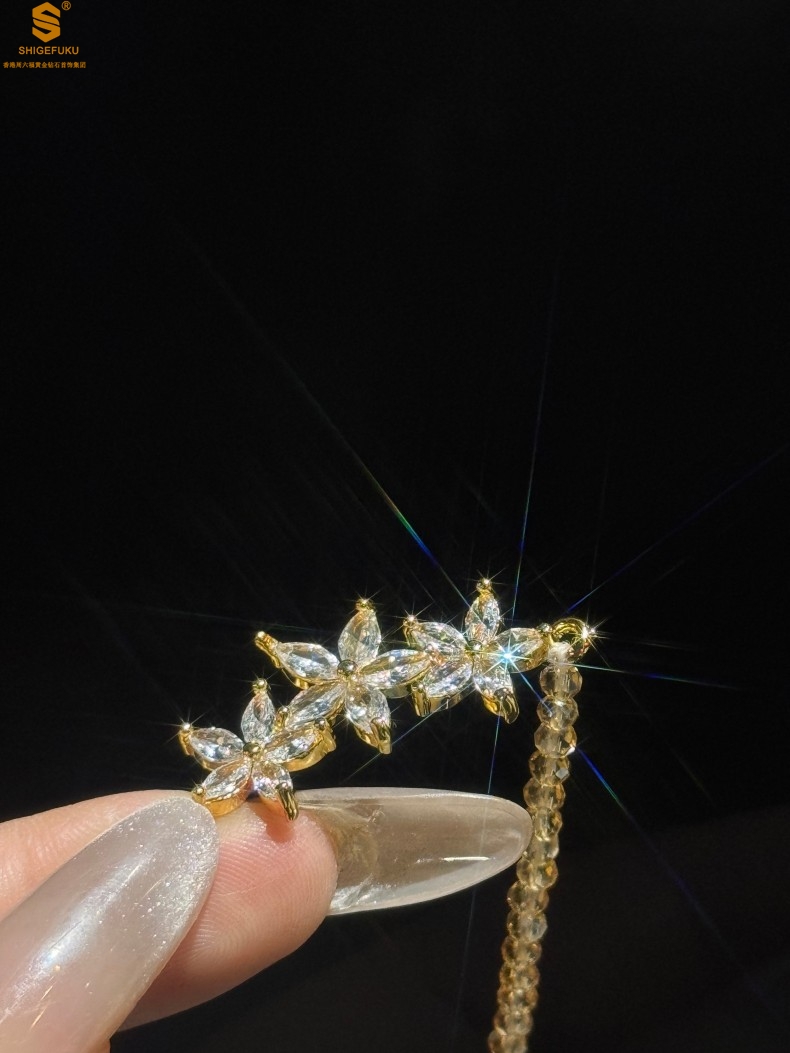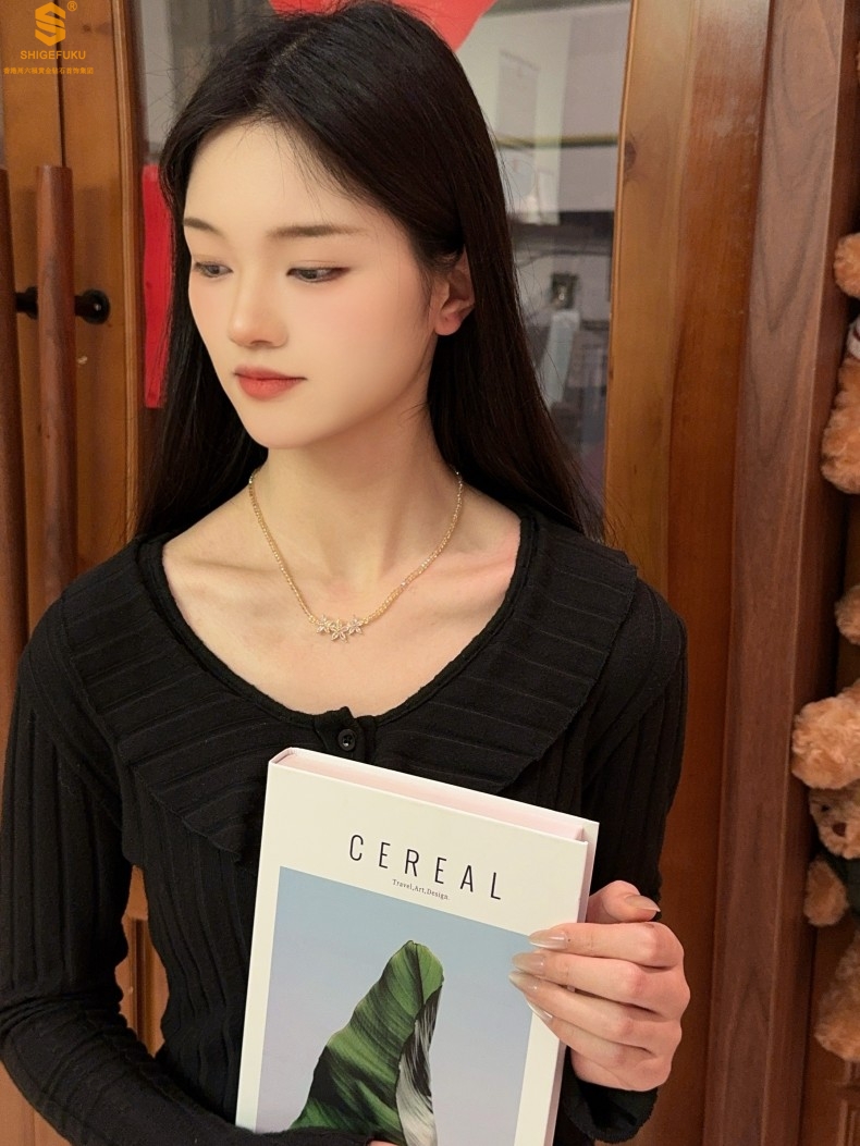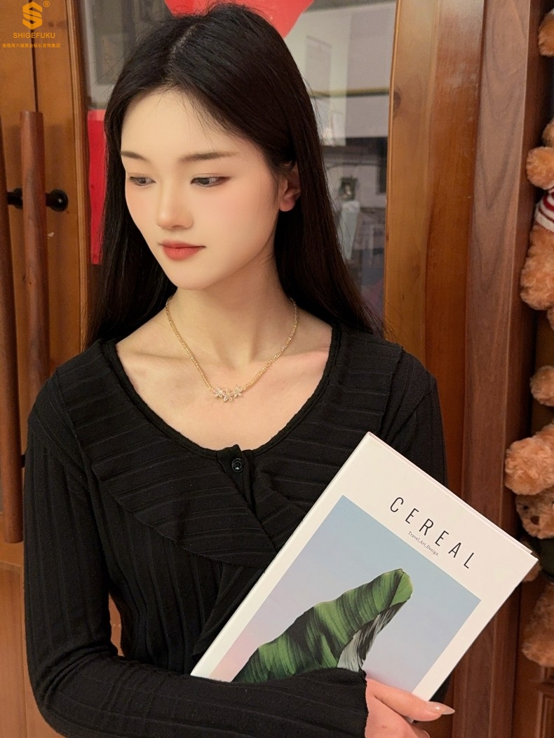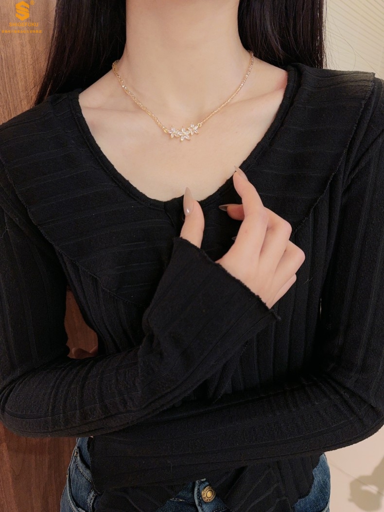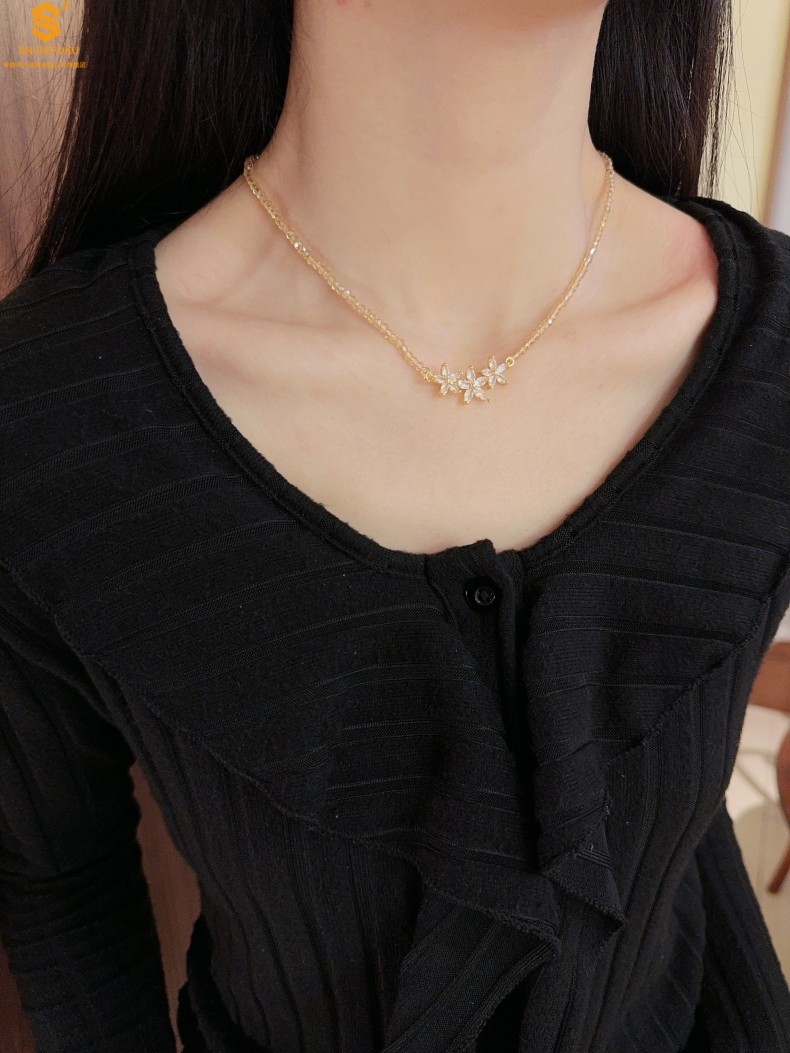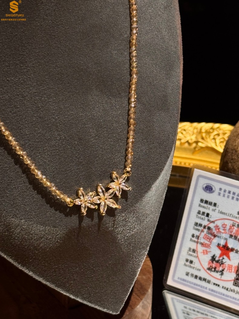 【品名】喜事连连满钻五瓣花招财晶项链