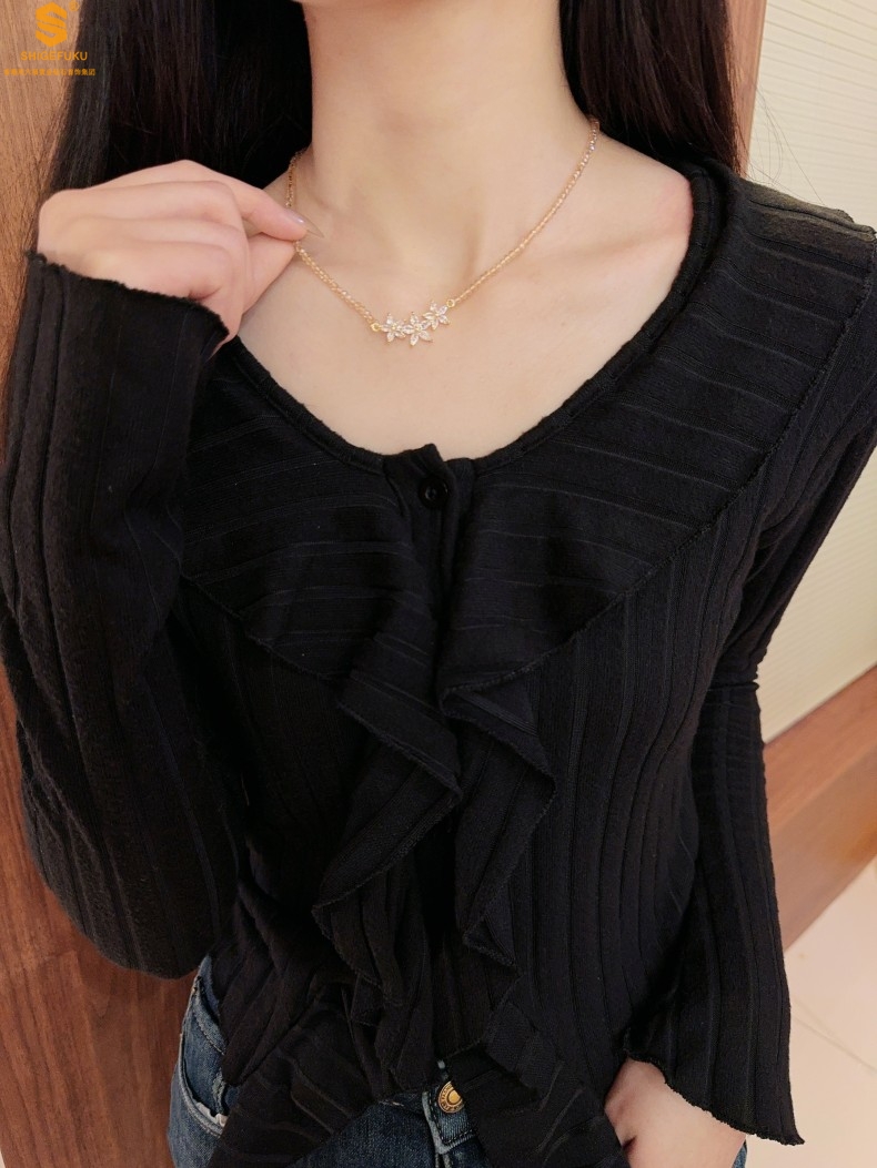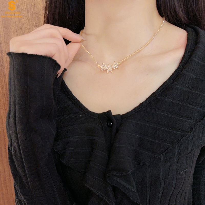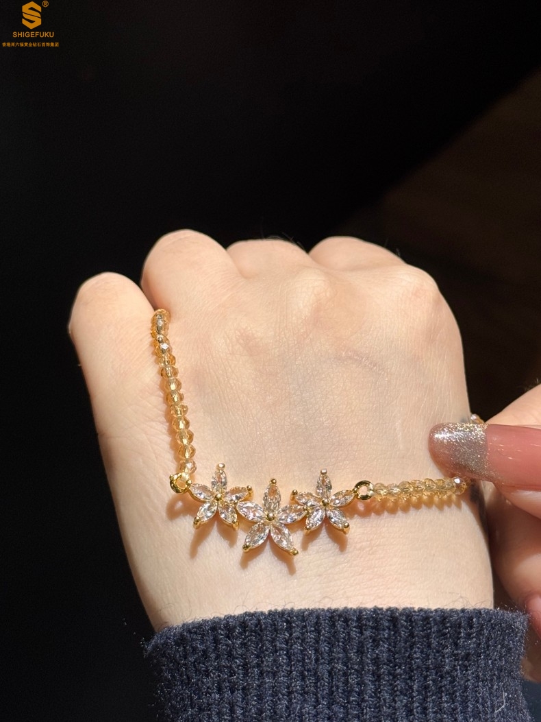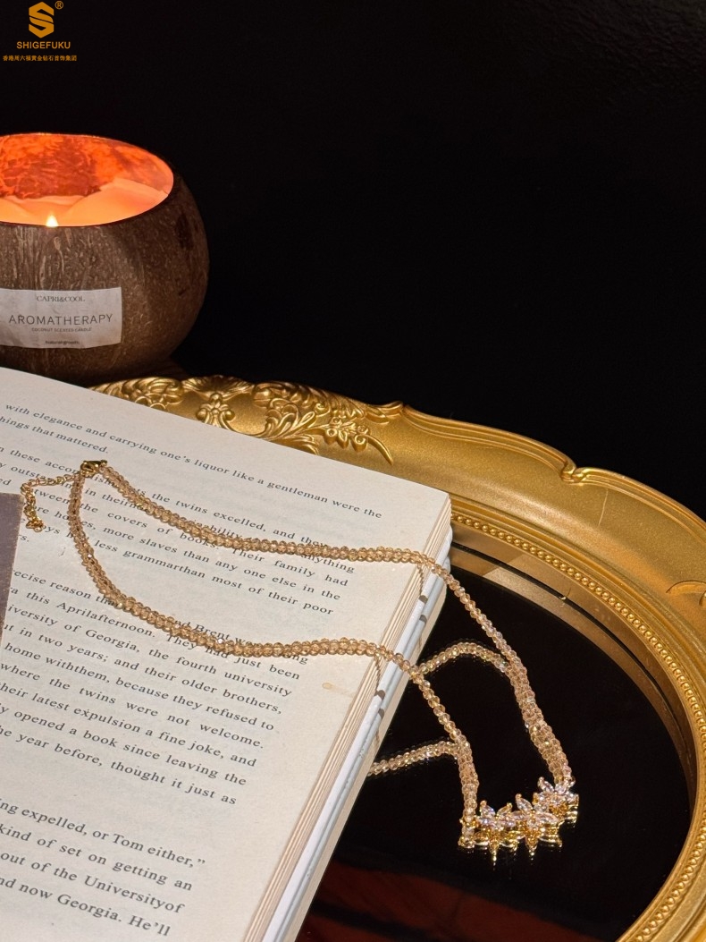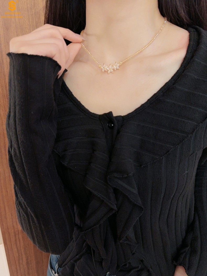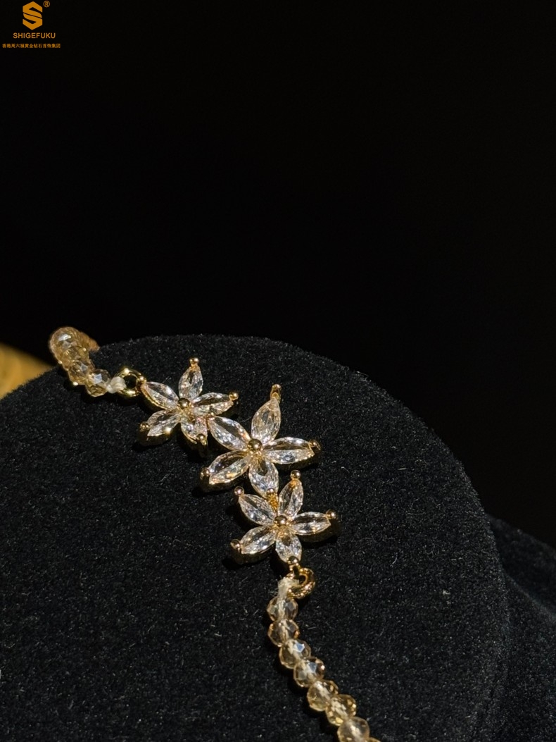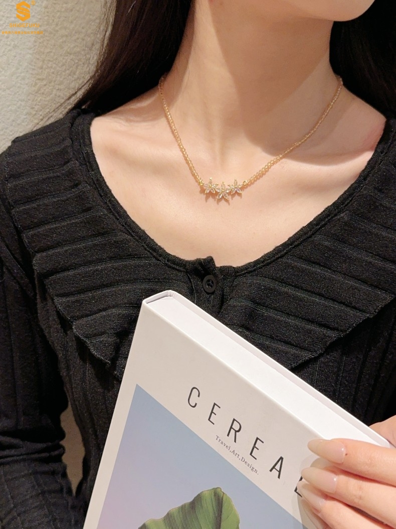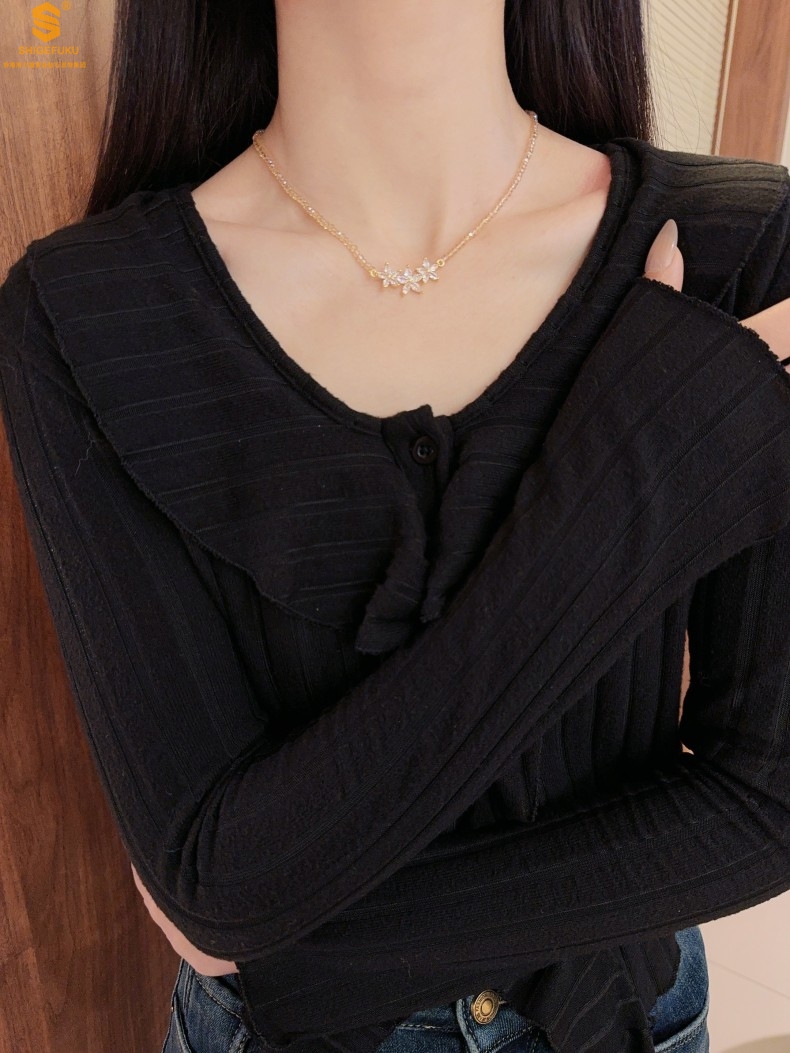 【品名】喜事连连满钻五瓣花招财晶项链