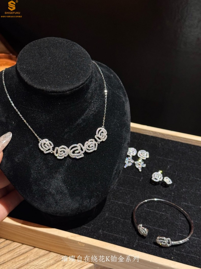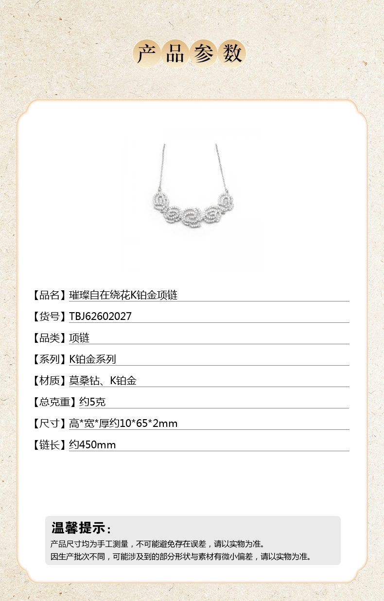 【品名】璀璨自在绕花K铂金项链