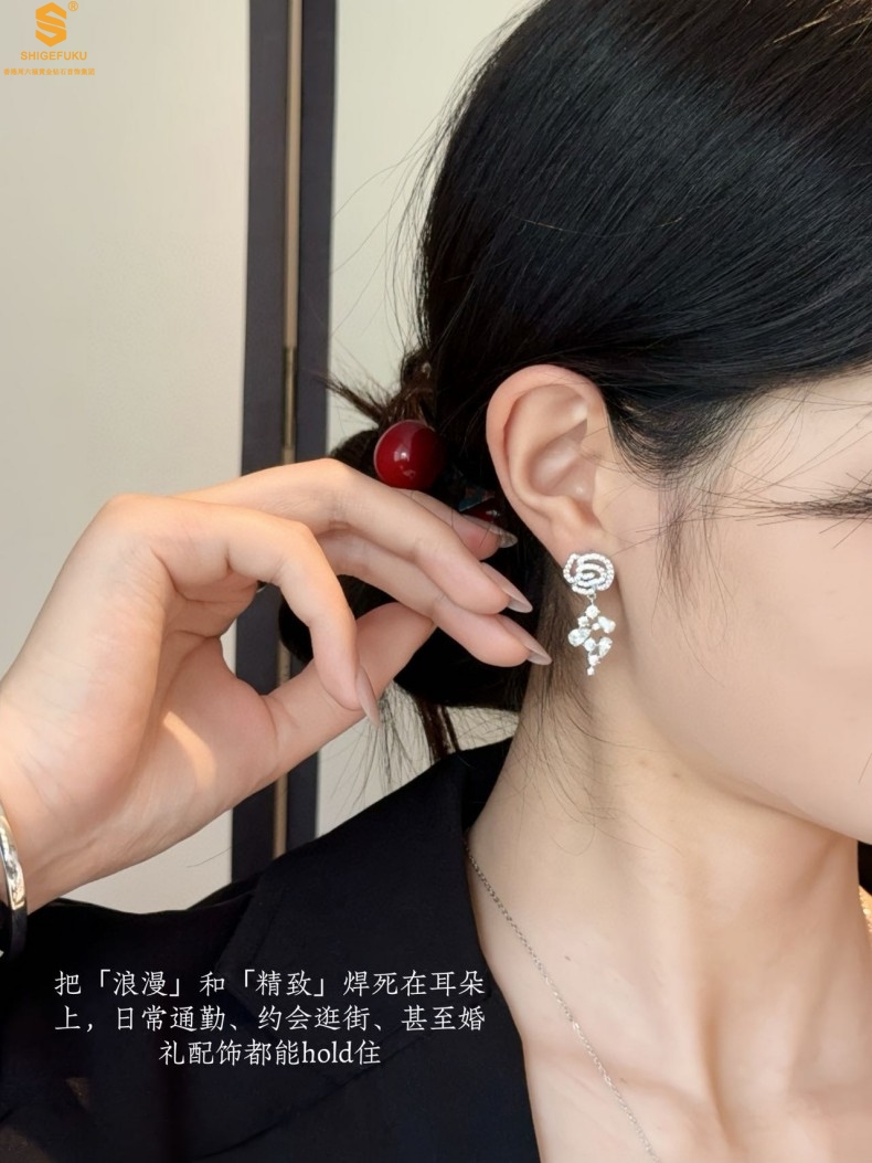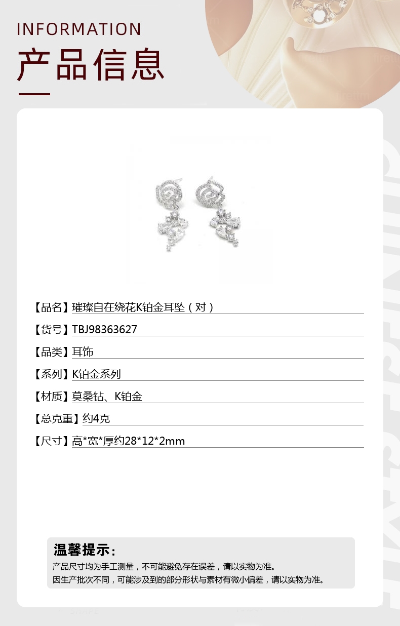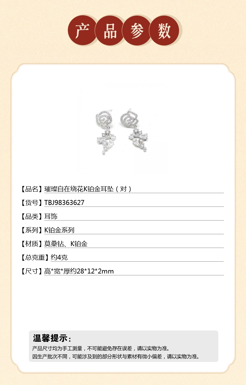 【品名】璀璨自在绕花K铂金耳坠(对)