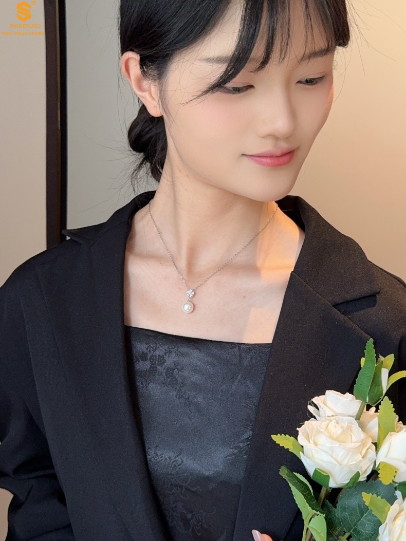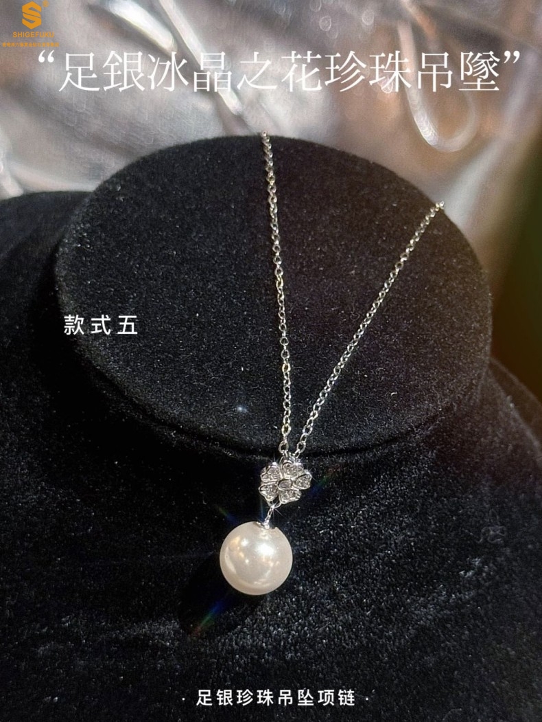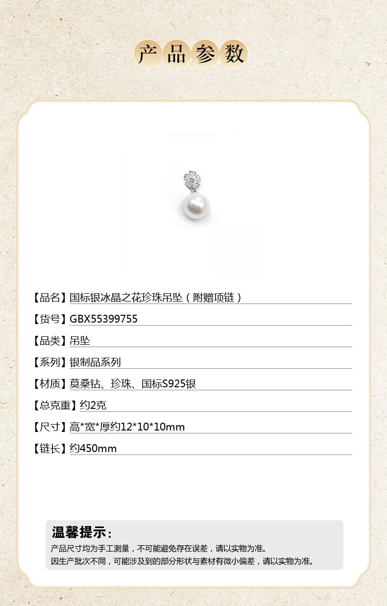 【品名】国标银冰晶之花珍珠吊坠(附赠项链)