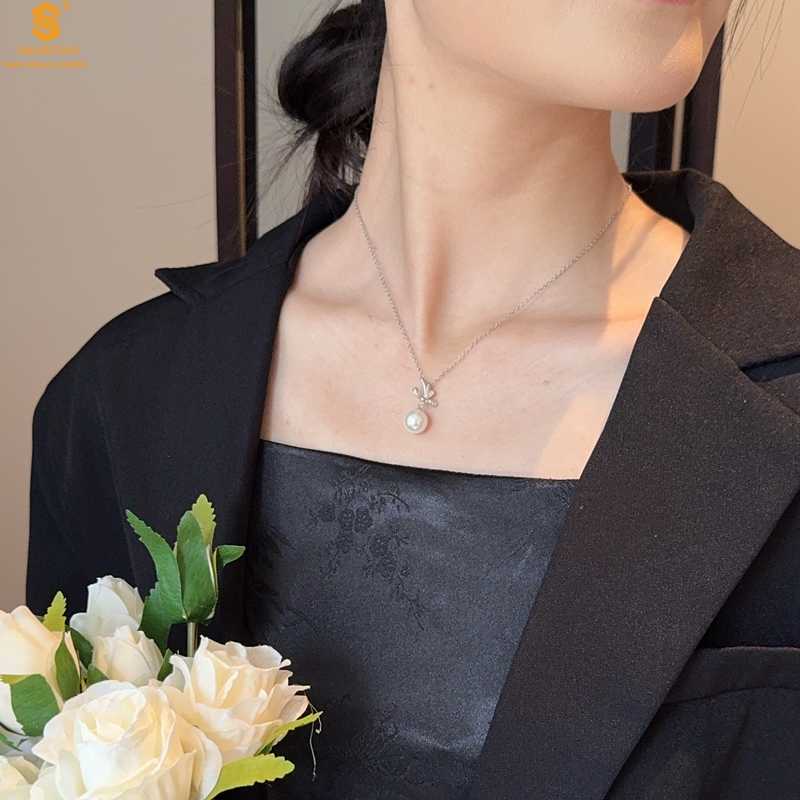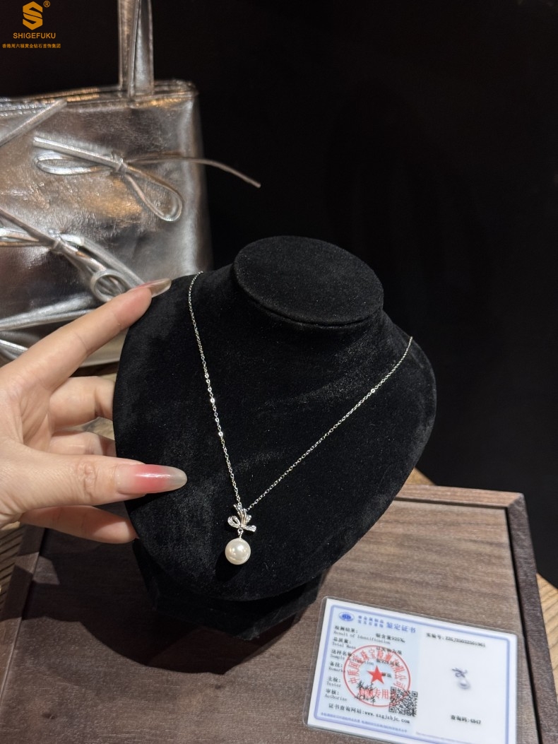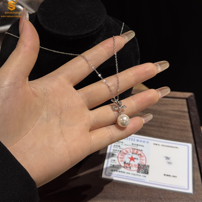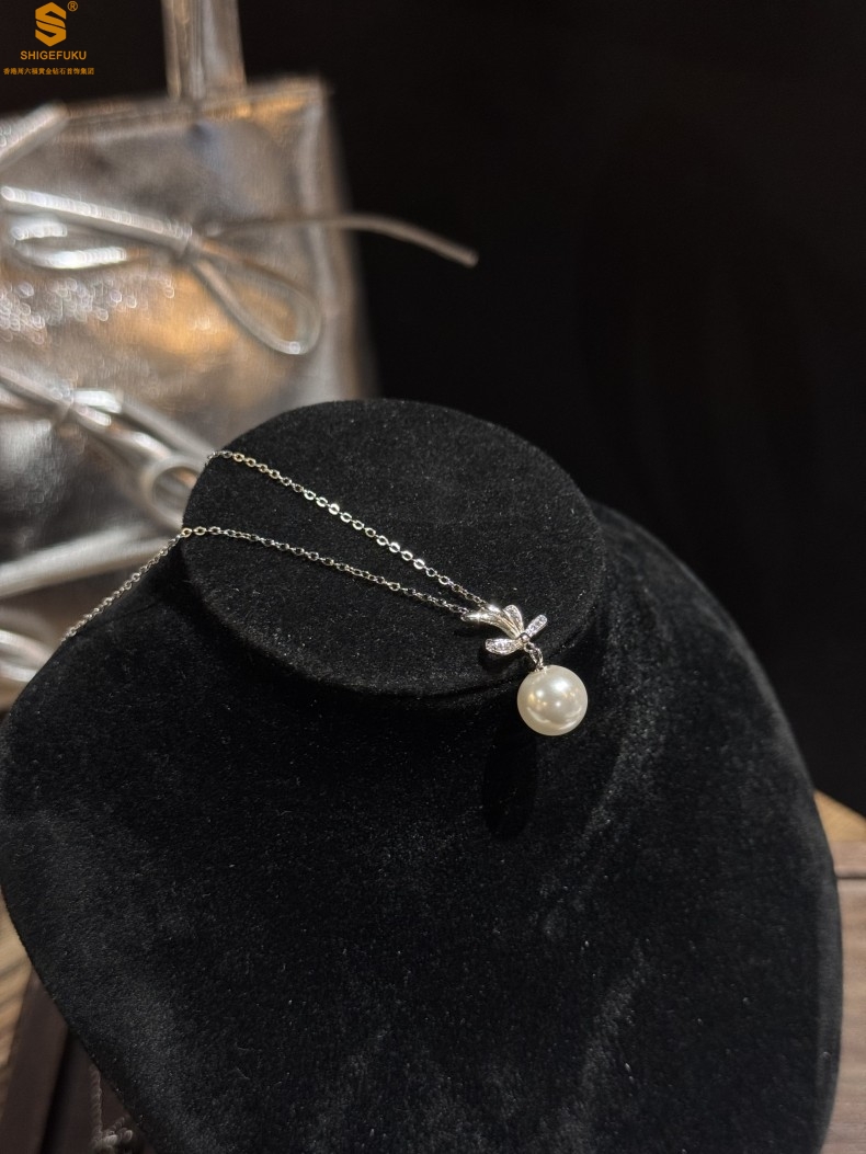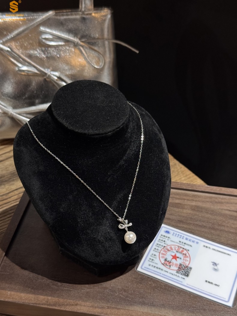 【品名】国标银优雅蝴蝶结珍珠吊坠(附赠项链)