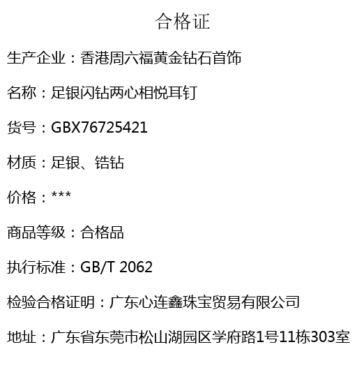 【套装包含】首饰+绒布袋+国检证书(赠品没有)+质保单+价签