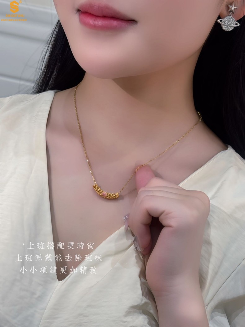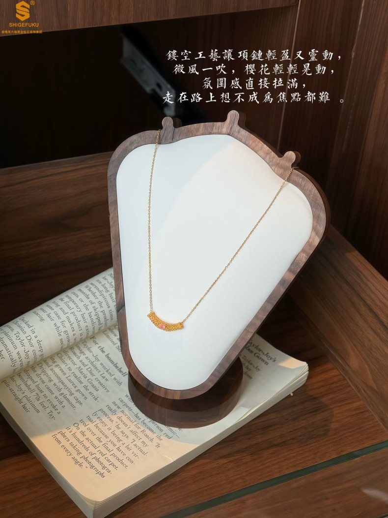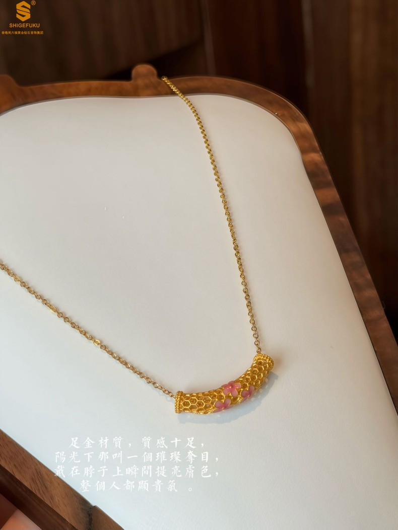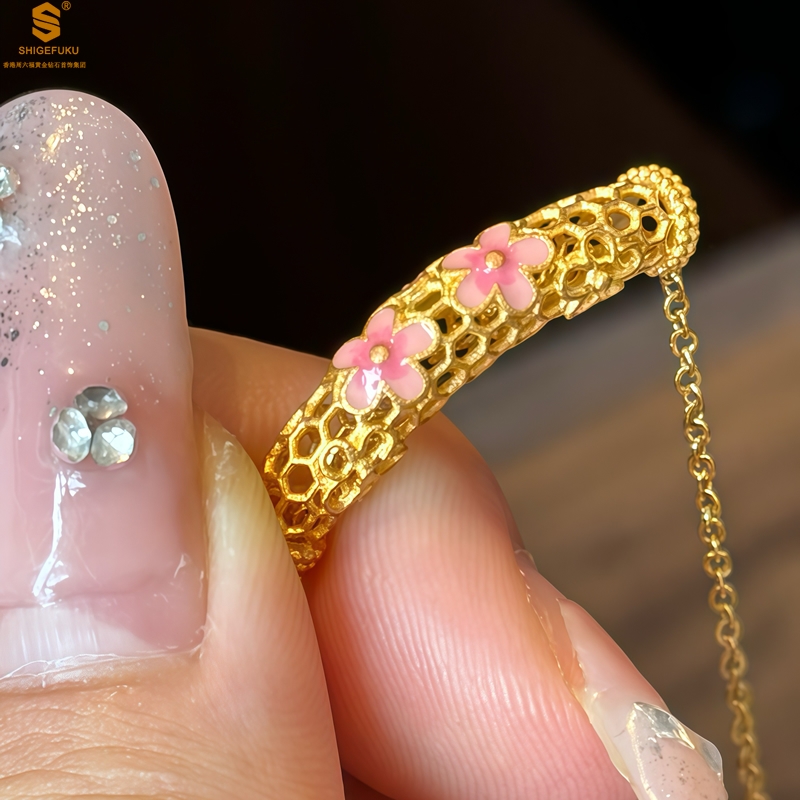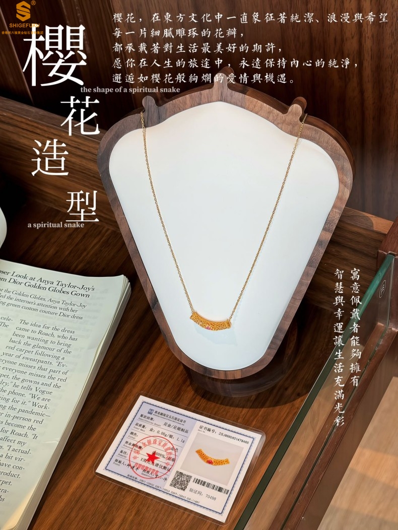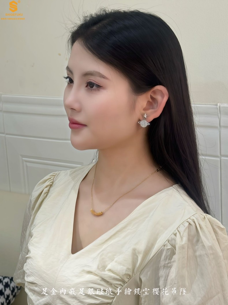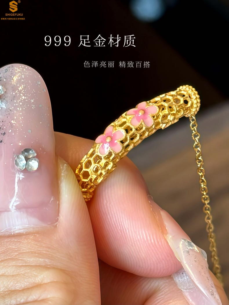 【品名】足金内嵌足银珐琅手绘镂空樱花吊坠(附赠K金项链)