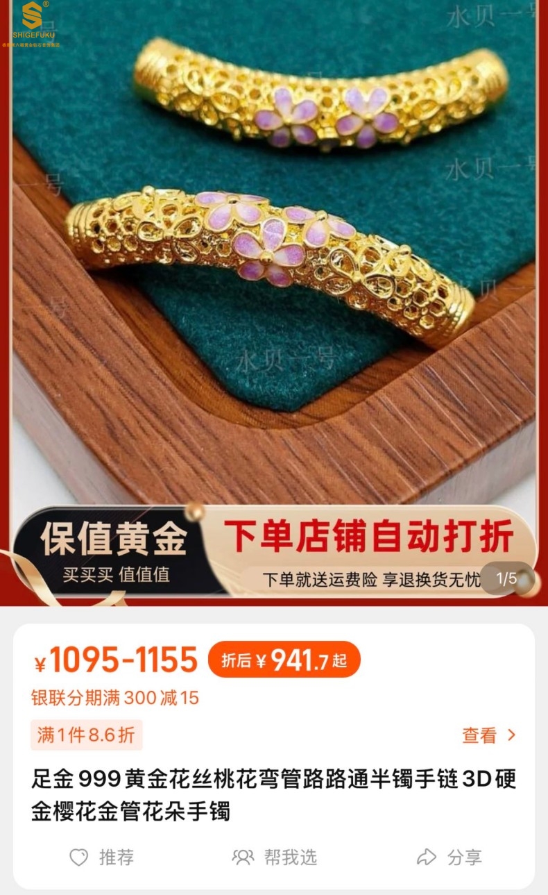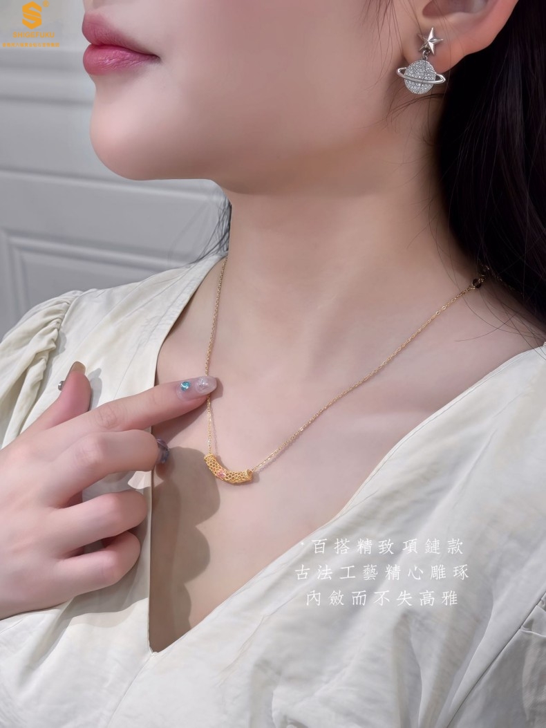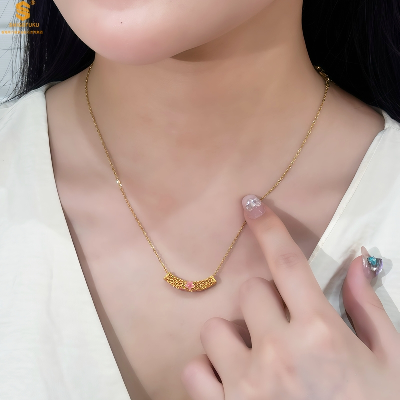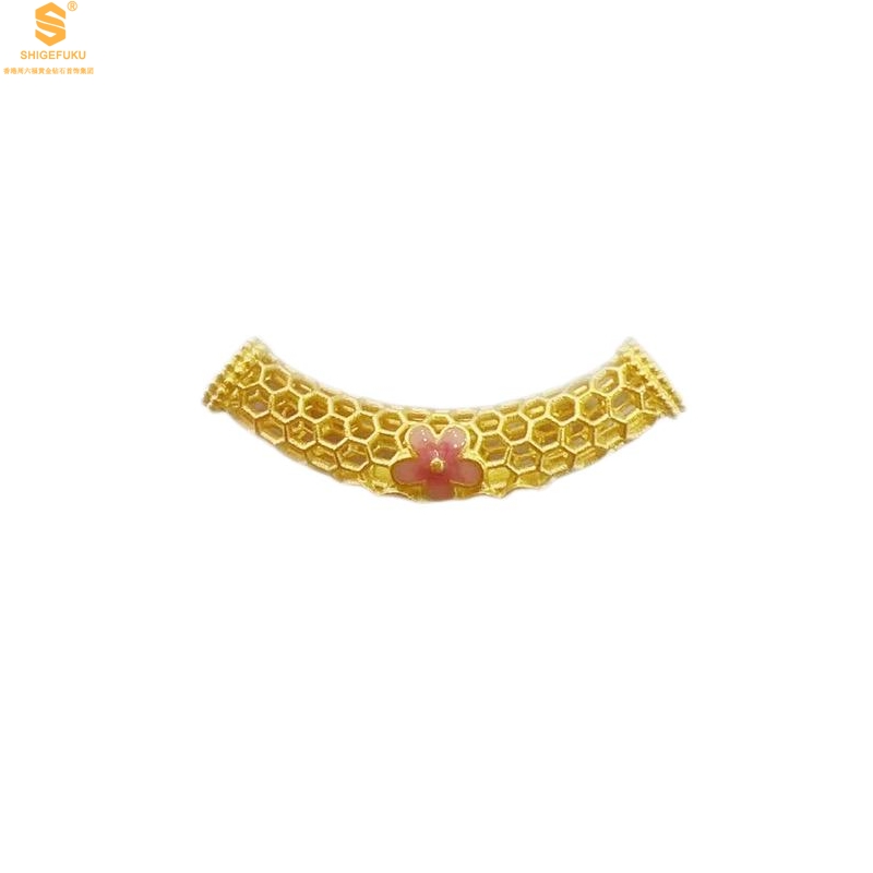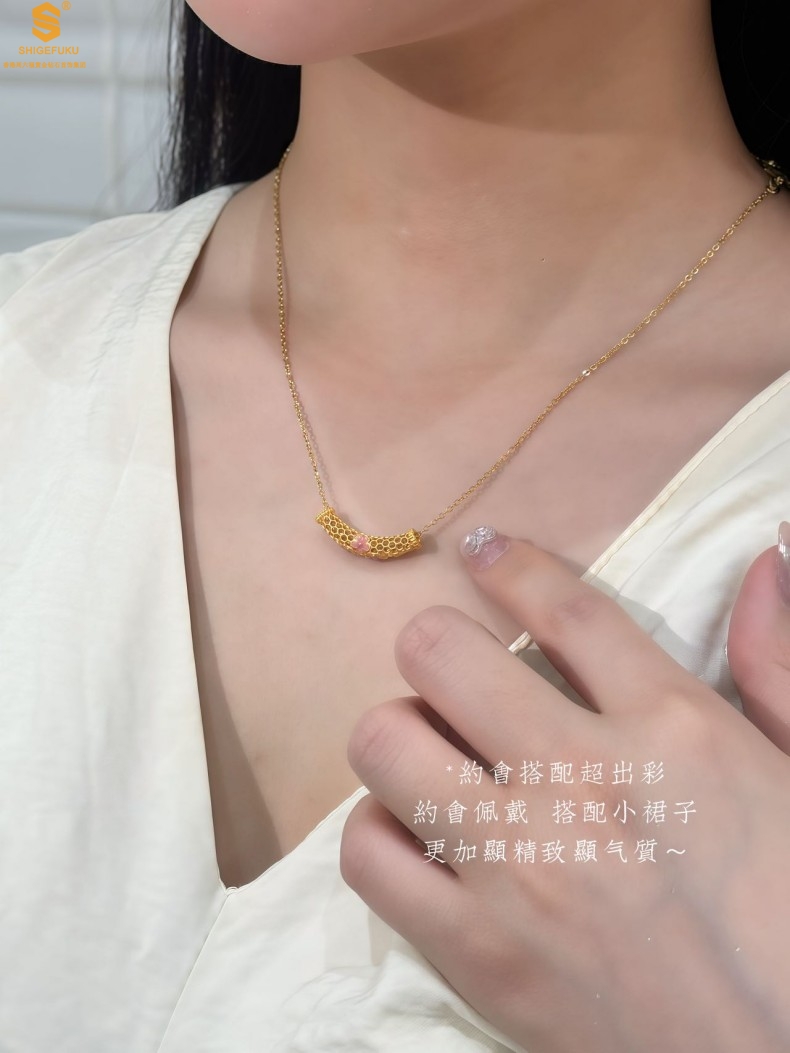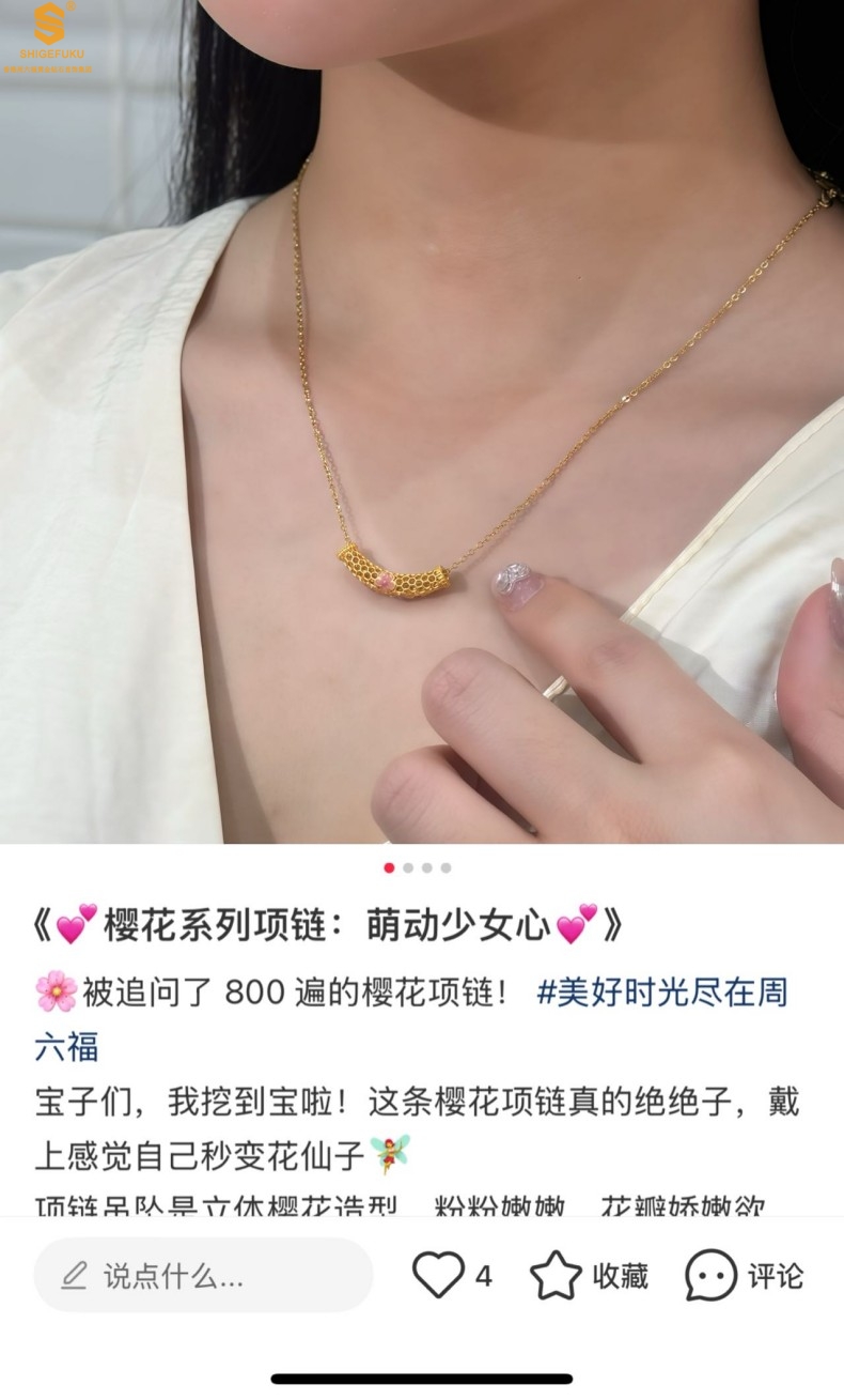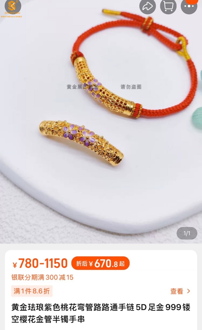 【品名】足金内嵌足银珐琅手绘镂空樱花吊坠(附赠K金项链)