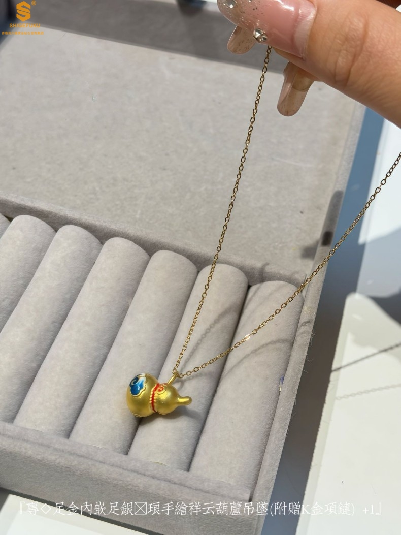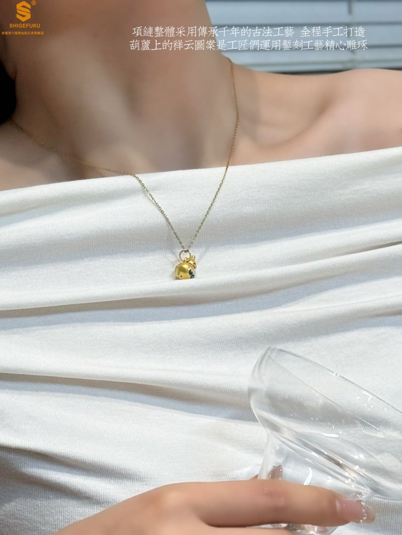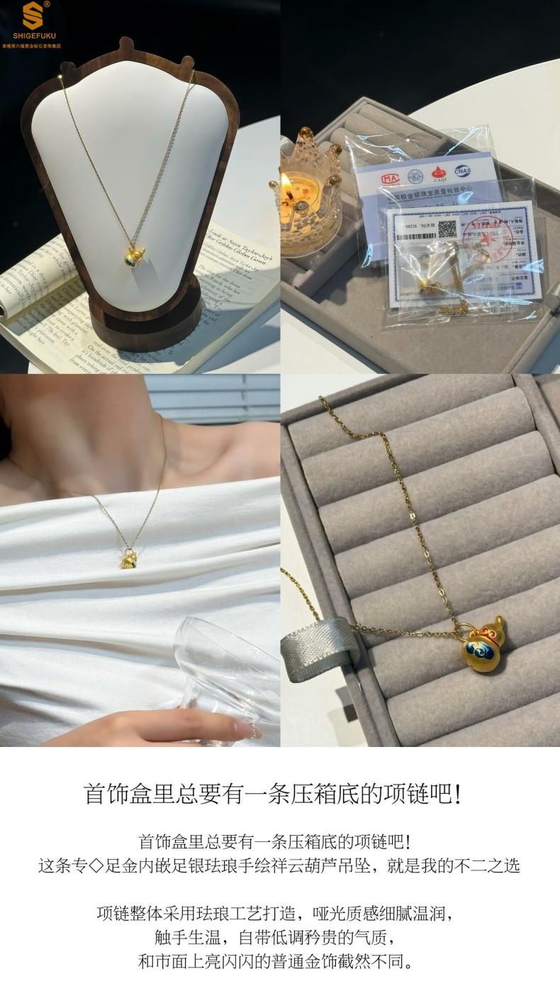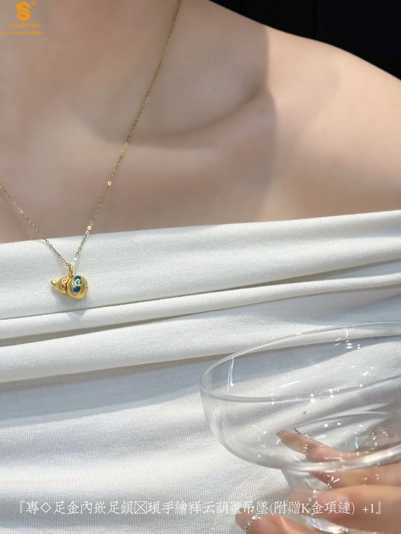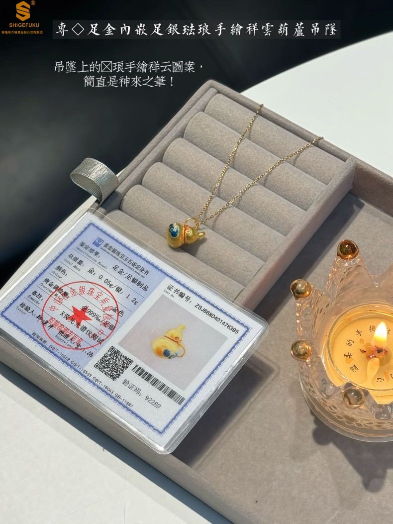 【品名】足金内嵌足银珐琅手绘祥云葫芦吊坠(附赠K金项链)