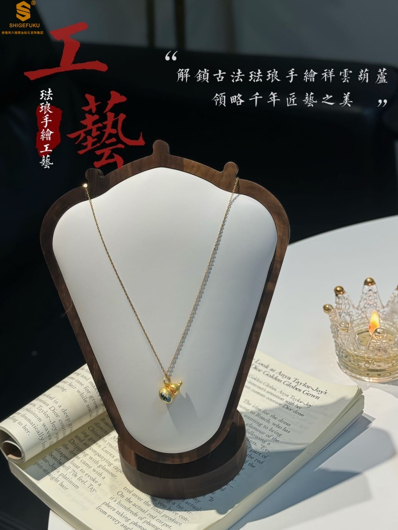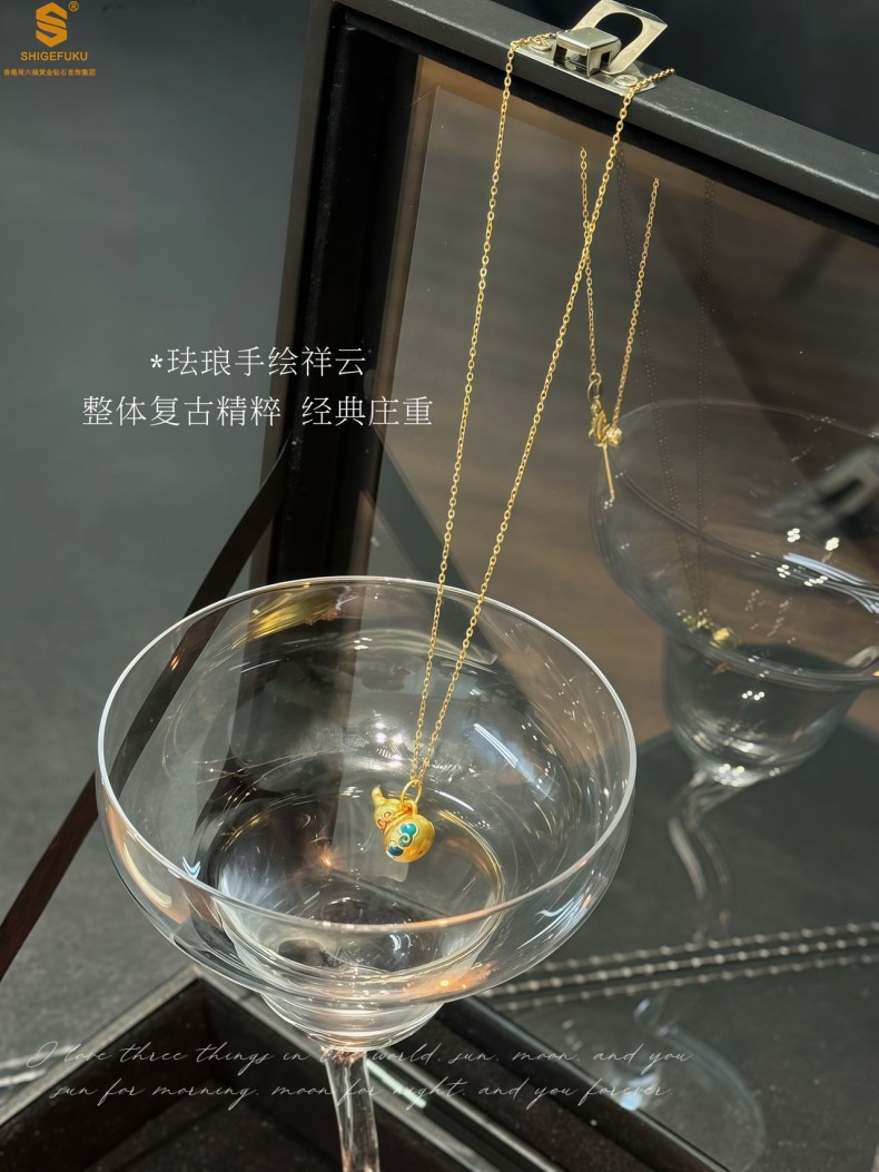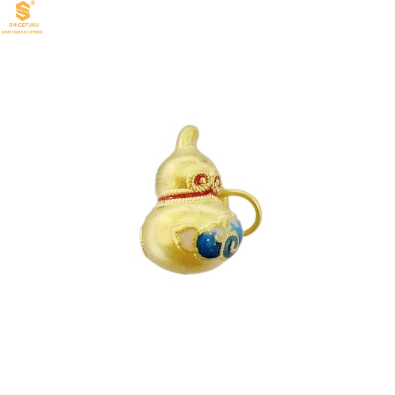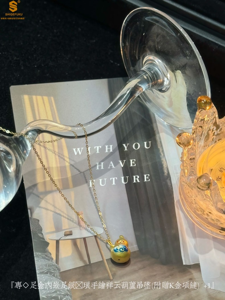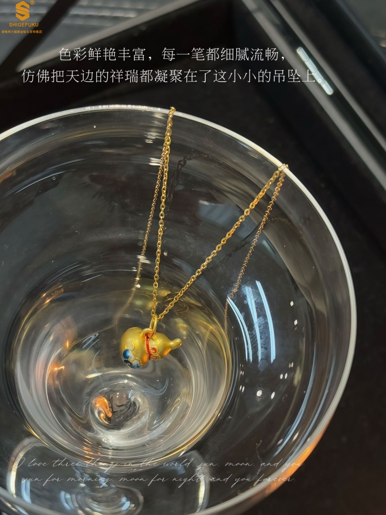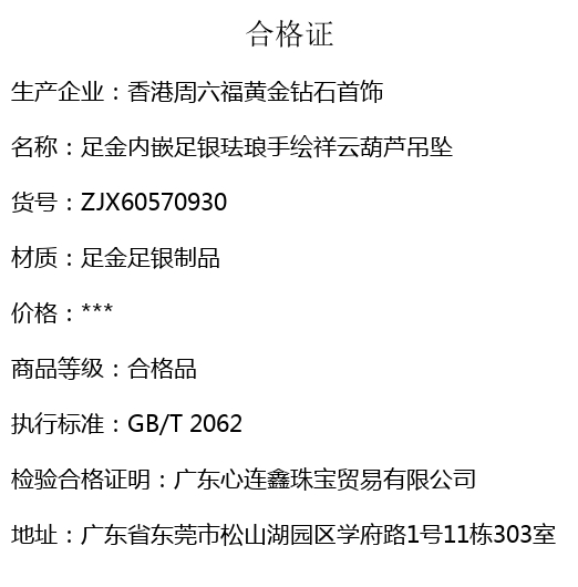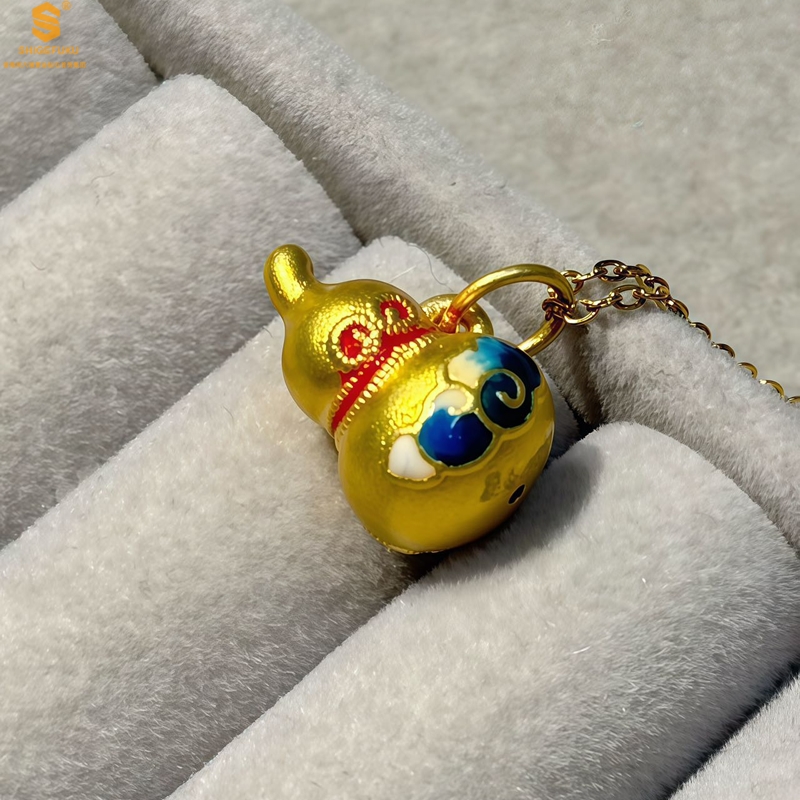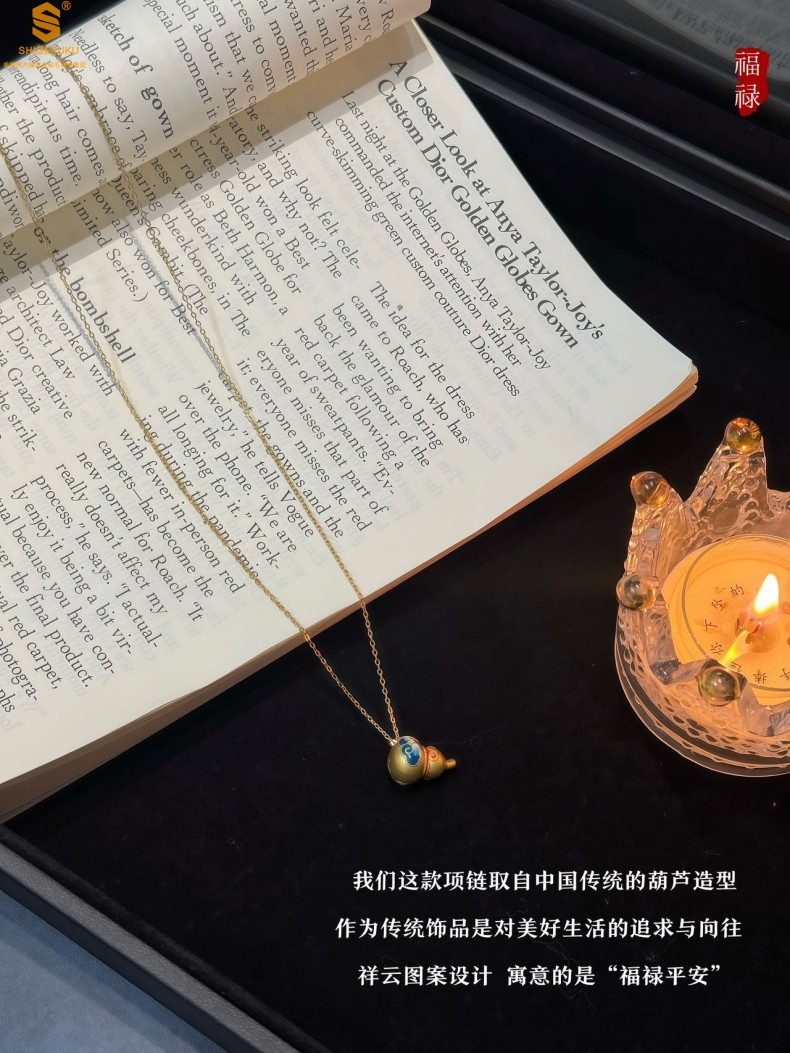 【品名】足金内嵌足银珐琅手绘祥云葫芦吊坠(附赠K金项链)