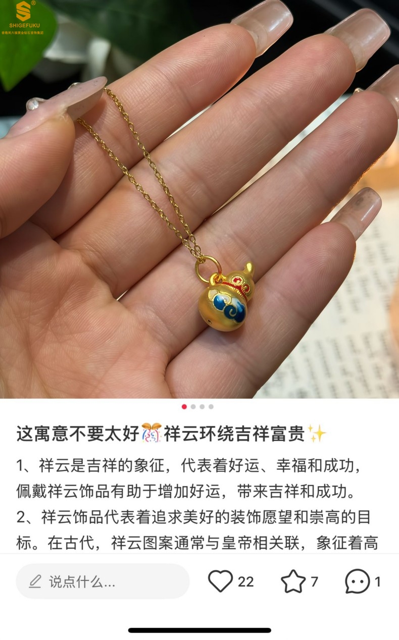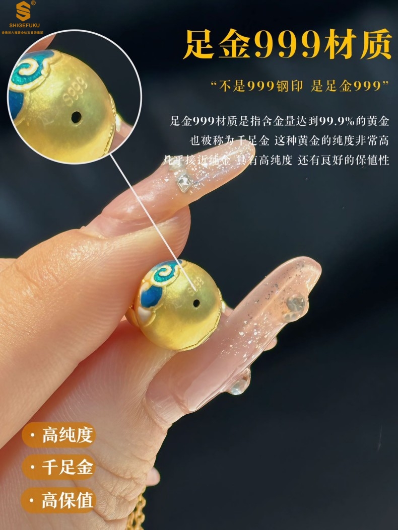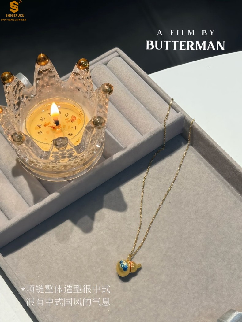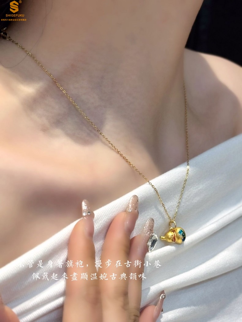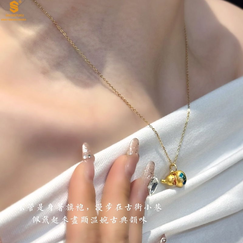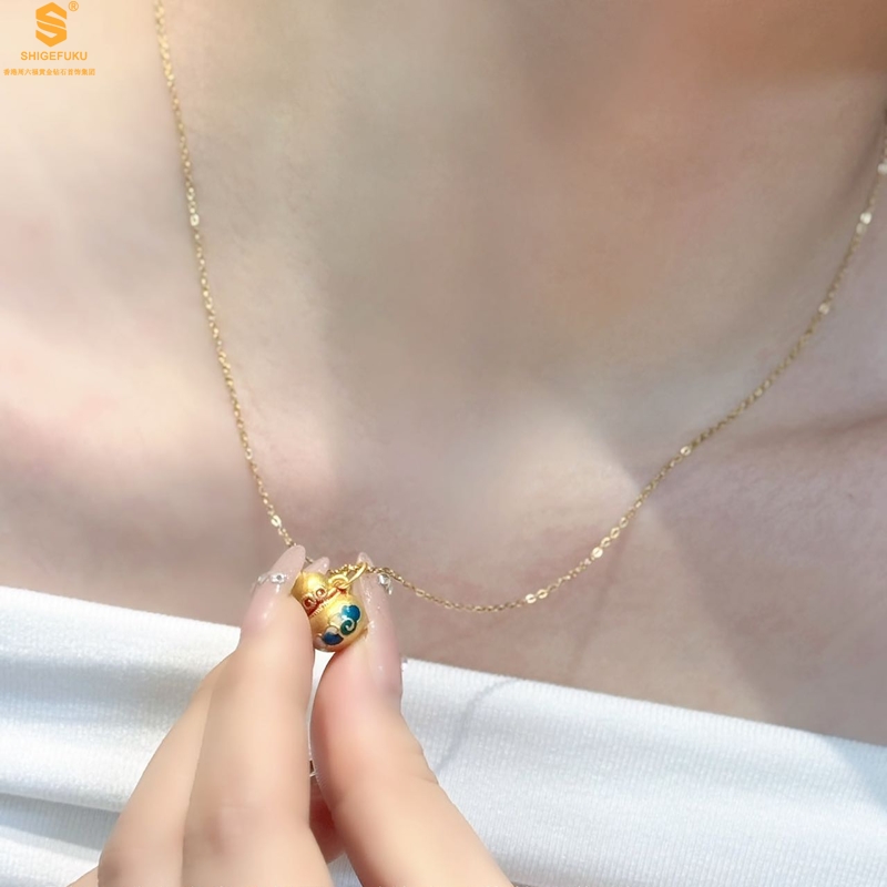 【品名】足金内嵌足银珐琅手绘祥云葫芦吊坠(附赠K金项链)