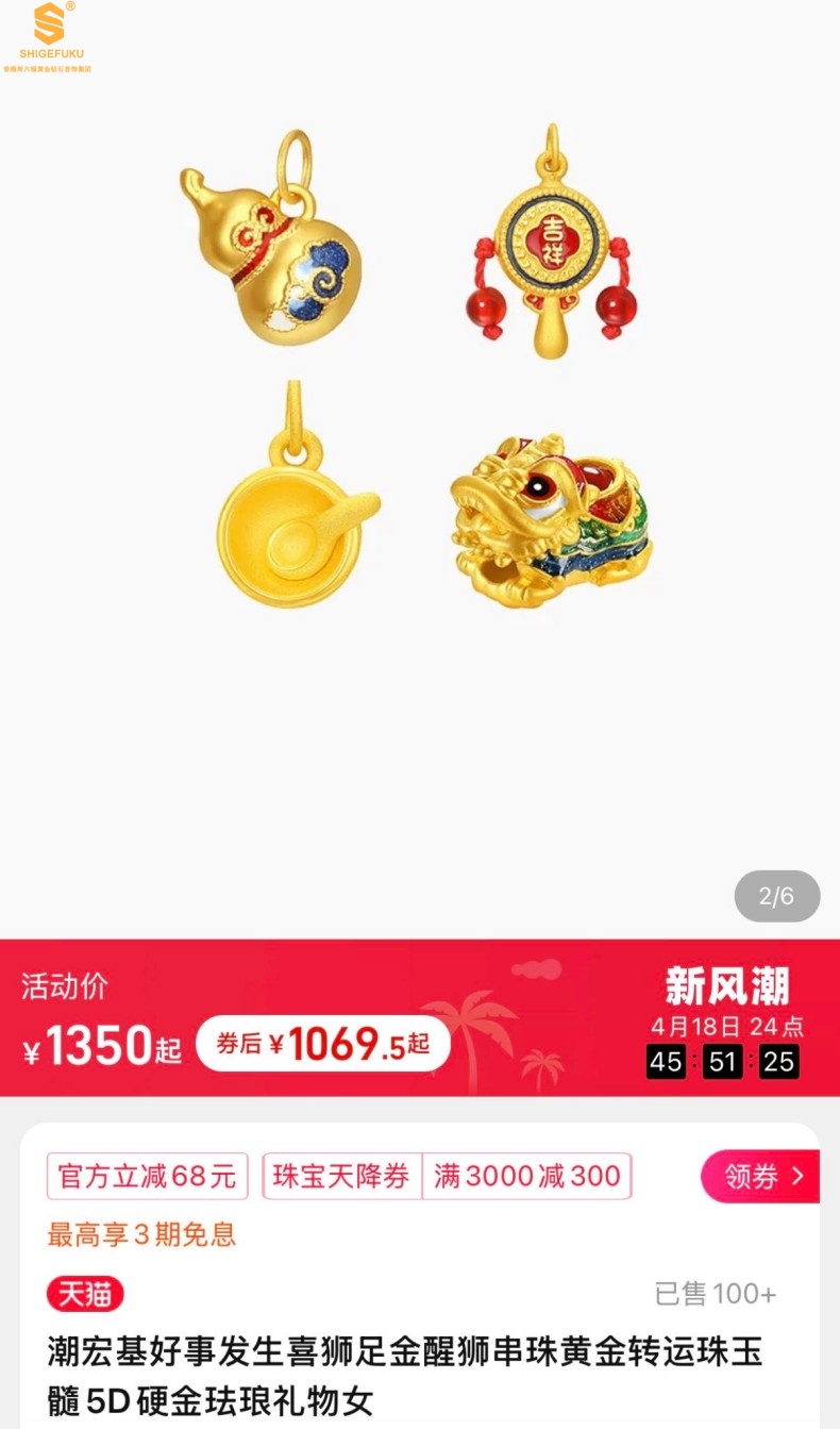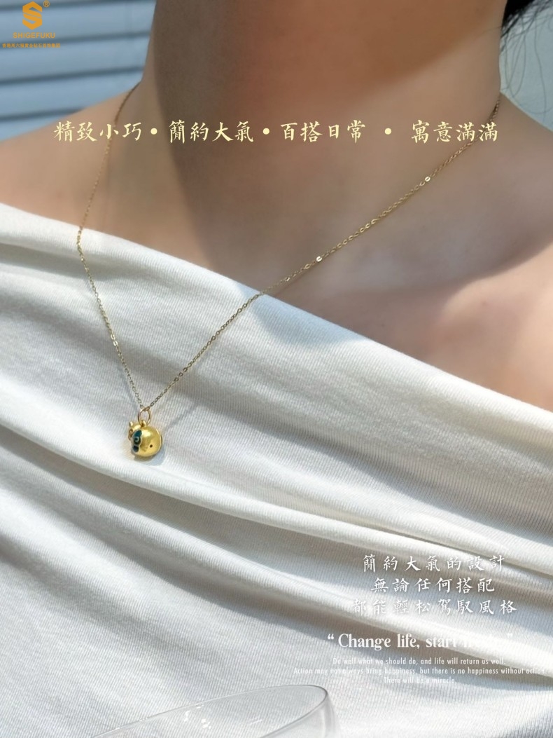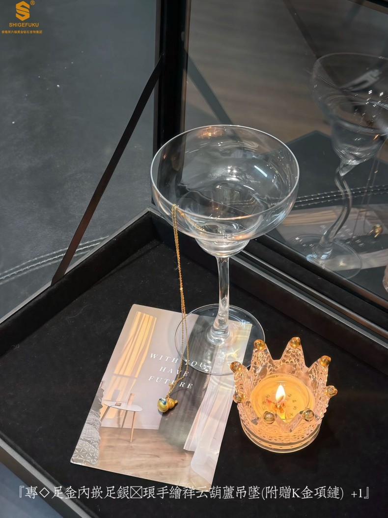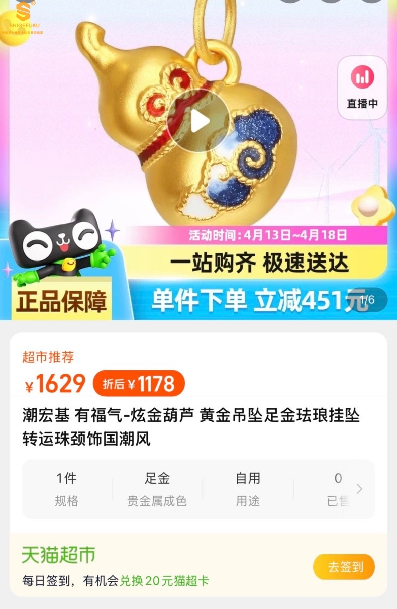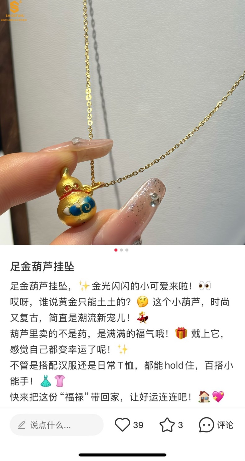 【品名】足金内嵌足银珐琅手绘祥云葫芦吊坠(附赠K金项链)