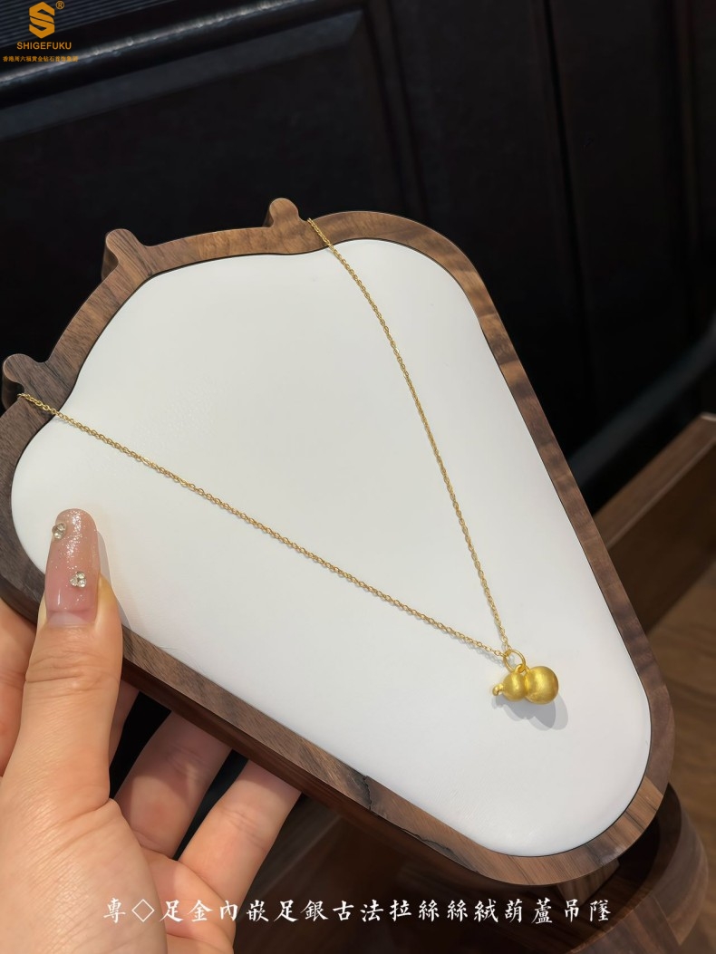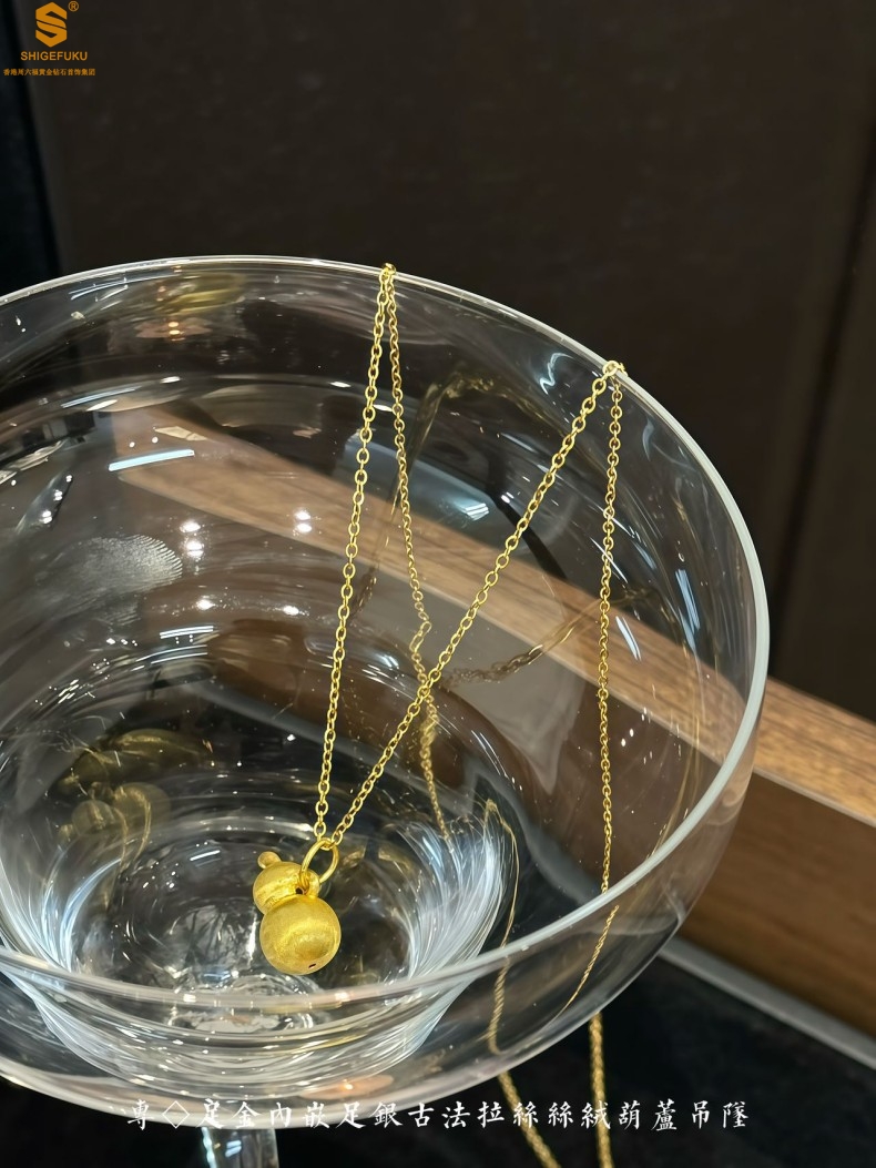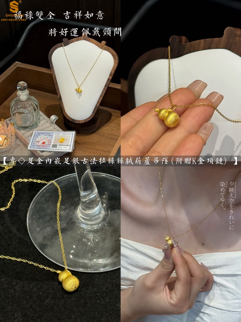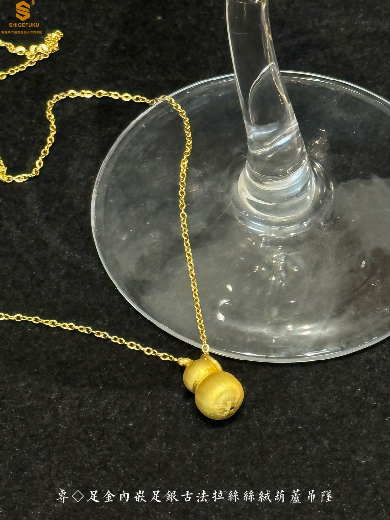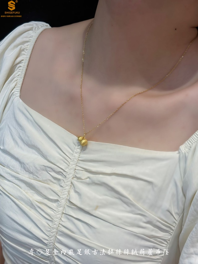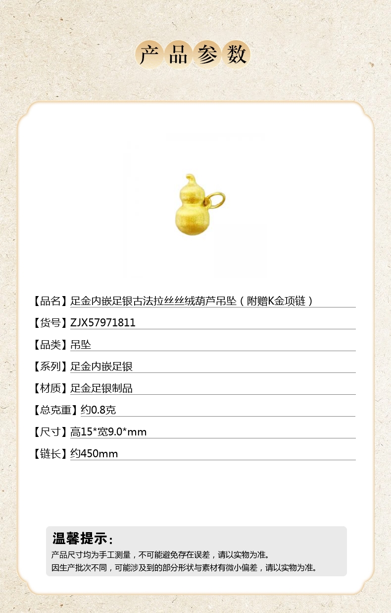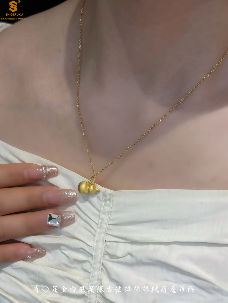 【品名】足金内嵌足银古法拉丝丝绒葫芦吊坠(附赠K金项链)