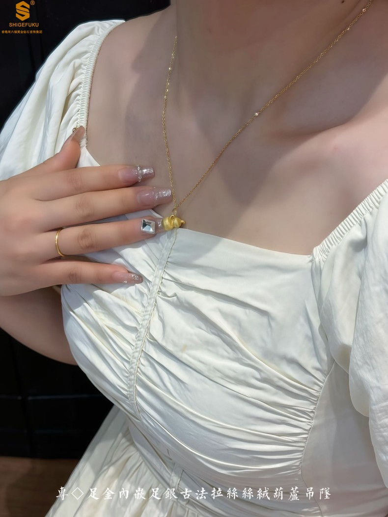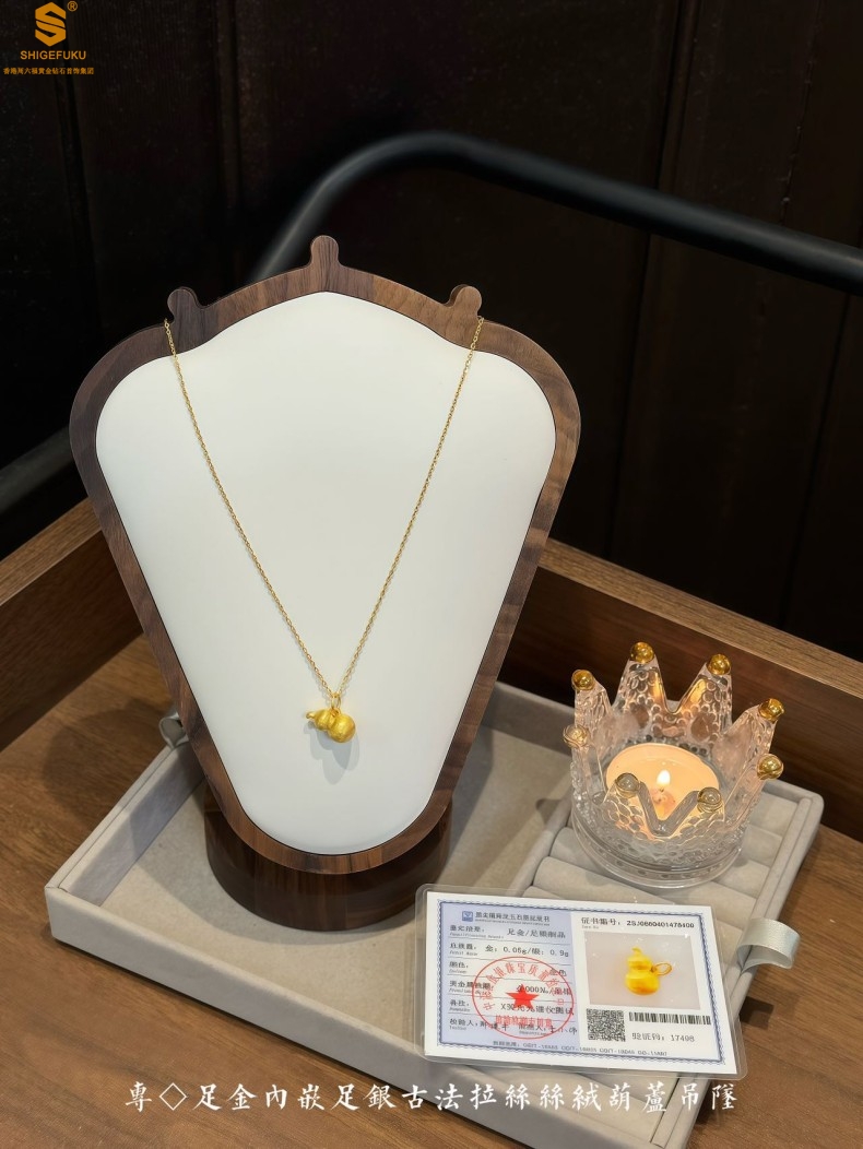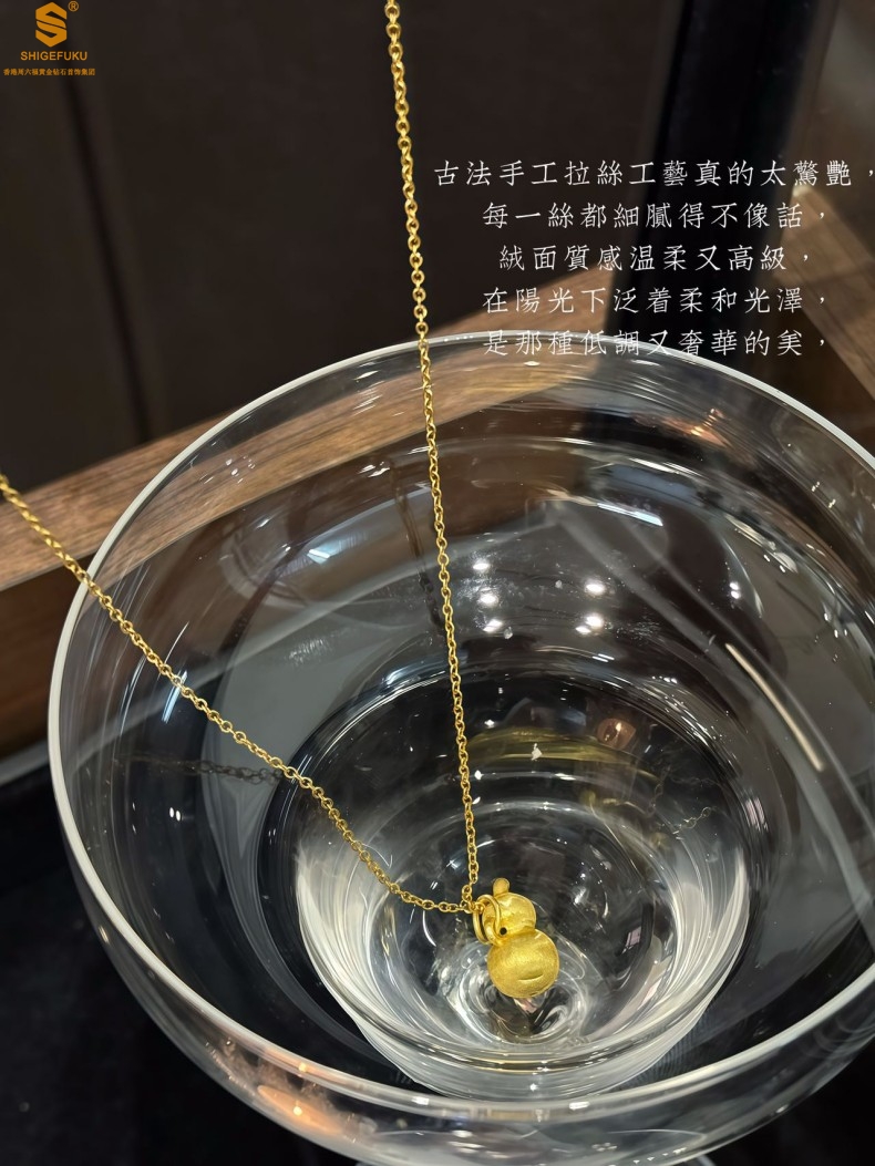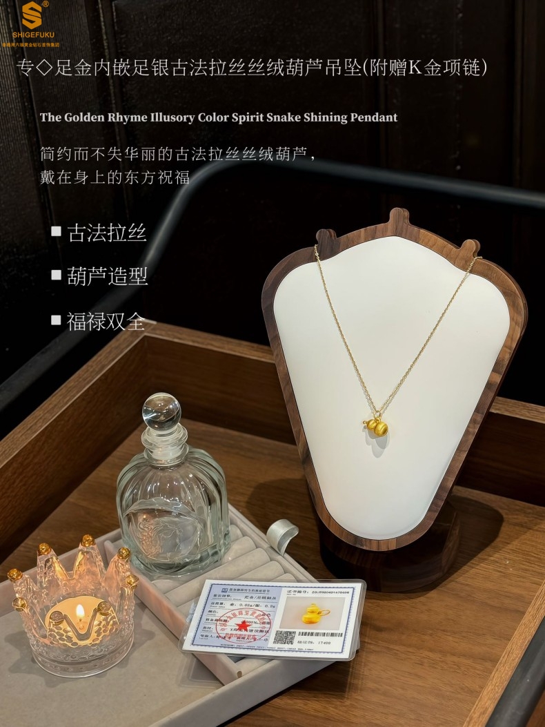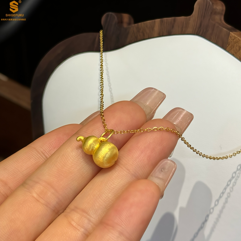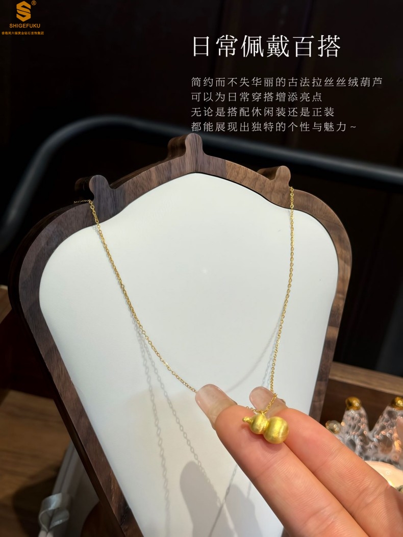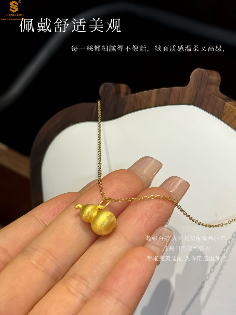 【品名】足金内嵌足银古法拉丝丝绒葫芦吊坠(附赠K金项链)