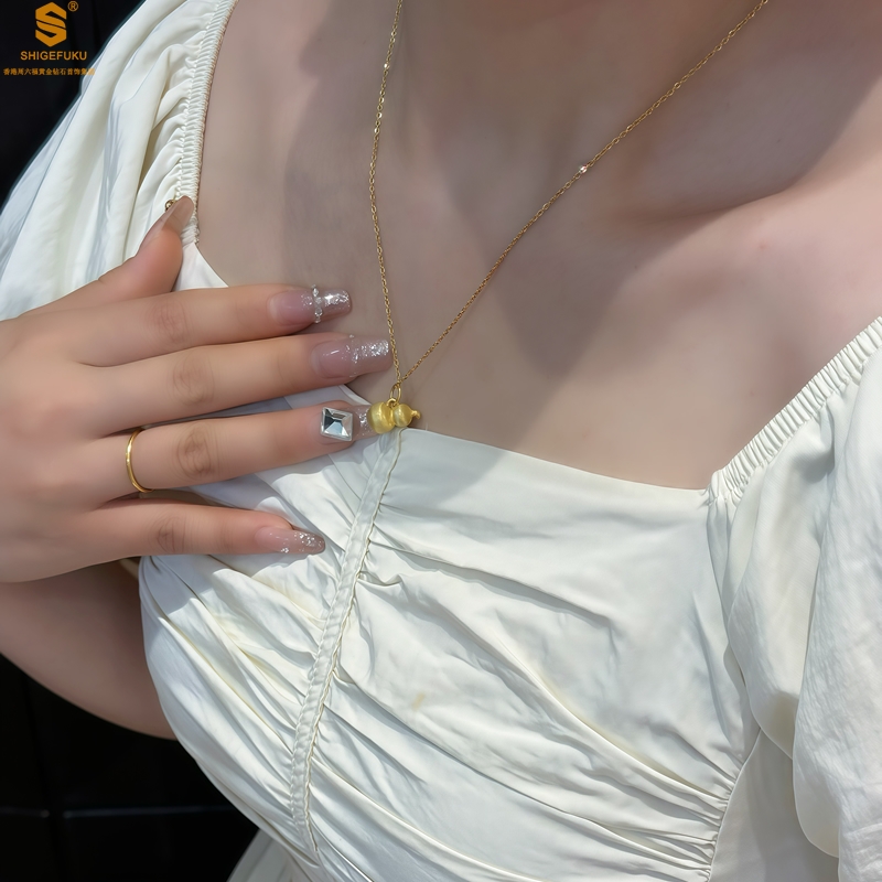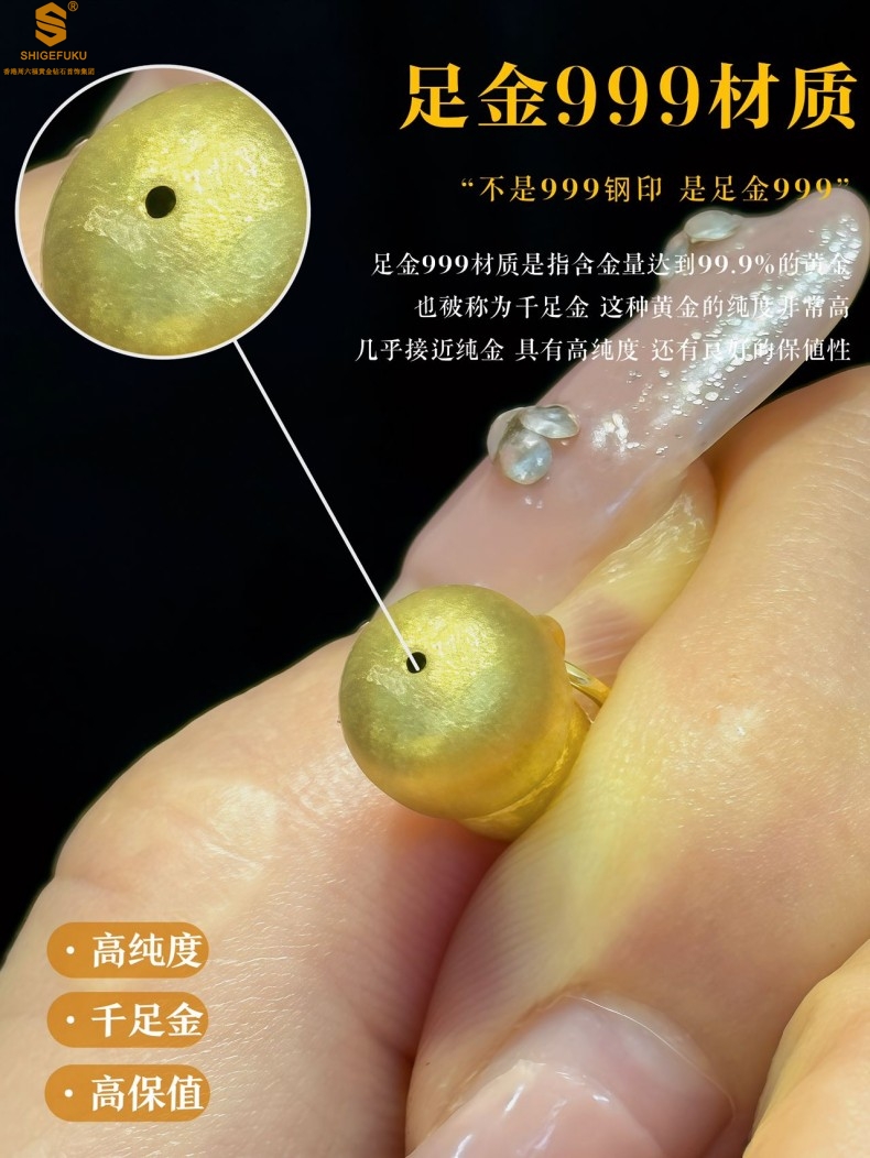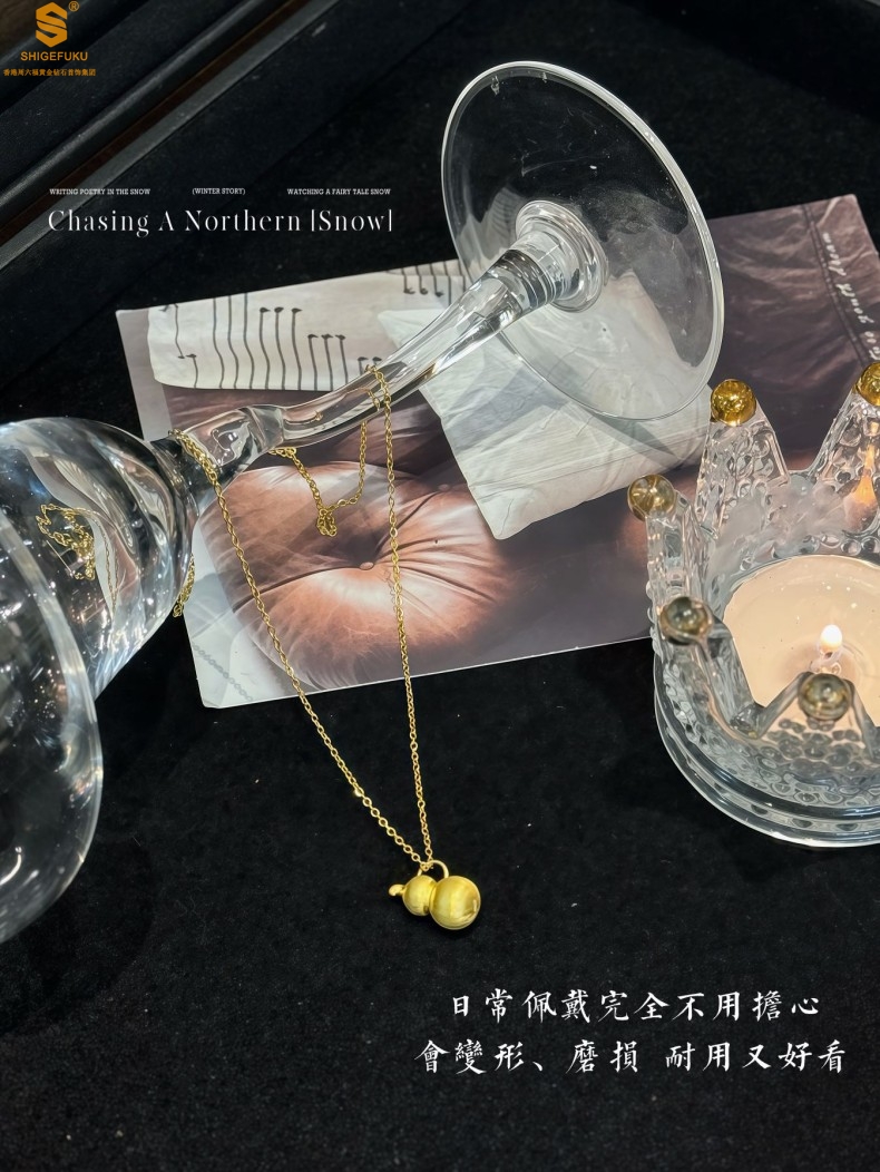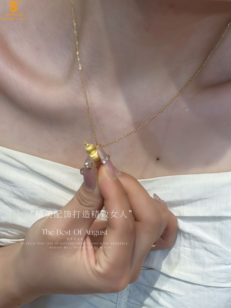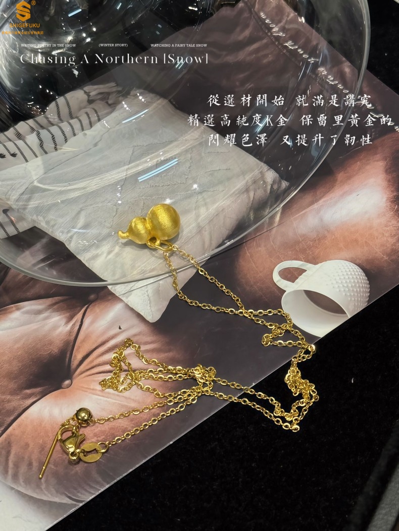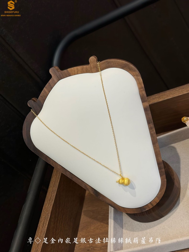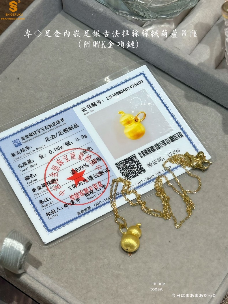 【品名】足金内嵌足银古法拉丝丝绒葫芦吊坠(附赠K金项链)