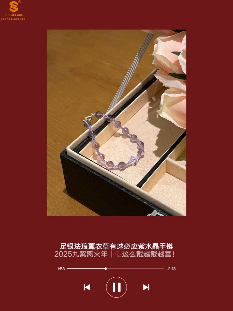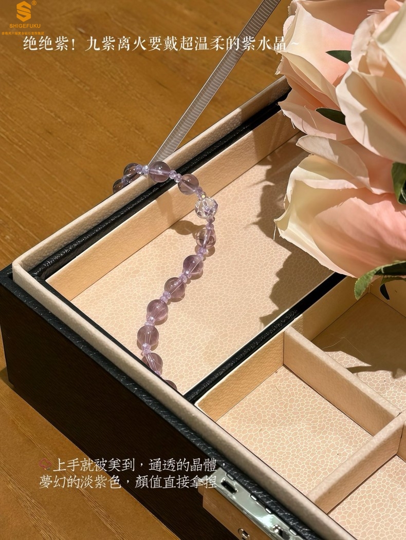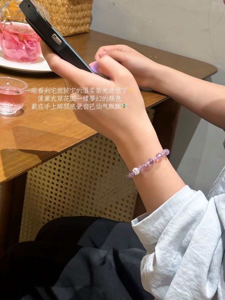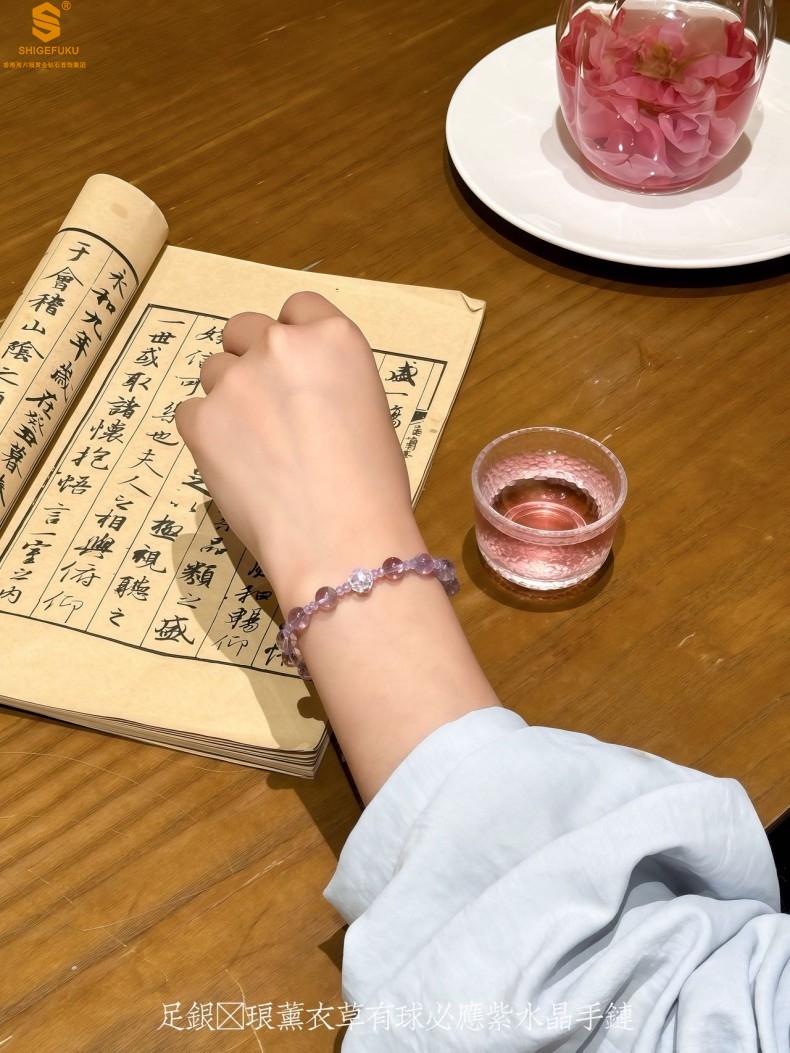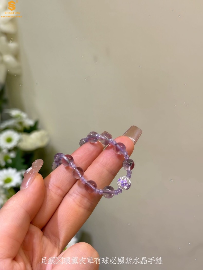 【品名】足银珐琅薰衣草有球必应紫水晶手链
