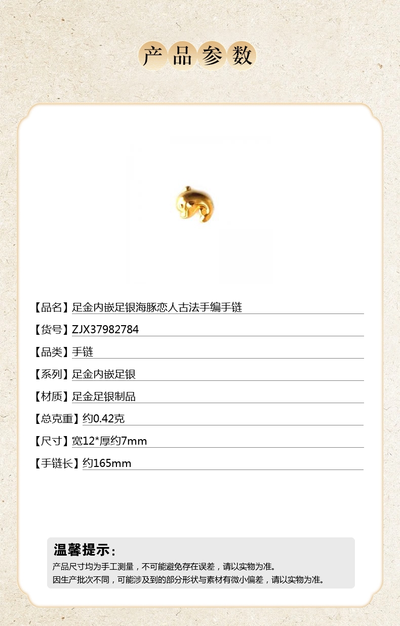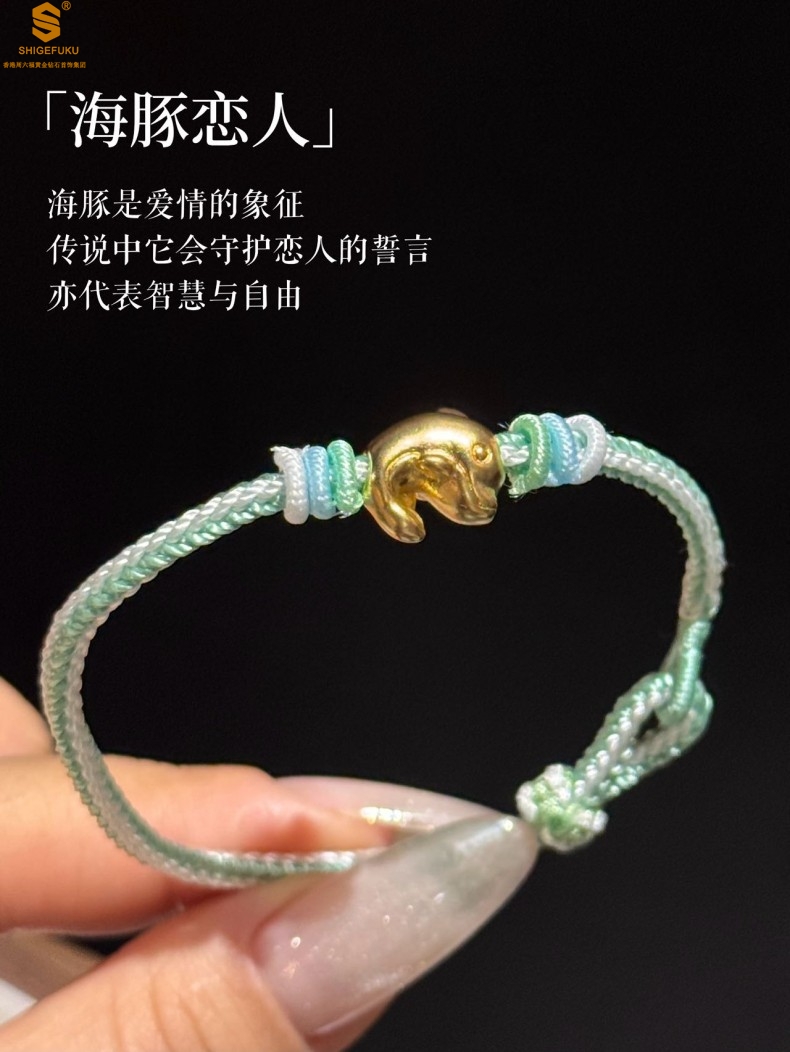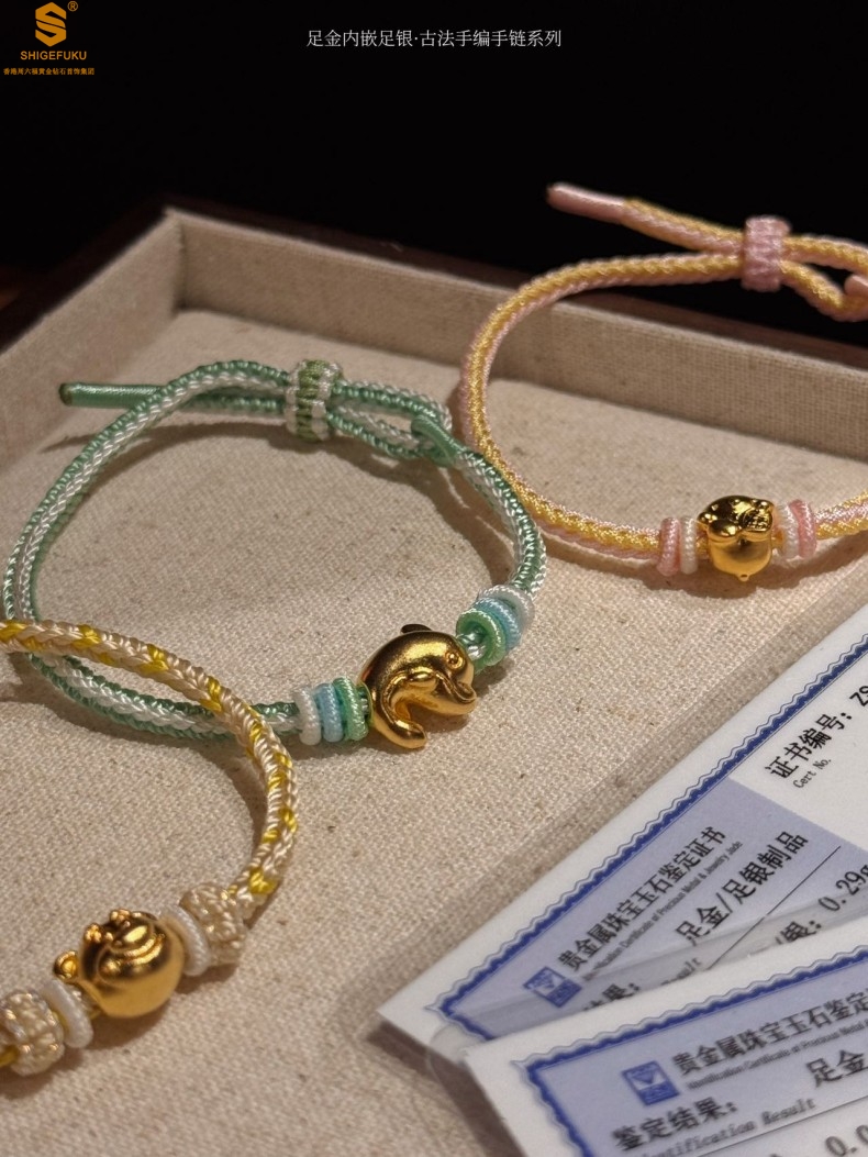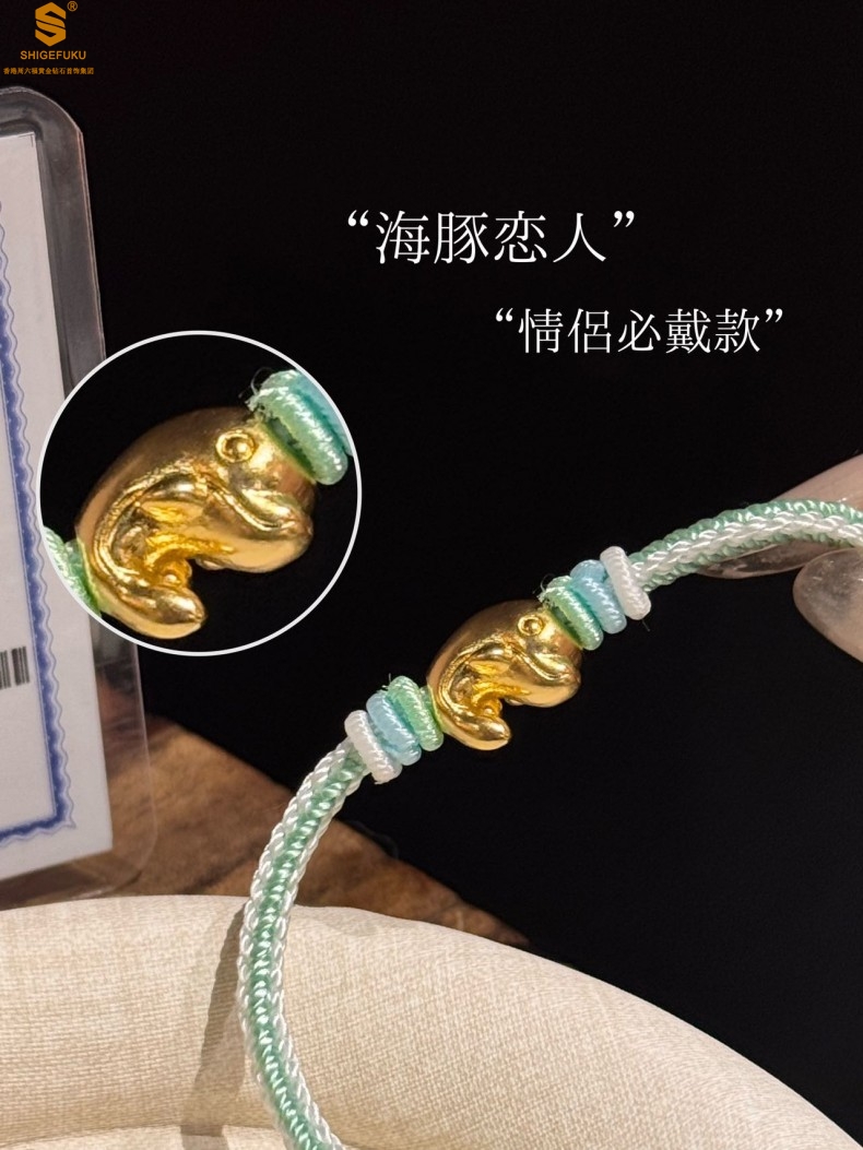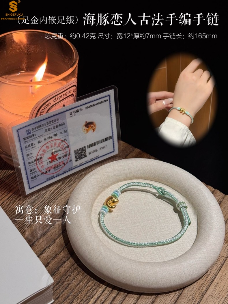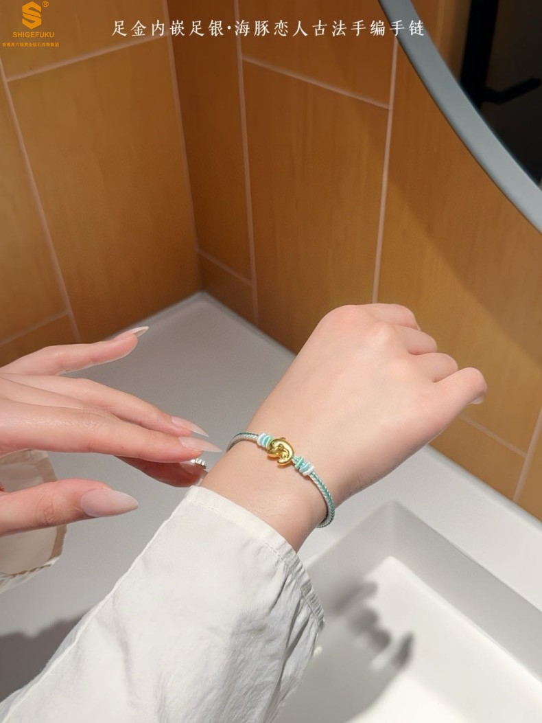 【品名】足金内嵌足银海豚恋人古法手编手链